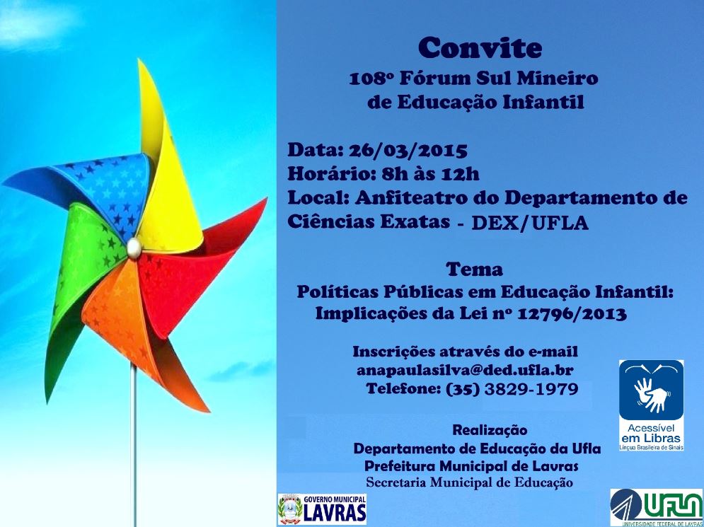 cartaz-forum-educacao-infantil 19 de março de 2015 995 × 745 UFLA sedia 108ª edição do Fórum Sul-Mineiro de Educação Infantil – inscrições abertas