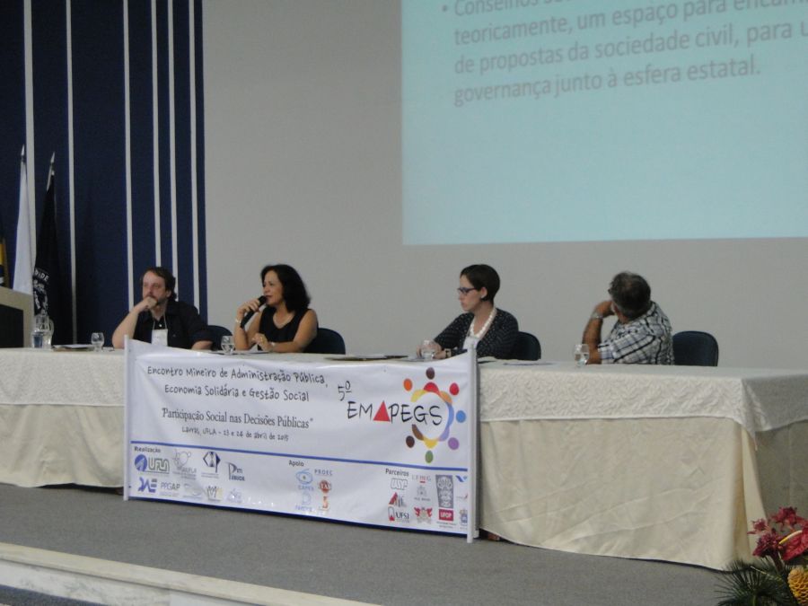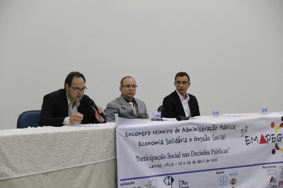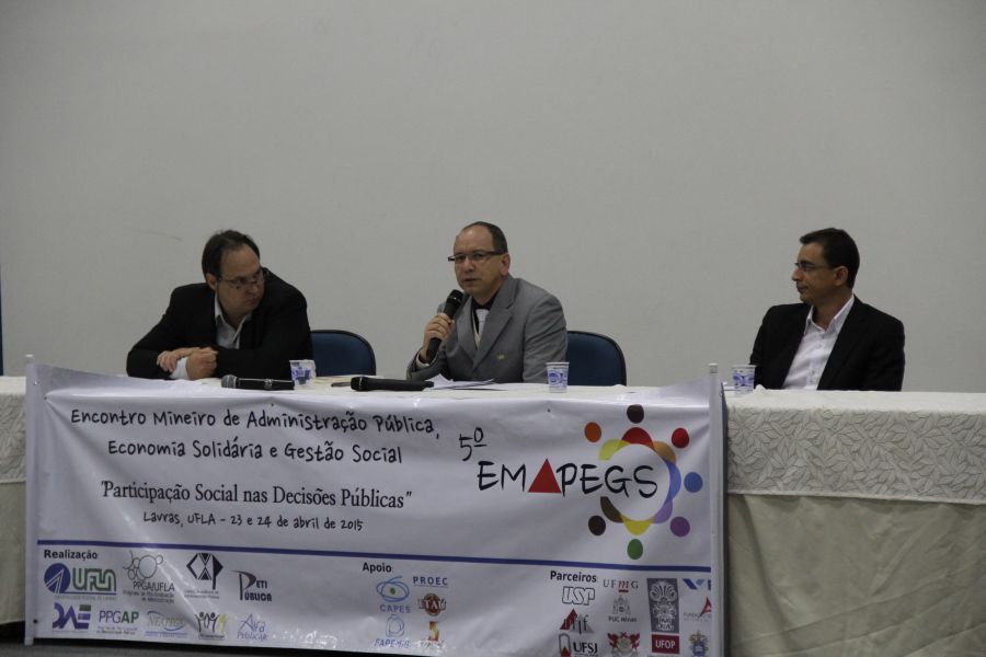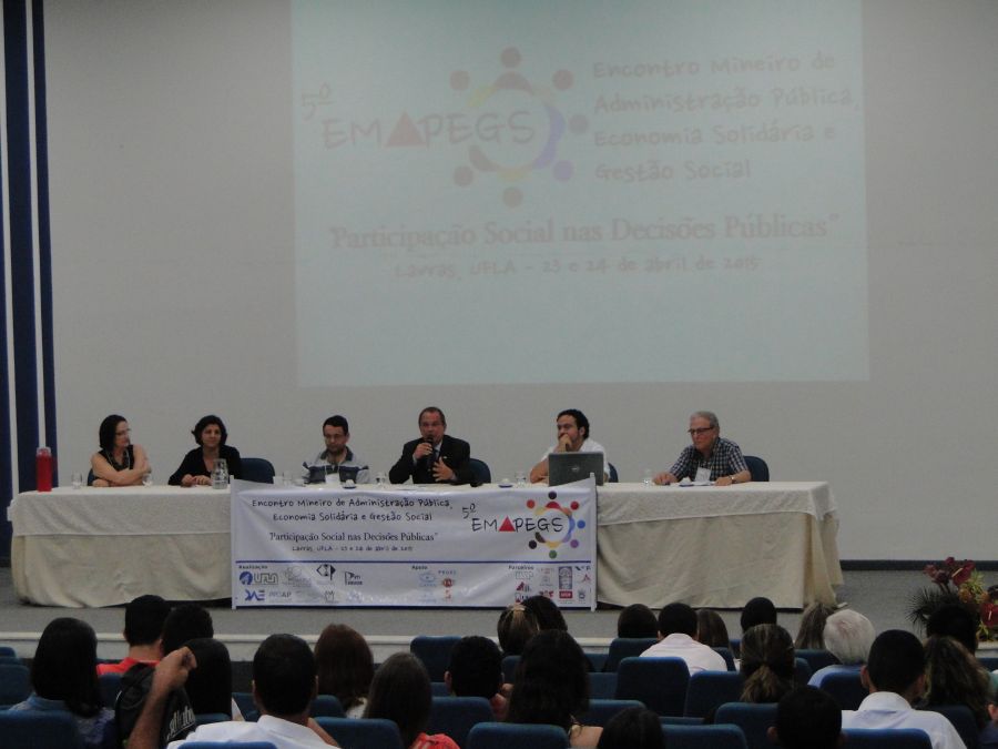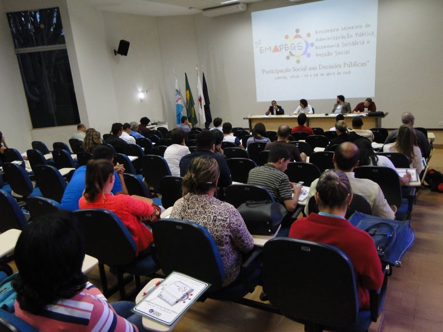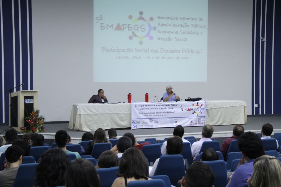Nos dias 23 e 24/4, na UFLA, foram realizados debates e apresentados trabalhos sobre a participação social nas decisões públicas. Essas ações constituíram o 5º Encontro Mineiro de Administração Pública, Economia Solidária e Gestão Social (Emapegs), que reuniu docentes, pesquisadores e estudantes em atividades no Salão de Convenções e anfiteatros de departamentos da Universidade.