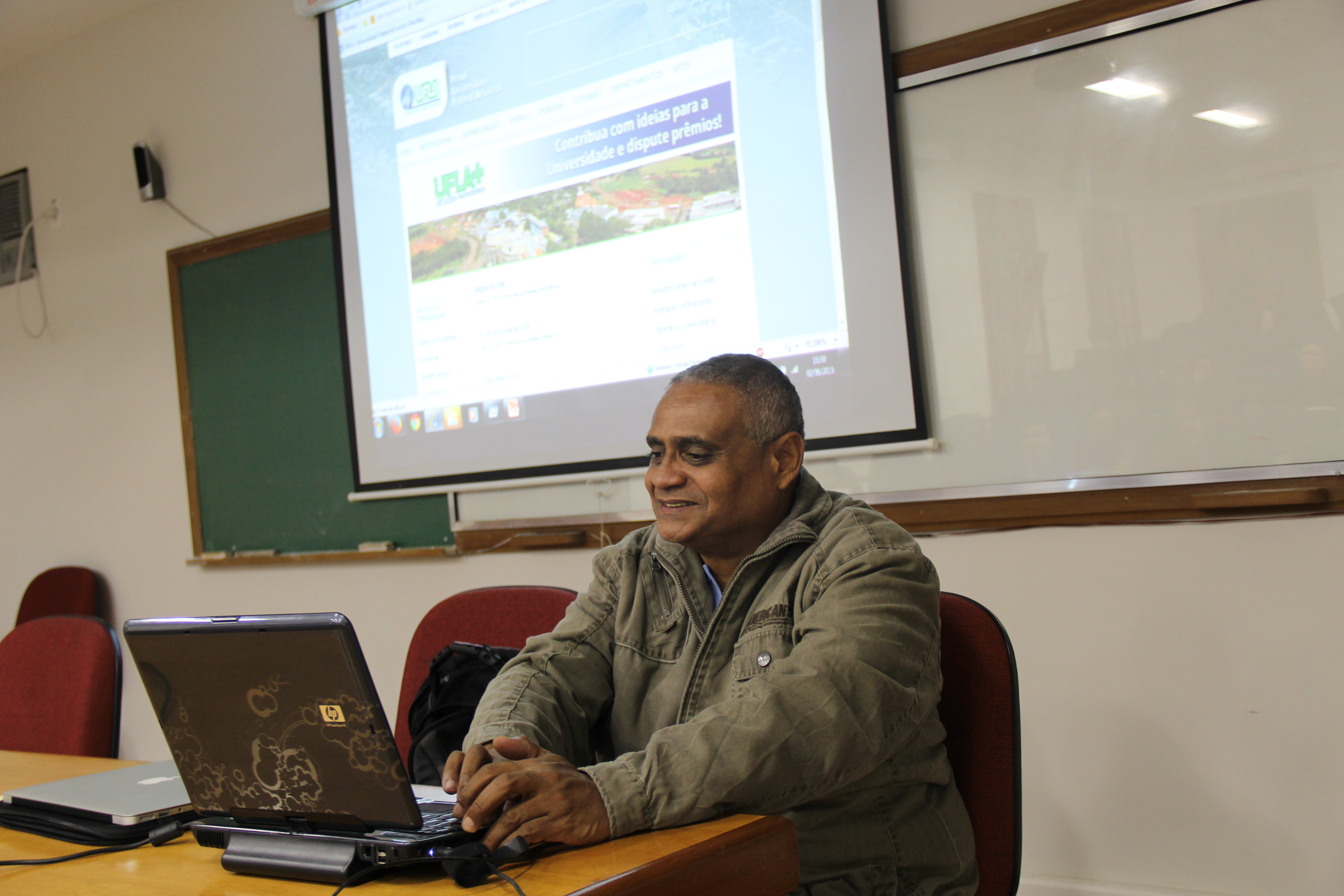 Durante a primeira aula presencial do curso, os participantes foram sensibilizados com a apresentação do estudante Nilmar Ronizete Machado, advogado que cursa a segunda graduação no curso de Administração Pública da UFLA. Desde que perdeu a visão, as dificuldades exigiram de Nilmar muita persistência e também conhecimento lutar contra as barreiras impostas aos portadores de deficiência.