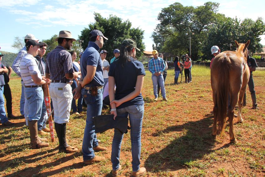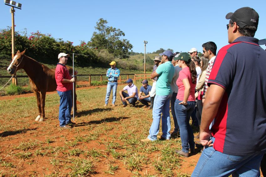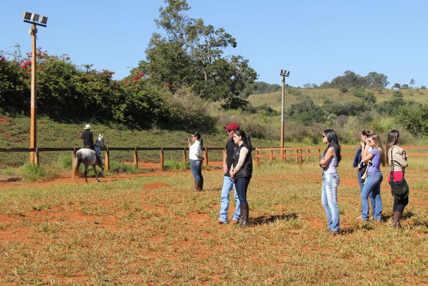 A parte prática da programação ocorreu em 14/6, no Haras El Far, em Lavras. O local é o maior criatório de Mangalarga Marchador da cidade. Lá, o grupo teve a oportunidade observar a forma dos animais, com o objetivo de prever a qualidade do andamento. Em seguida, eles simularam um concurso de marcha, para avaliar o andamento.