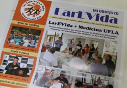 O informativo impresso do Lar Esperança e Vida Mateus Loureiro Ticle (LarEVida), do período maio/junho, trouxe em destaque a notícia da parceria entre a instituição e o curso de Medicina da UFLA. No texto, são relatadas as atividades desenvolvidas pelos estudantes com os assistidos. Os alunos acompanharam a rotina de profissionais de diferentes especialidades, sob orientação do também coordenador do curso de Medicina Vitor Tenório. Tiveram, ainda, a oportunidade de desenvolver ações específicas, como a criação da “Caixa de Dúvidas sobre Saúde”, na qual os assistidos puderam colocar suas indagações, recebendo respostas individualmente ou em reuniões de grupos.