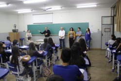Para dar as boas-vindas aos estudantes, representantes da UFLA e da Prefeitura estiveram nas salas. Na equipe estavam, além de Danúbia, o pró-reitor de Extensão e Cultura, professor José Roberto Pereira; a representante da Secretaria Municipal de Educação, Márcia Teixeira de Andrade do Vale; o prefeito do município, professor Silas Costa Pereira; e o assessor da área de Planejamento e Gestão da prefeitura, Rodrigo Cobra.