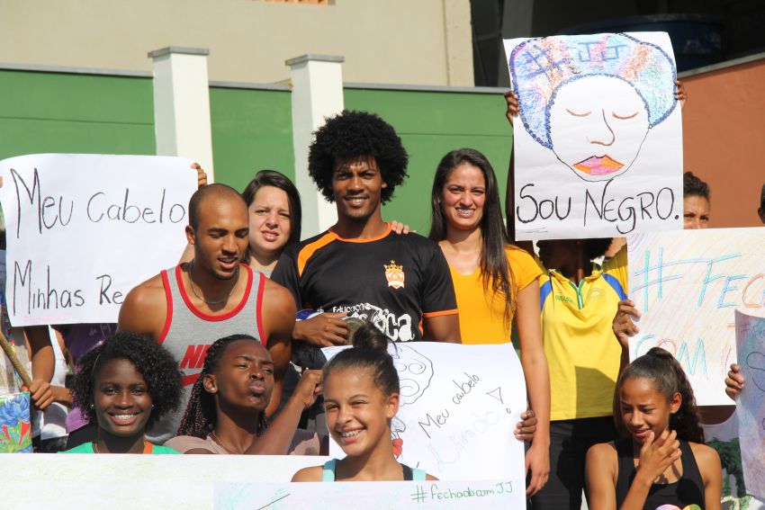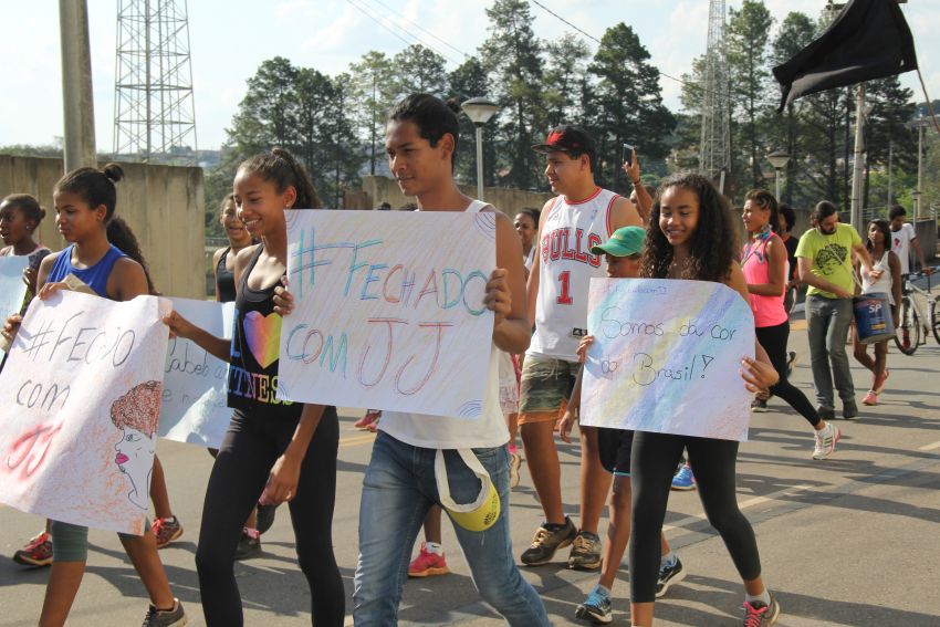 avançar, eu vou para a rua para lutar. Se a juventude se unir, o racismo vai cair”, cantavam eles ao som de batuques. Nos cartazes, as frases eram de apoio a Jean Jesley, afirmação do cabelo crespo e pelo fim do racismo.