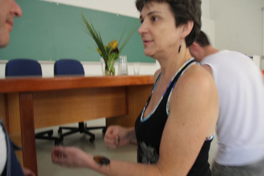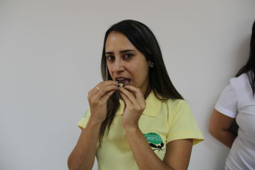 Sobre as “guloseimas” servidas ao final da palestra, houve uma receptividade positiva. Anderson Milani e Ivana Lemos, membros do Neento, aprovaram os produtos, destacando o chocolate com grilos pela crocância e a similaridade com flocos de chocolate. Para a professora Ana Carla Marques Pinheiro, do Departamento de Ciências dos Alimentos (DCA), os insetos não interferem no sabor do chocolate. Especialista em análise sensorial de alimentos, Ana Carla já planeja uma parceria para a avaliação de novos produtos.