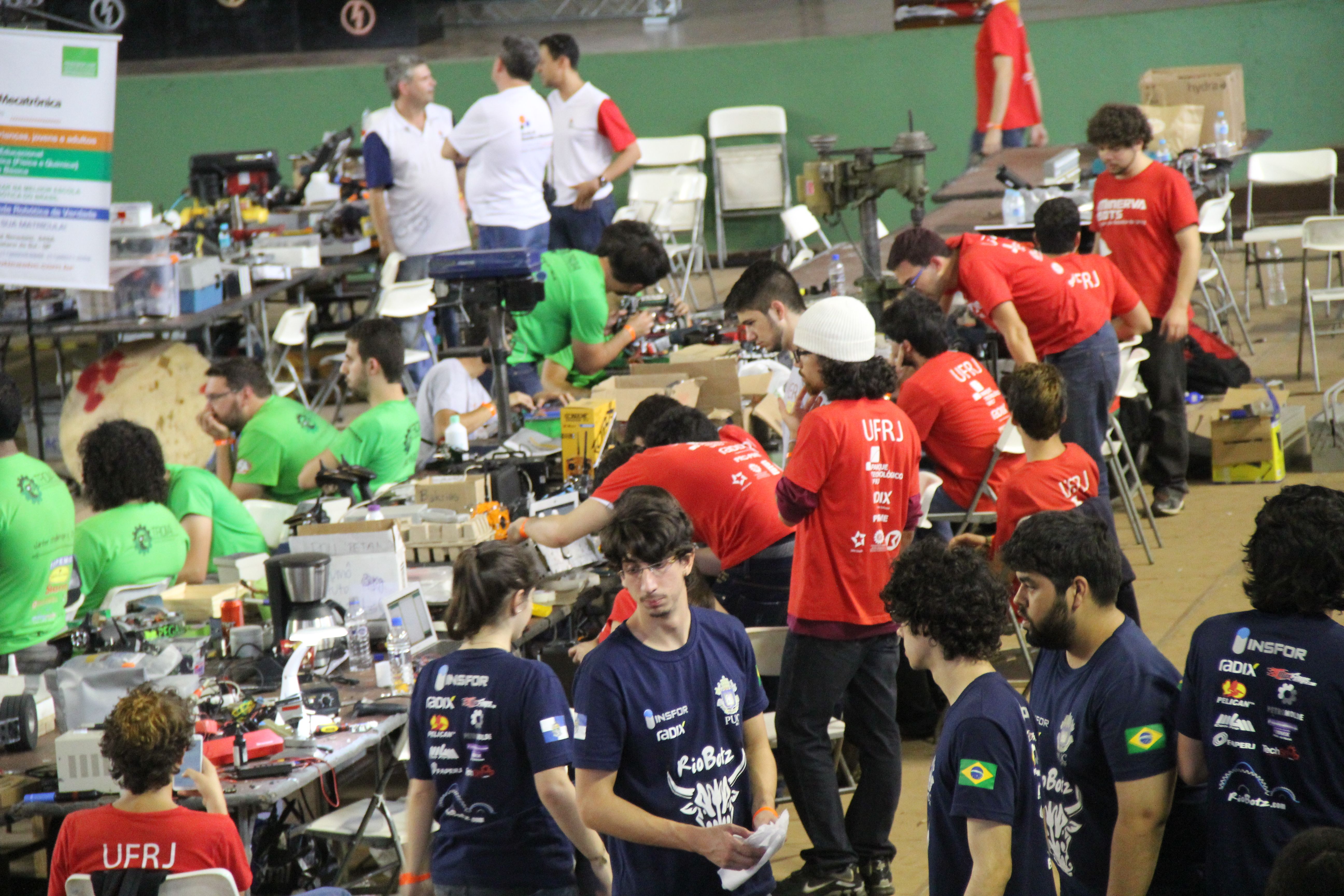 Nos combates de robôs, o objetivo é que um deles imobilize ou destrua o adversário. Os robôs são controlados remotamente e possuem armas, mas há uma série de regras a serem seguidas, como subdivisão por peso e combate em local seguro. No hockey, dois times constituídos por três robôs cada competem tentando fazer gols. Os robôs seguidores de linha devem ser programados para seguirem uma linha traçada no chão; quem realiza o trajeto em menor tempo vence. Há ainda as categorias sumô e trekking. Na primeira, o robô deve empurrar o oponente para fora do ringue. No trekking, no entanto, o robô é autônomo e deve chegar a lugares pré-definidos seguindo uma ordem e programação pré-definidas.