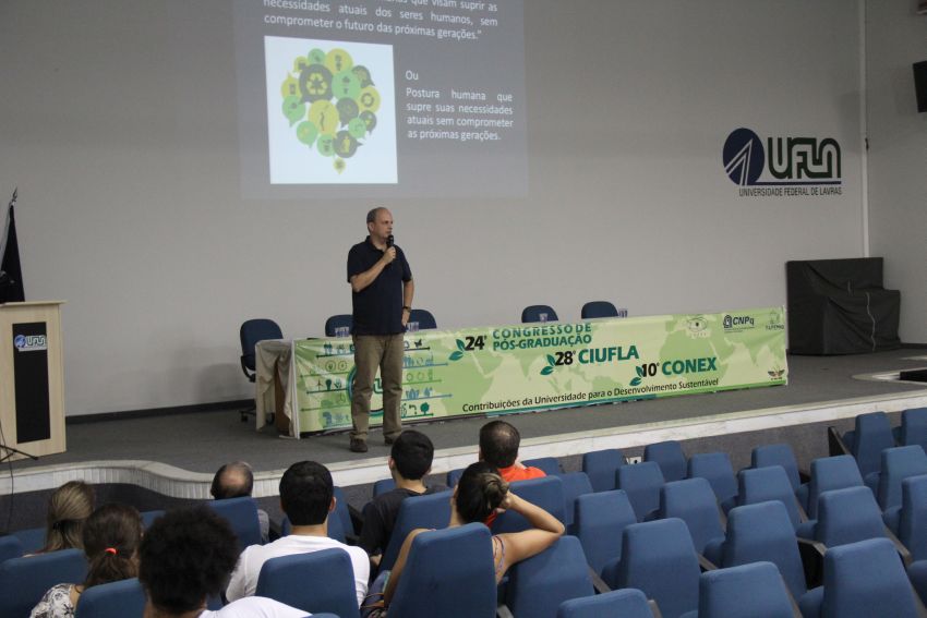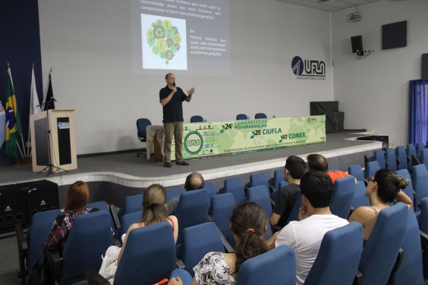 Antes da premiação dos trabalhos, o professor do Departamento de Ciências Florestais (DCF) Marco Aurélio Leite Fontes proferiu a palestra de encerramento dos congressos. O tema foi “A universidade e a educação para a sustentabilidade”. Ele chamou a atenção do público para o oportunismo que pode estar oculto sob o discurso da sustentabilidade atualmente propagado na sociedade contemporânea, assim como para a “maquiagem verde” empregada em muitas práticas ditas sustentáveis.