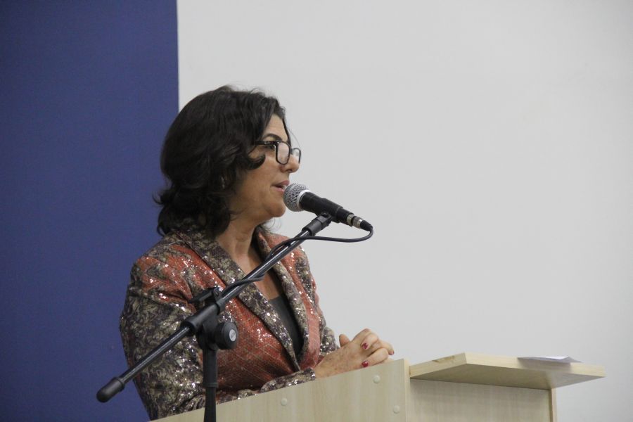 Representando os técnicos administrativos do Departamento, Fátima Conceição Resende também participou da mesa de abertura.