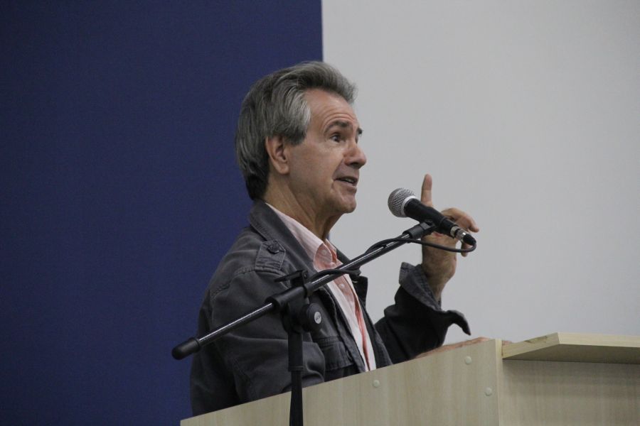 O professor Cornélio Zampier Teixeira, ex-professor do DEG, apresentou o seu livro “Dilemas de um Planeta (in)Sustentável”, no qual denuncia a exploração exacerbada dos recursos naturais do planeta (sobretudo por meio da mineração e da agricultura).