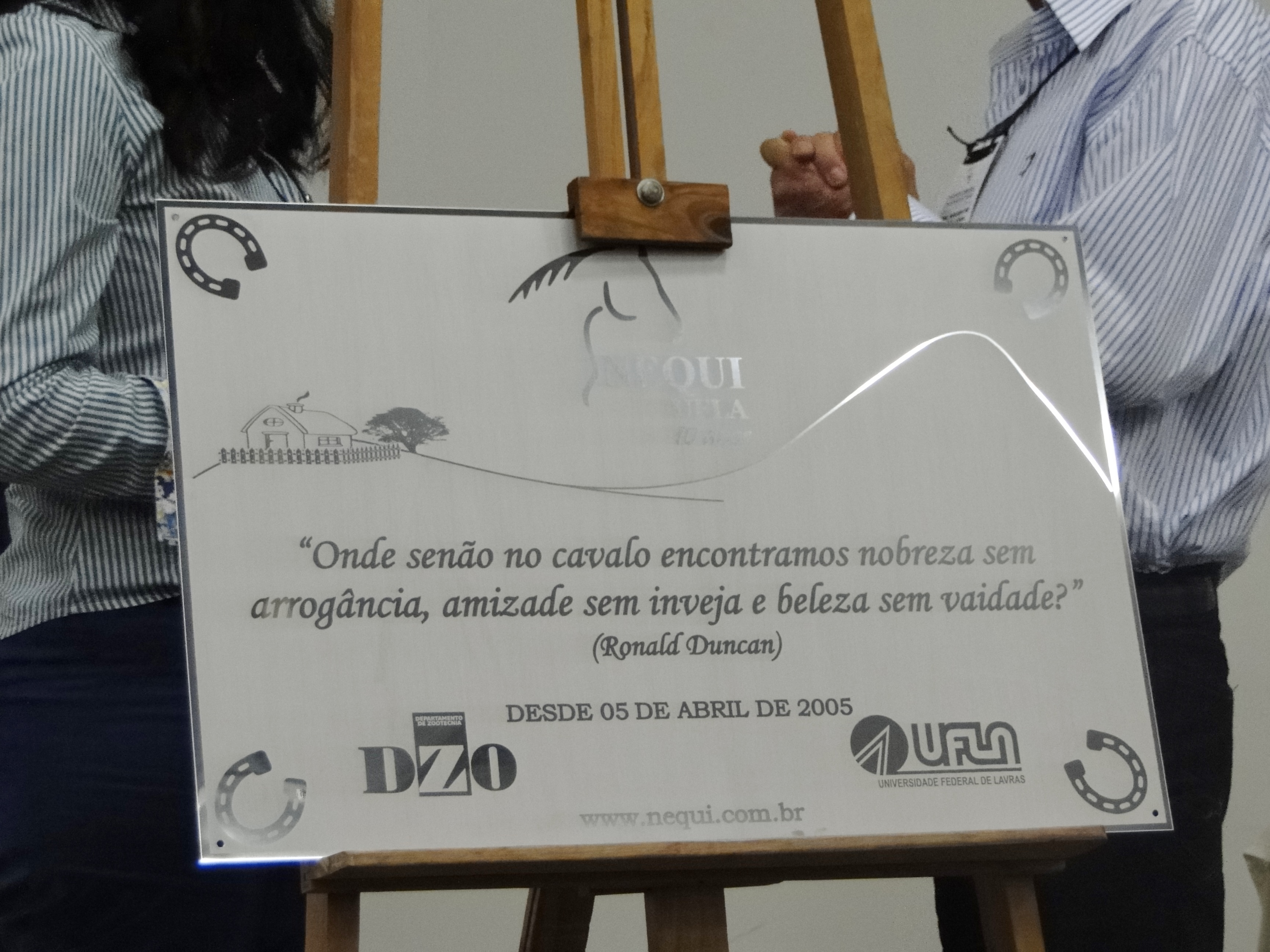 Na ocasião, houve o descerramento da placa comemorativa dos dez anos de instituição do Núcleo de Estudos em Equideocultura, com o coordenador pioneiro das atividades do Nequi, professor José Augusto de Freitas Lima e a atual coordenadora, professora Raquel. Além disso, os professores José Augusto e Henrique Ribeiro Alves de Resende foram homenageados pelos trabalhos desenvolvidos no Núcleo.