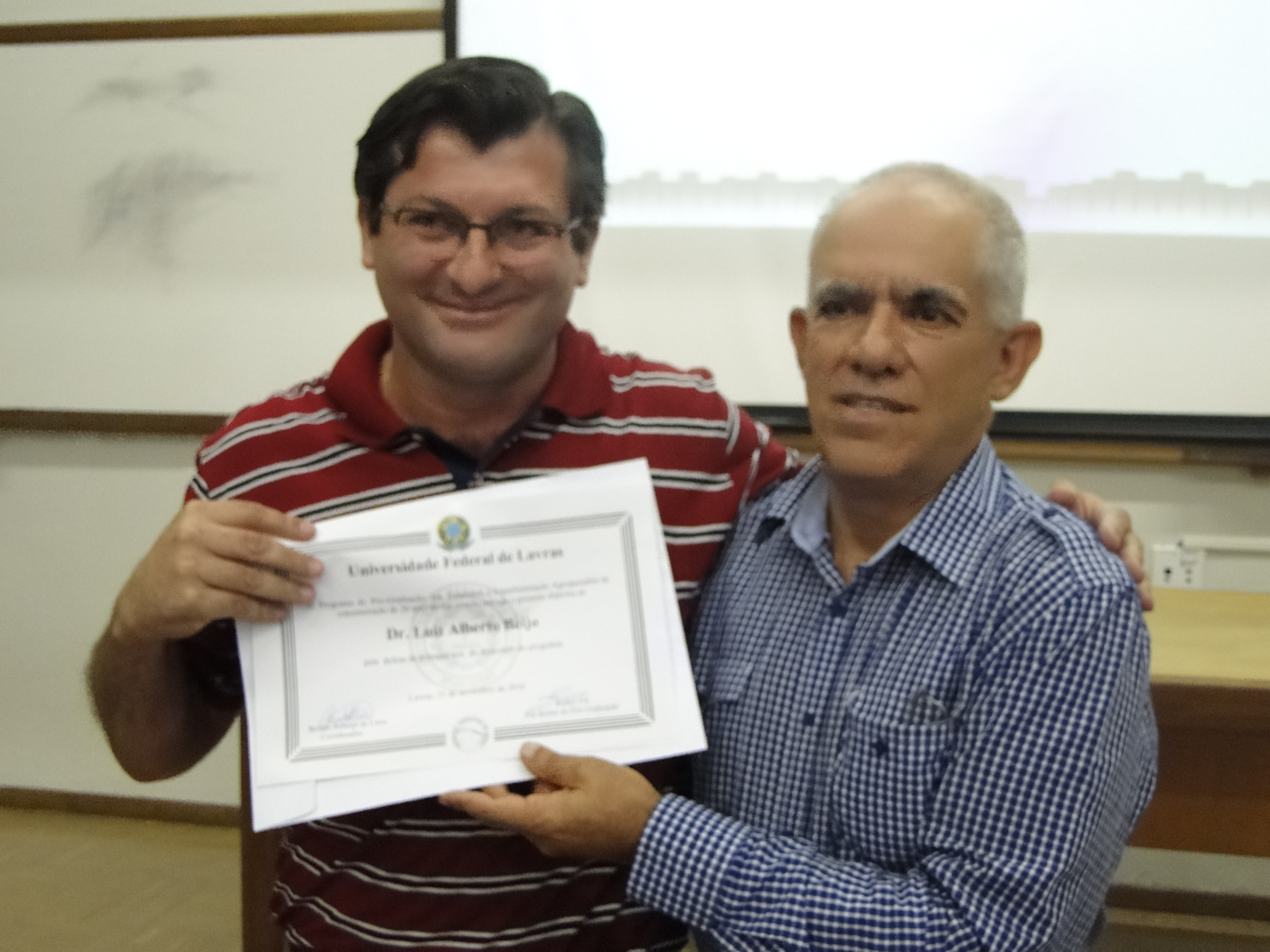 Professor Luís Roberto recebe o certificado do treinamento internacional