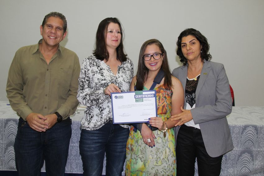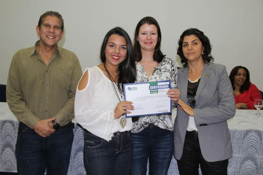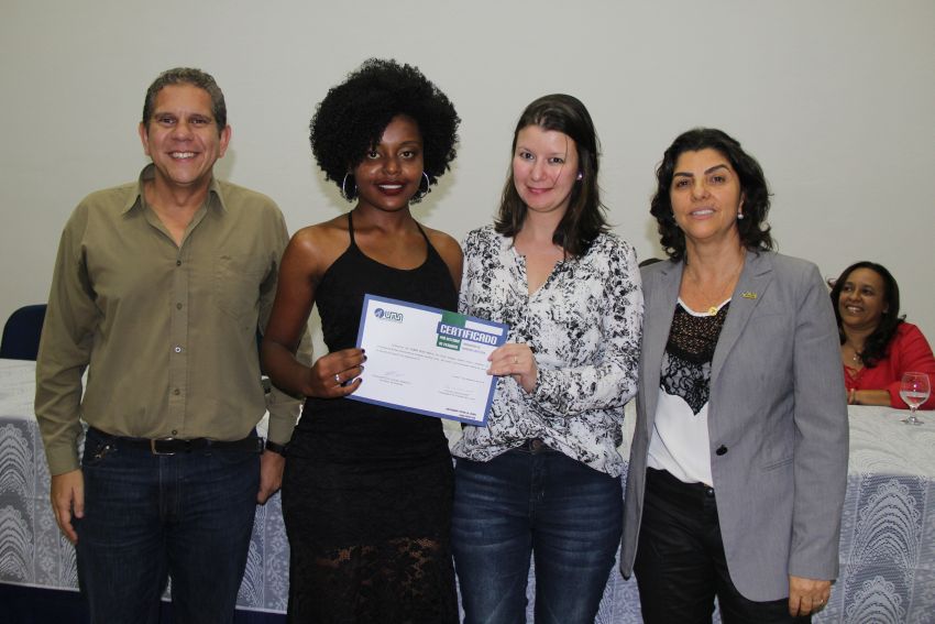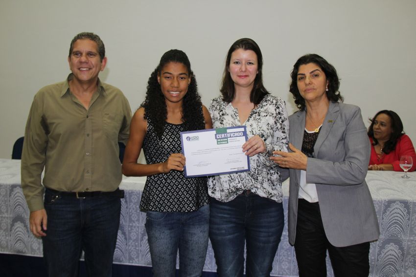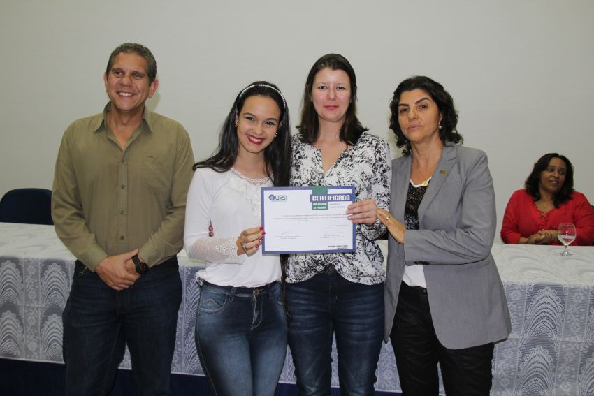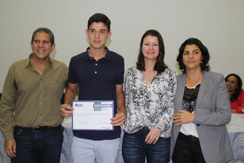 A solenidade de entrega dos certificados foi conduzida pela vice-reitora da UFLA, professora Édila Vilela de Resende Von Pinho, acompanhada do pró-reitor de Pesquisa, professor Teodorico de Castro Ramalho; da coordenadora da Iniciação Científica na UFLA, professora Priscila Vieira Rosa; da coordenadora do programa BIC Júnior na UFLA, professora Rita de Cássia Suart; e da coordenadora adjunta do BIC Jr., professora Josefina Aparecida de Souza.