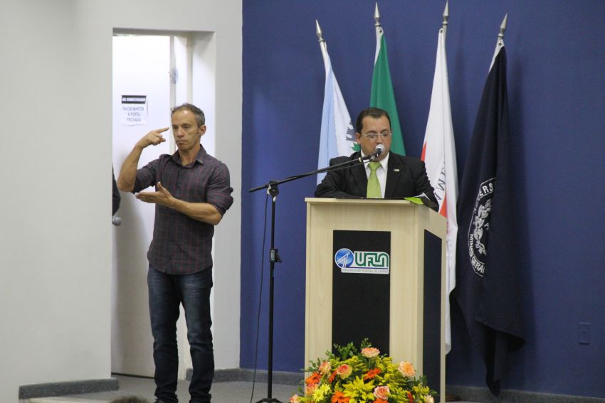 Os trabalhos das solenidades foram conduzidos pelo reitor em exercício, professor Ronei Ximenes Martins; acompanhado pela chefe de gabinete da reitoria da UFLA, professora Joziana Muniz de Paiva Barçante; pelo diretor de Educação a Distância, professor Cleber Carvalho de Castro e pela secretária do Conselho Universitário, Ione Dias Bertolucci.