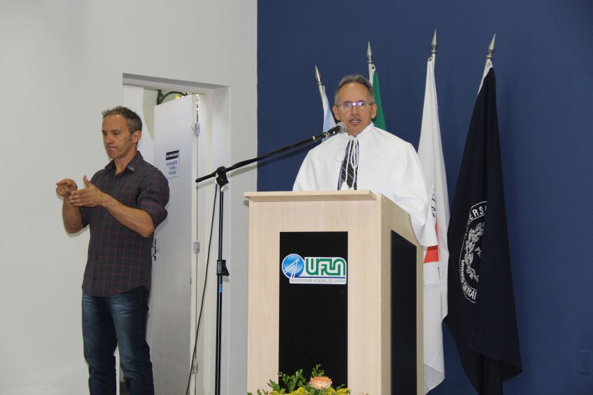 Os trabalhos das solenidades foram conduzidos pelo reitor em exercício, professor Ronei Ximenes Martins; acompanhado pela chefe de gabinete da reitoria da UFLA, professora Joziana Muniz de Paiva Barçante; pelo diretor de Educação a Distância, professor  Cleber Carvalho de Castro e pela secretária do Conselho Universitário, Ione Dias Bertolucci.