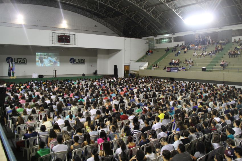 O primeiro período letivo de 2017 começou na Universidade Federal de Lavras (UFLA). Um dos eventos que marcou o início das aulas é o encontro dos calouros com o reitor da instituição, professor José Roberto Soares Scolforo. Ao todo, 1428 estudantes de 29 cursos presenciais de graduação se reuniram nessa quinta-feira à noite (27/4), no Ginásio Poliesportivo, e foram recepcionados por integrantes das pró-reitorias e das coordenações de curso.
