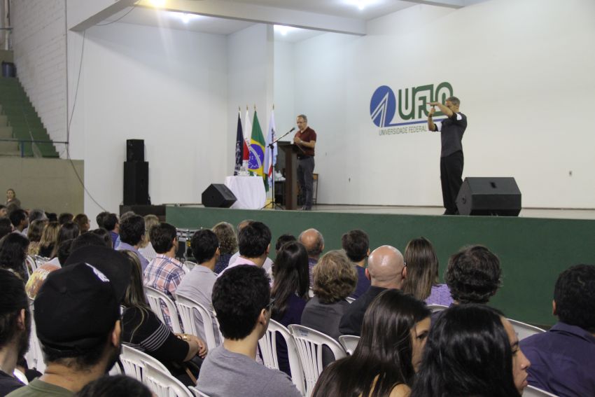 Como de costume, o professor Scolforo deu as boas-vindas aos universitários e os apresentou a pró-reitores, citando, resumidamente, a função de cada um na instituição. Em seguida, a iniciativa do reitor se repetiu com os coordenadores de curso. Ao se referir aos responsáveis pelo ensino, pesquisa e extensão na instituição, o reitor fez menção à necessidade dos alunos manterem diálogo com os professores e coordenadores para solução de problemas durante o curso. “São pessoas importantes para vocês na universidade. Portanto, incomode-os”, afirmou.