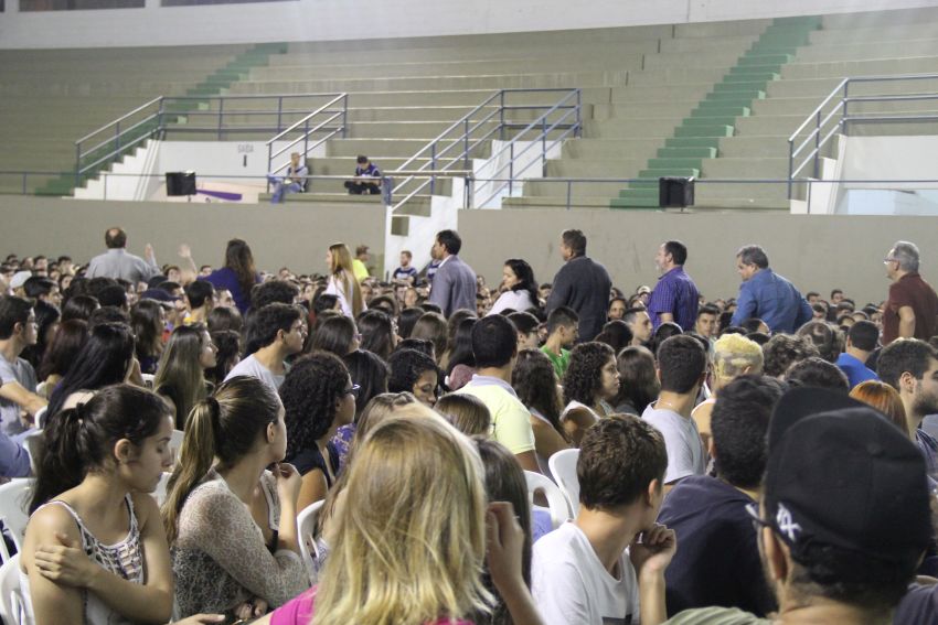 O primeiro período letivo de 2017 começou na Universidade Federal de Lavras (UFLA). Um dos eventos que marcou o início das aulas é o encontro dos calouros com o reitor da instituição, professor José Roberto Soares Scolforo. Ao todo, 1428 estudantes de 29 cursos presenciais de graduação se reuniram nessa quinta-feira à noite (27/4), no Ginásio Poliesportivo, e foram recepcionados por integrantes das pró-reitorias e das coordenações de curso.