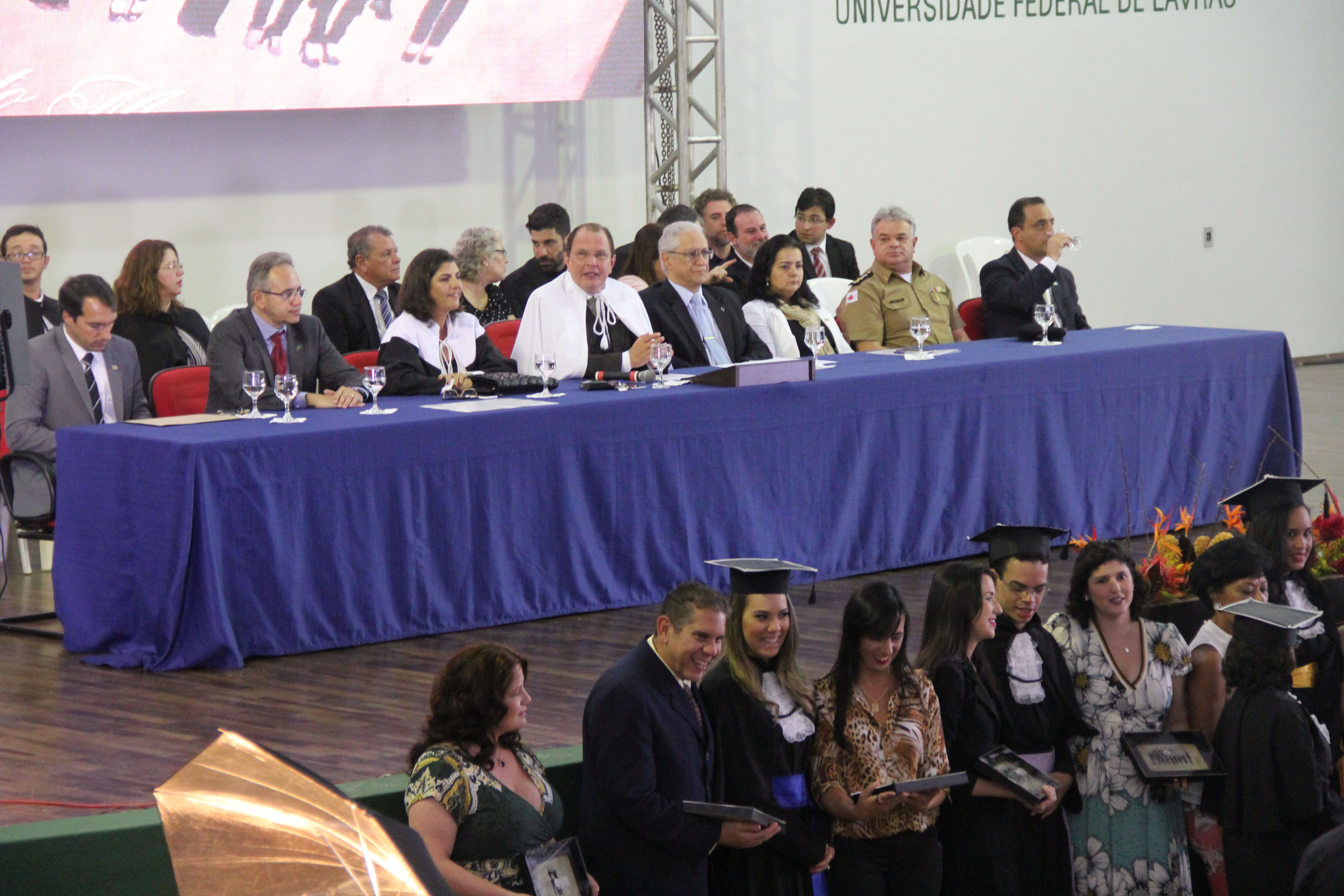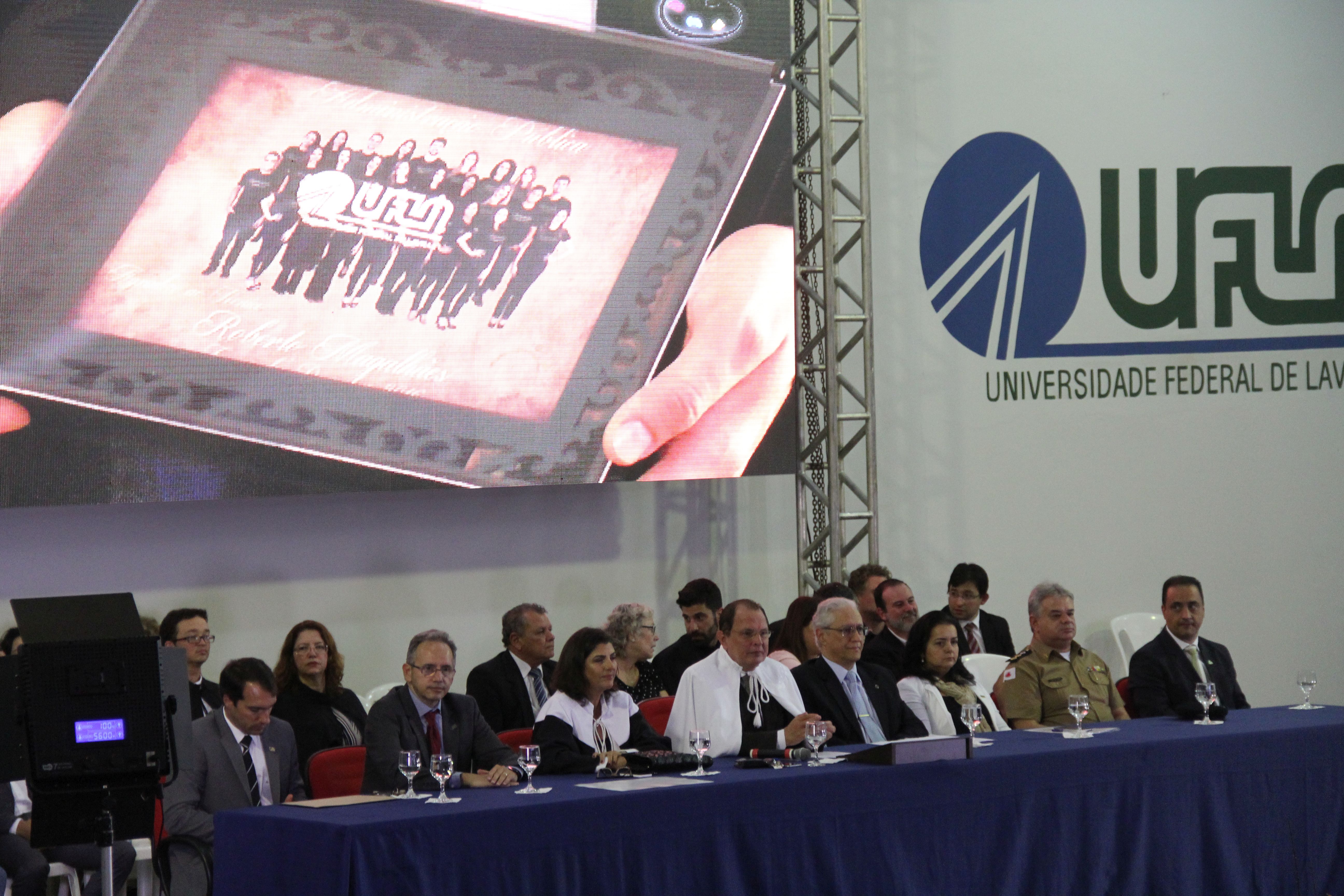 Durante a solenidade, na mesa de honra, também estiveram presentes membros do Conselho Universitário, pró-reitores, chefes de departamentos, diretores, coordenadores de cursos, patronos, patronesses, professores e servidores homenageados, além de parceiros e autoridades de Lavras.