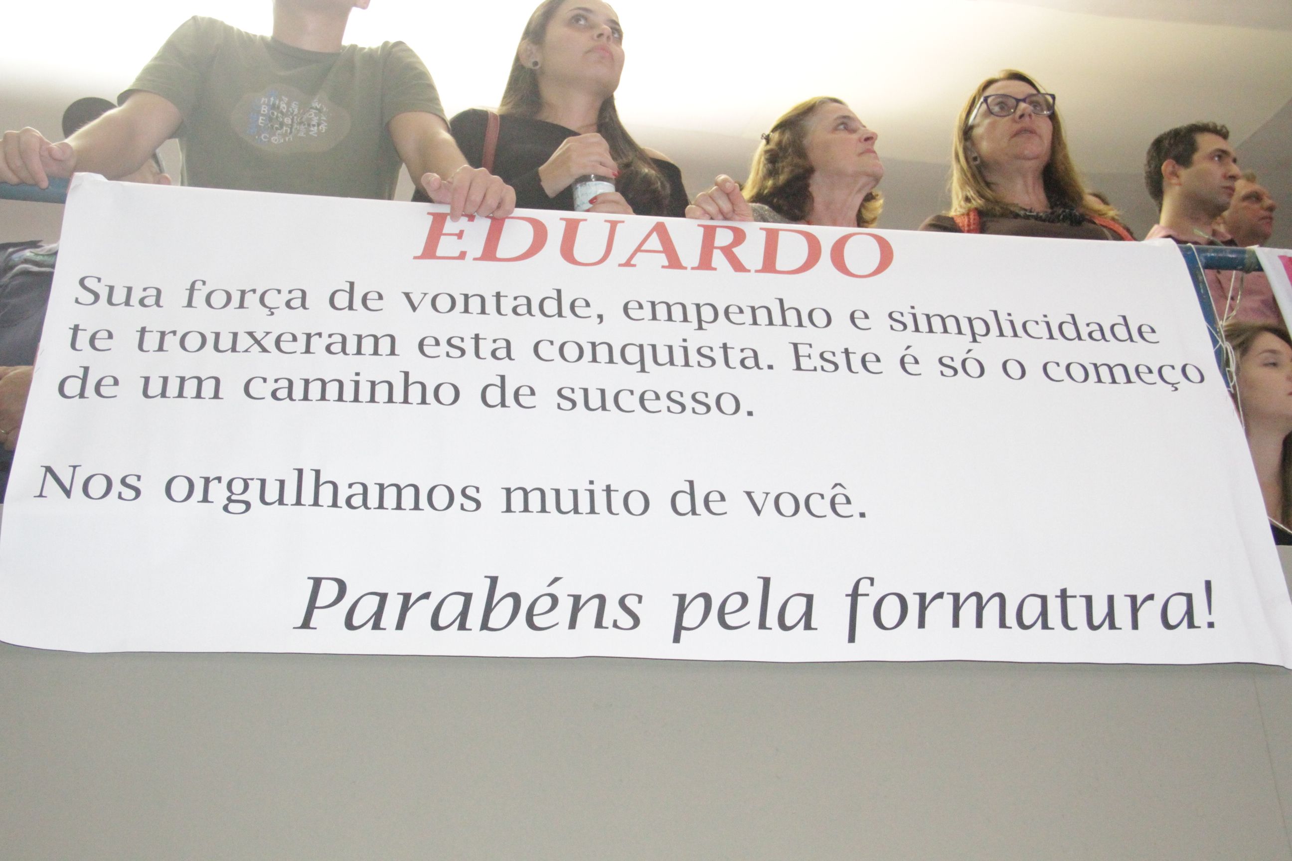 Lucas Rocha Vieira recebeu o Mérito Acadêmico no curso de Administração. Para ele, o reconhecimento da Universidade se deu em razão das atividades que realizou durante o curso, como monitoria, Programas de Educação Tutorial em Administração (PET/Administração), grupo de pesquisa, coral e orquestra. “Não sabia da homenagem e me senti muito honrado”.