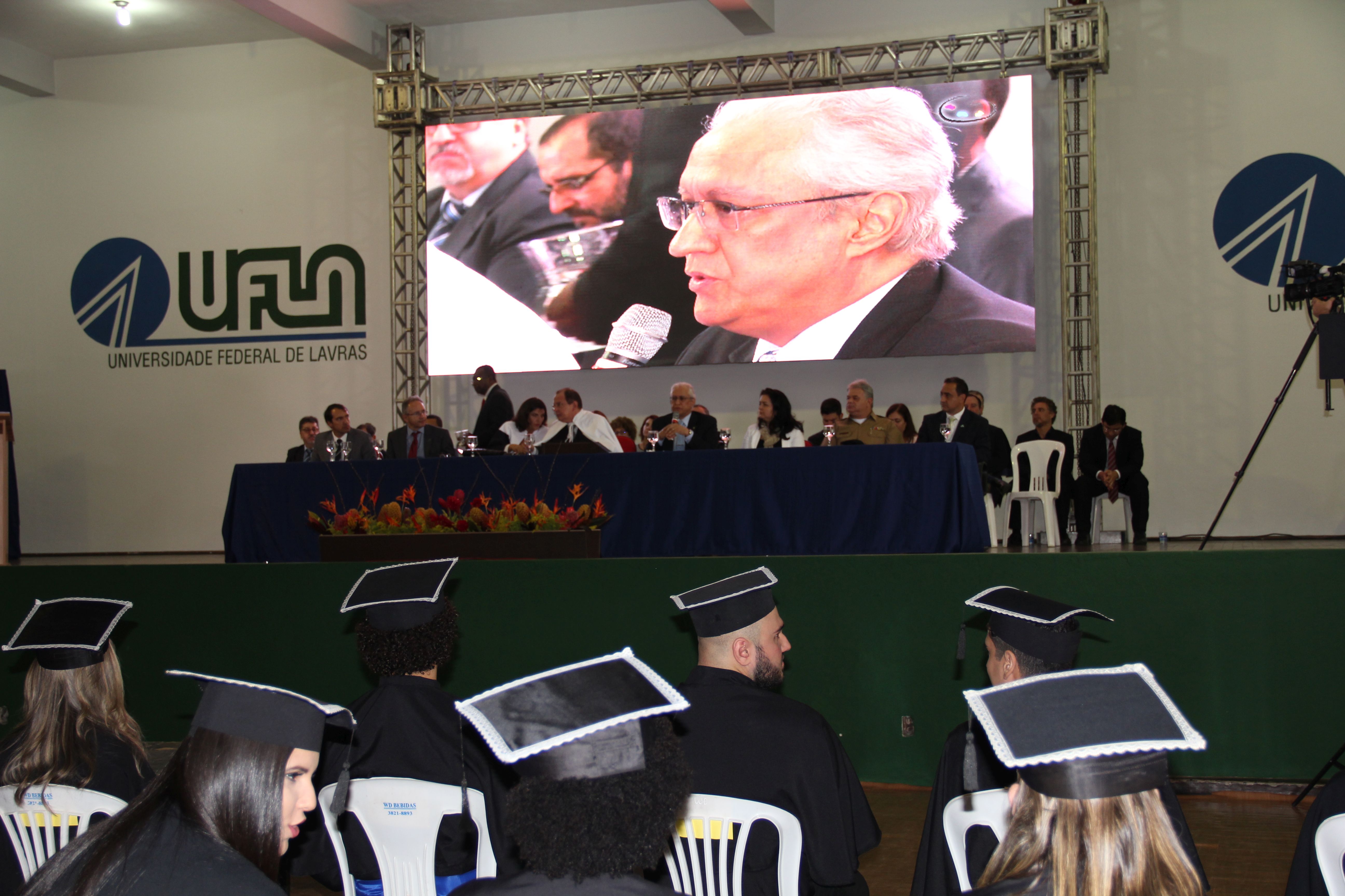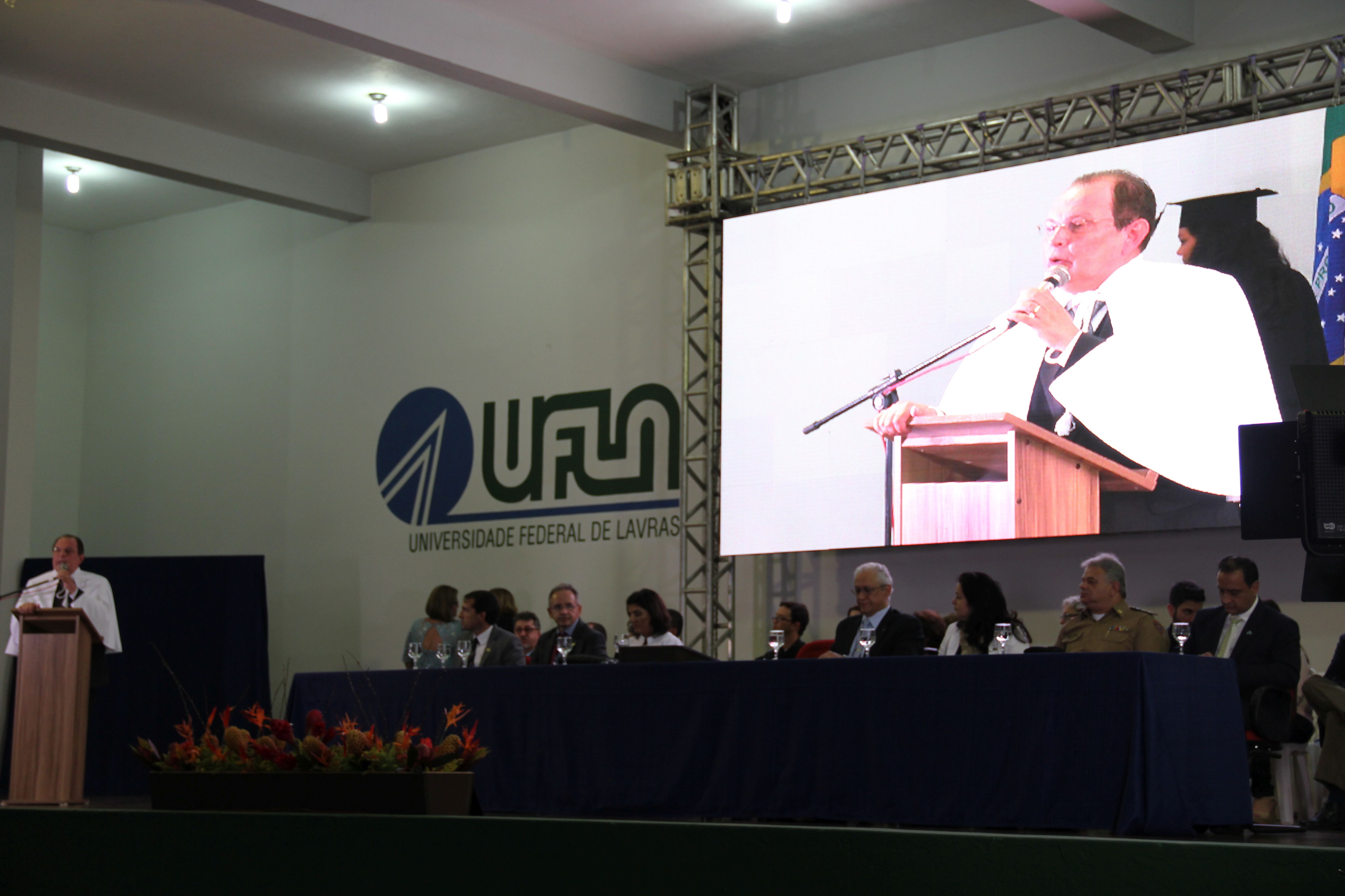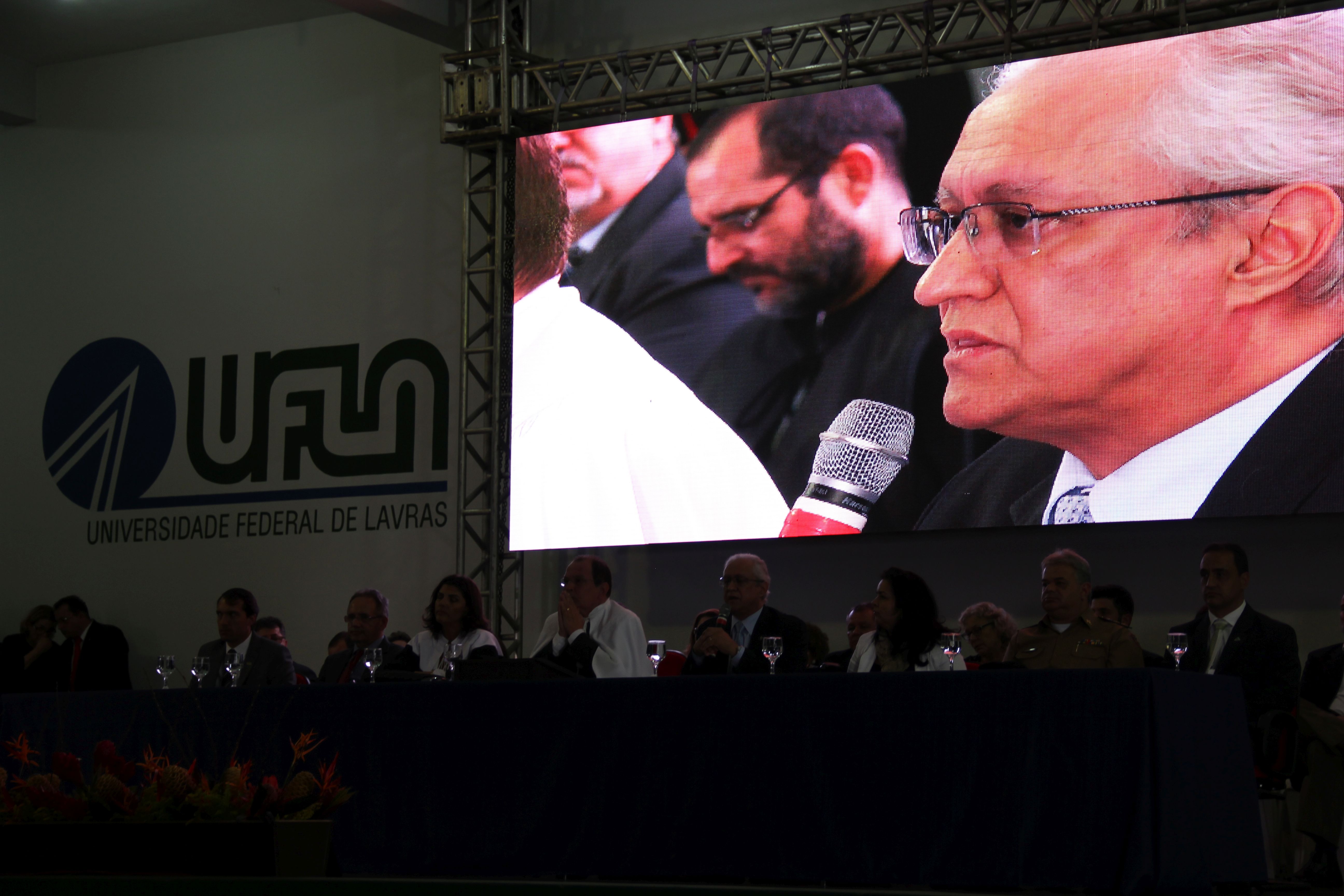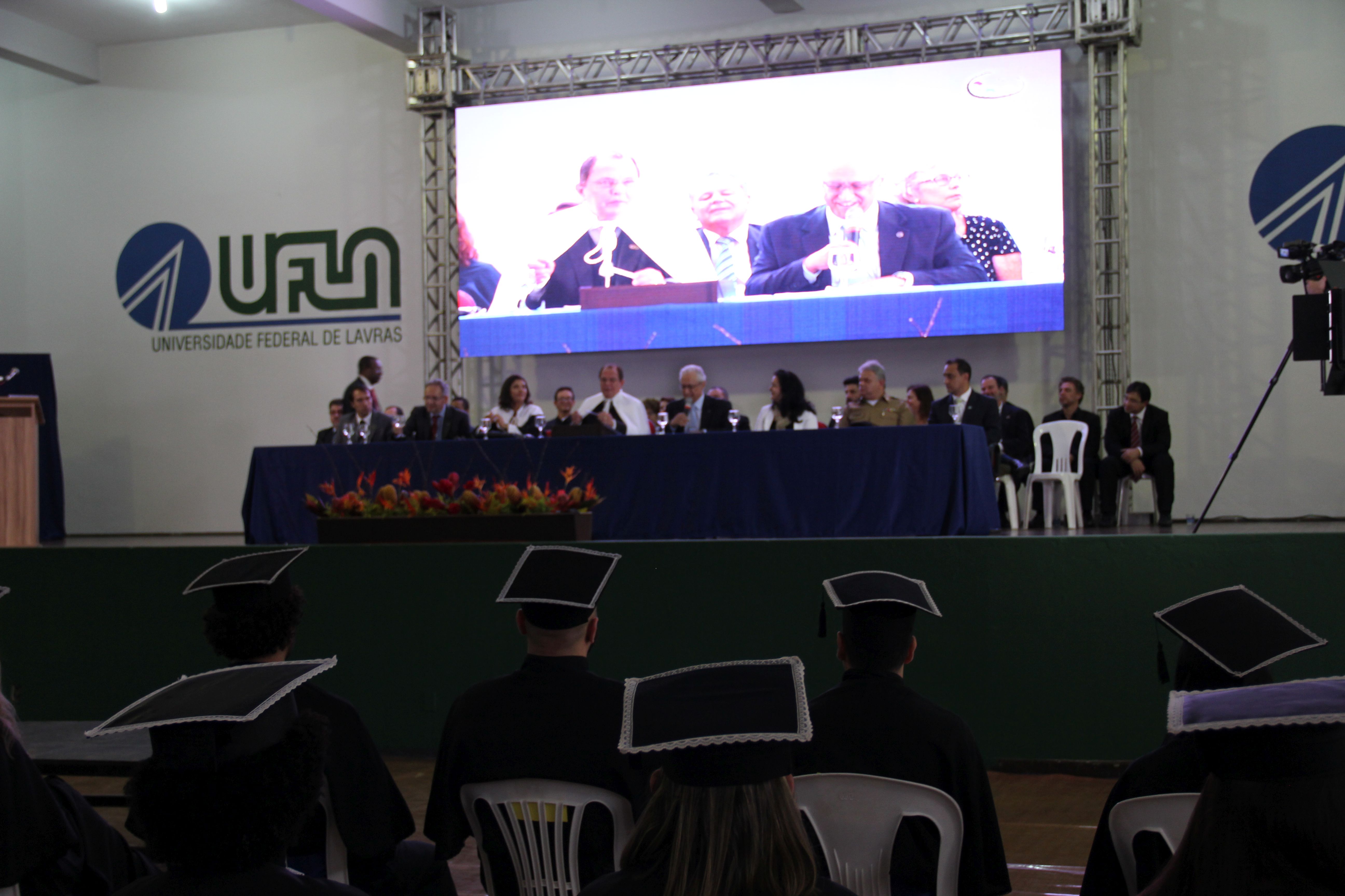 Durante a solenidade, na mesa de honra, também estiveram presentes membros do Conselho Universitário, pró-reitores, chefes de departamentos, diretores, coordenadores de cursos, patronos, patronesses, professores e servidores homenageados, além de parceiros e autoridades de Lavras.