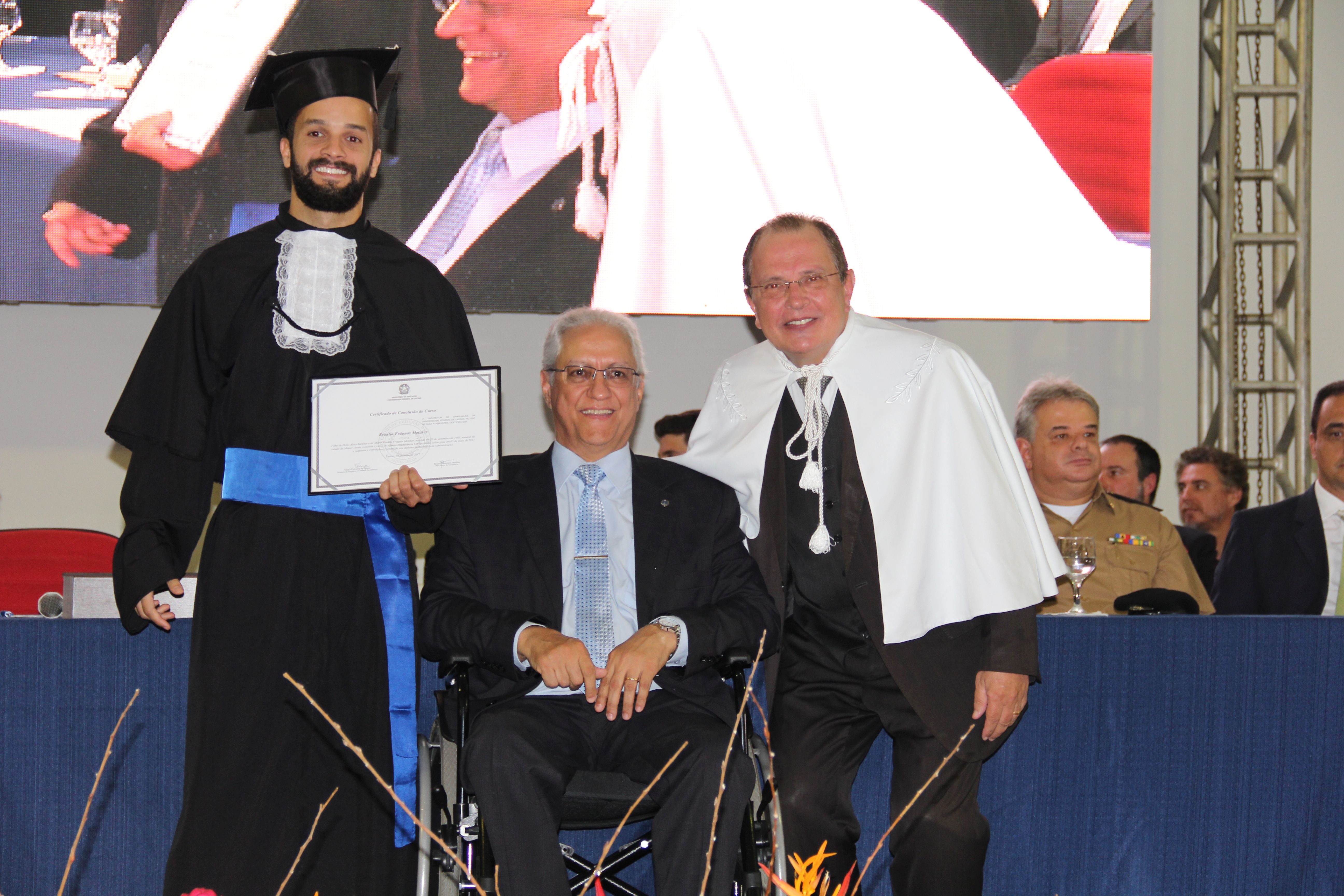 Lucas Rocha Vieira recebeu o Mérito Acadêmico no curso de Administração. Para ele, o reconhecimento da Universidade se deu em razão das atividades que realizou durante o curso, como monitoria, Programas de Educação Tutorial em Administração (PET/Administração), grupo de pesquisa, coral e orquestra. “Não sabia da homenagem e me senti muito honrado”.