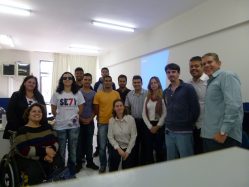 Além dos professores pesquisadores do grupo Alcance – André Pimenta Freire, Juliana Galvani Greghi e Raphael Winckler de Bettio – estiveram presentes o chefe do DCC, professor Renato Ramos da Silva; o pró-reitor de Pesquisa, professor Teodorico de Castro Ramalho; e a pró-reitora de Assuntos Estudantis e Comunitários, professora Ana Paula Piovesan Melchiori. Teodorico ressaltou a importância da visita dos membros da Rede e o interesse da Universidade no estreitamento das parcerias. Professora Ana Paula apresentou as iniciativas da Coordenadoria de Acessibilidade, ligada à Pró-Reitoria de Assuntos Estudantis e Comunitários (Praec), e reiterou a importância das parcerias.