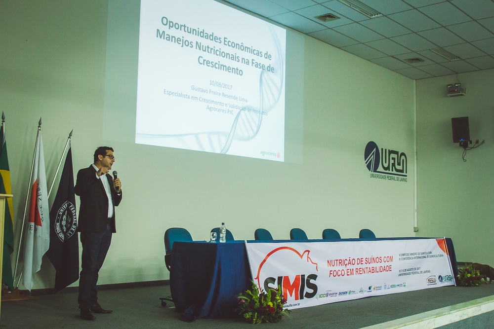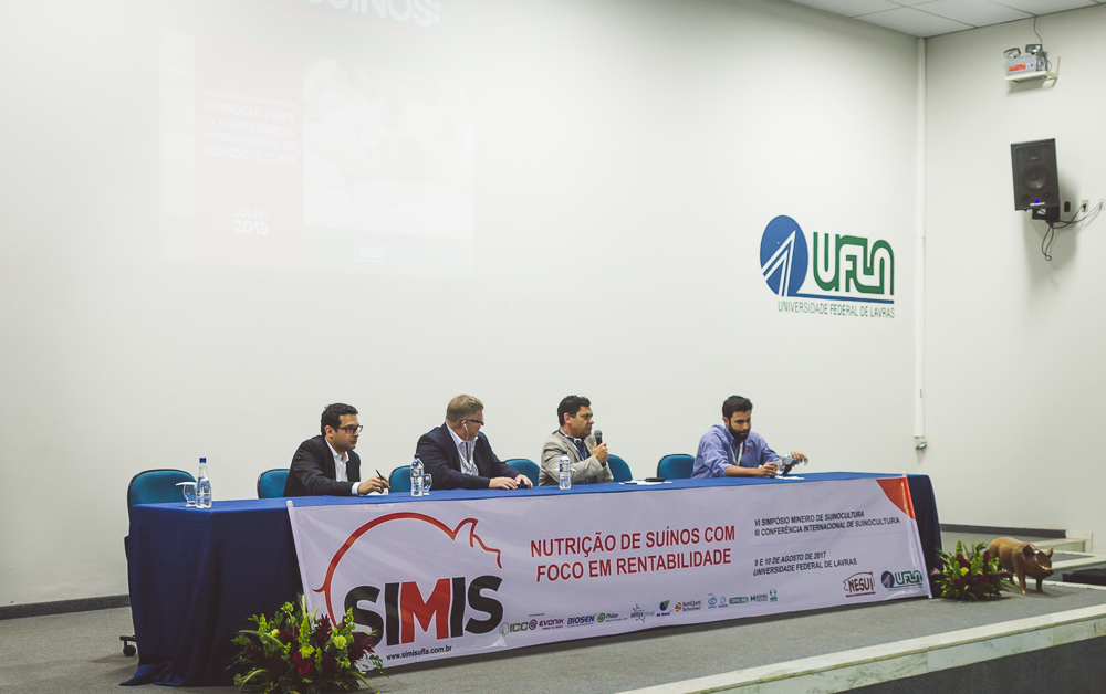 O VI Simpósio Mineiro de Suinocultura (Simis) e III Conferência Internacional de Suinocultura foram realizados, simultaneamente, no Salão de Convenções da UFLA nos dias 9 e 10 de agosto. A programação contou com palestras ministradas por pesquisadores e especialistas da área atuantes no Brasil, Estados Unidos e França. As palestras abordaram a temática “Nutrição com foco em rentabilidade”, englobando a logística da indústria em diferentes etapas da cadeia suinícola e pesquisas recentes.