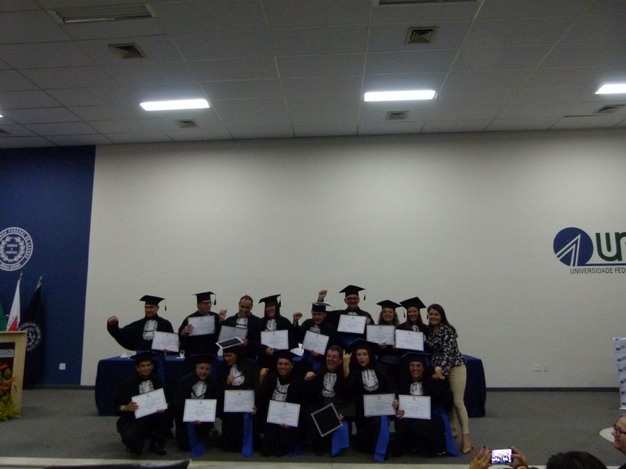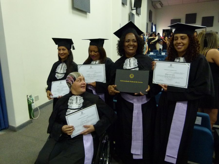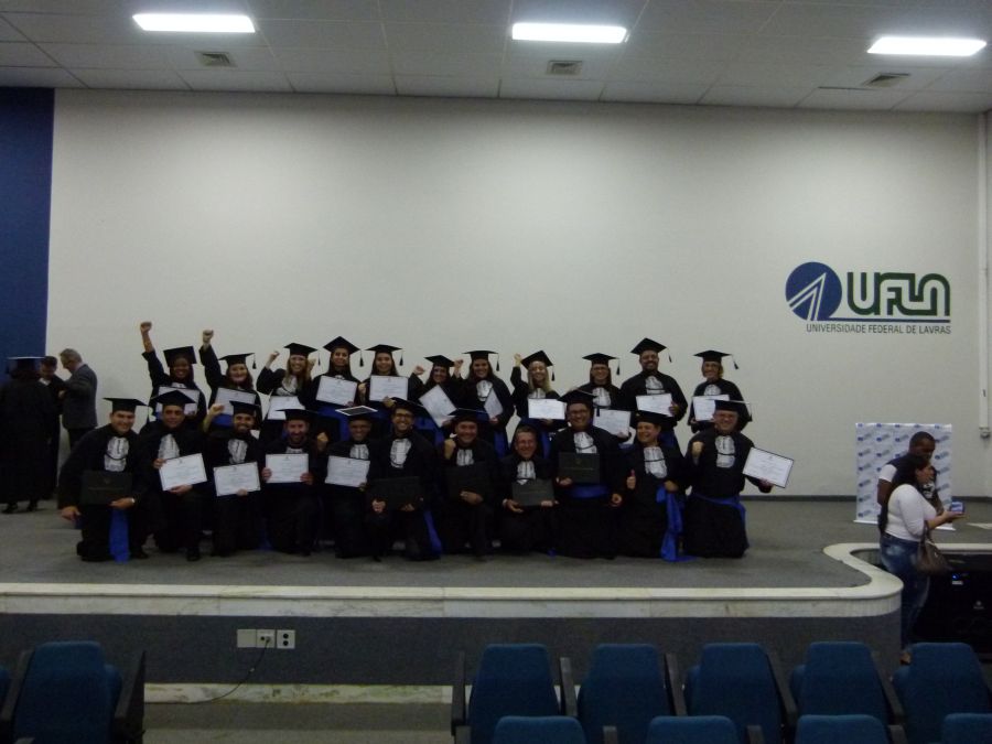 Sessenta e oito estudantes de cursos de graduação a distância da Universidade Federal de Lavras (UFLA) colaram grau no último sábado (19/8). Às 14h foi realizada a formatura dos cursos de Administração Pública, Pedagogia, Filosofia, Letras Inglês e Letras Português.