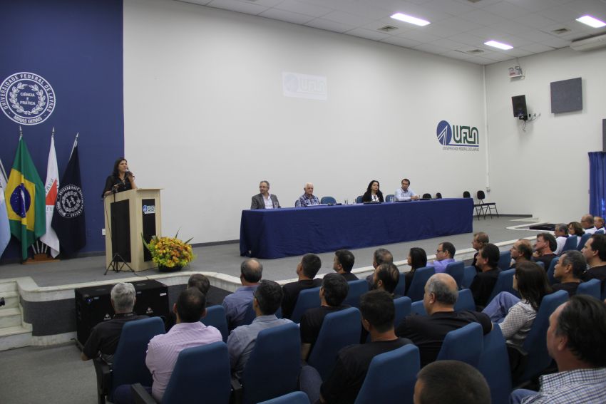 A sessão solene foi conduzida pela vice-reitora, professora Édila Vilela de Resende Von Pinho, ex-aluna da UFLA, que comemorou 30 anos de formada. “Ver a casa cheia é uma alegria para nós. São 109 anos de uma história feita por muitas mãos. Por nossa sorte foi realizada por pessoas ousadas. Temos hoje uma Instituição em plena expansão, apesar da crise. A luta é muito grande, mas com a força do conjunto podemos mais. Tenho o maior orgulho de fazer parte desta Universidade, e principalmente hoje em que eu completo 30 anos de formada”, destacou a vice-reitora.