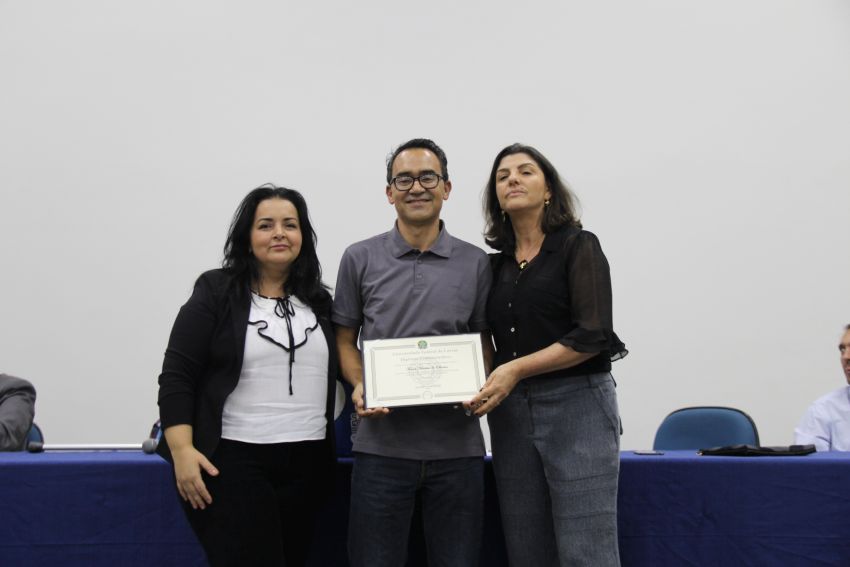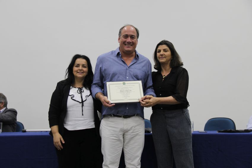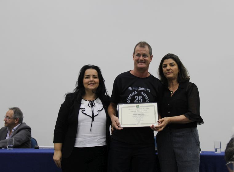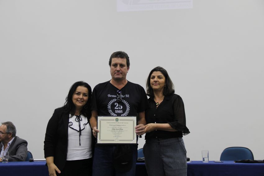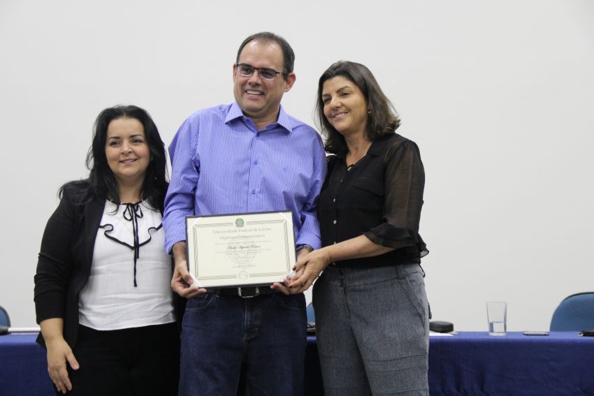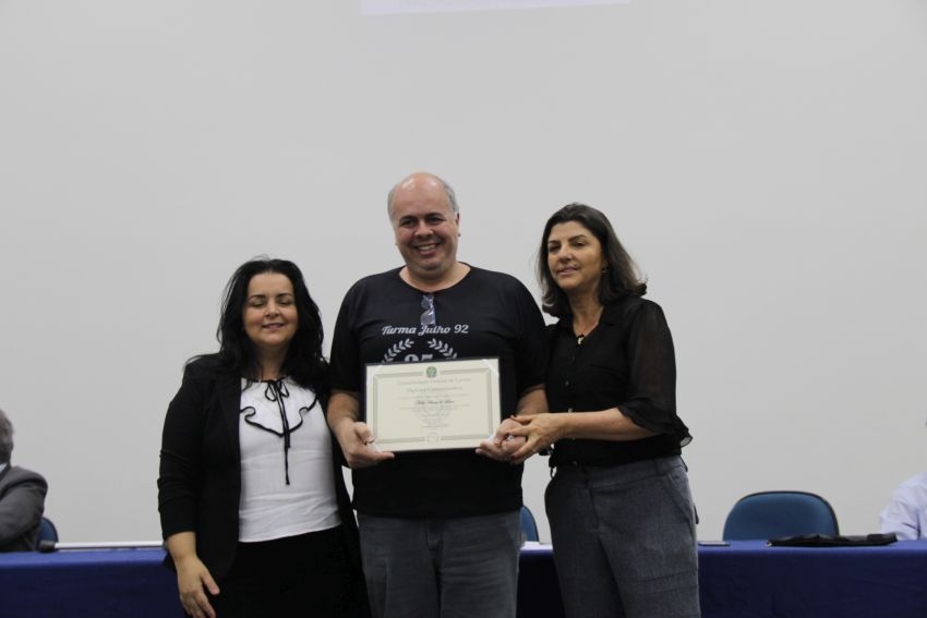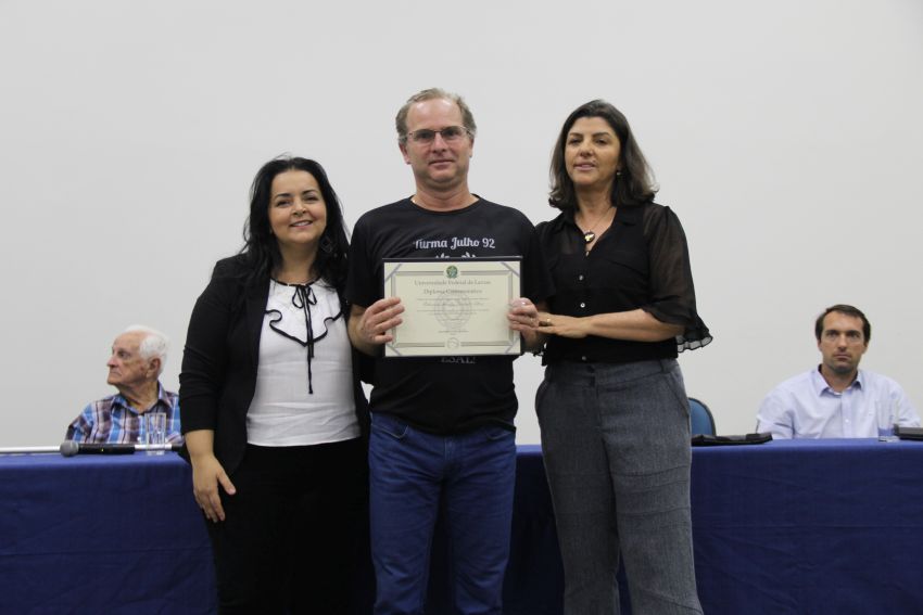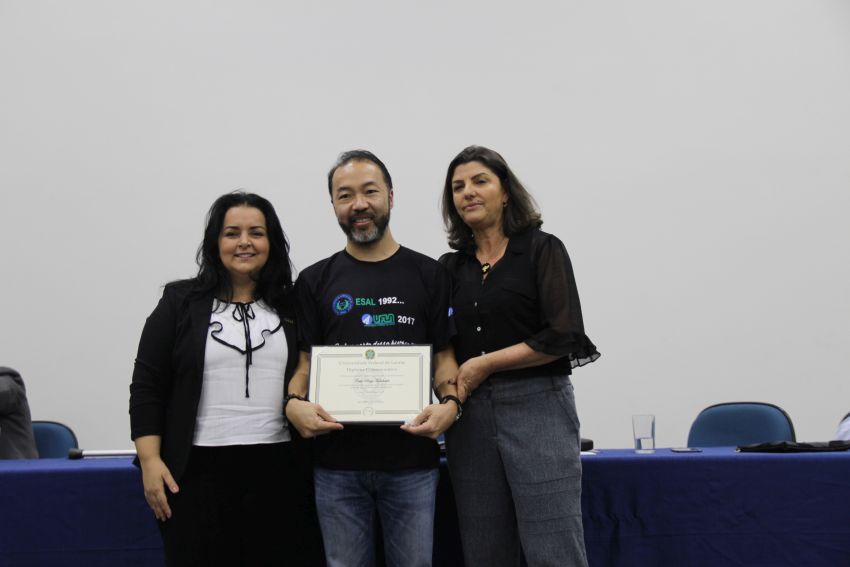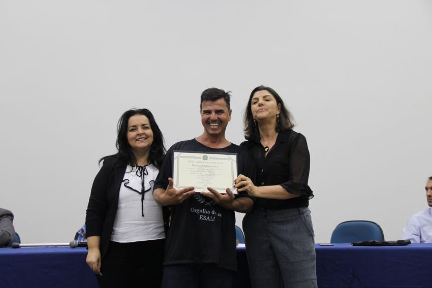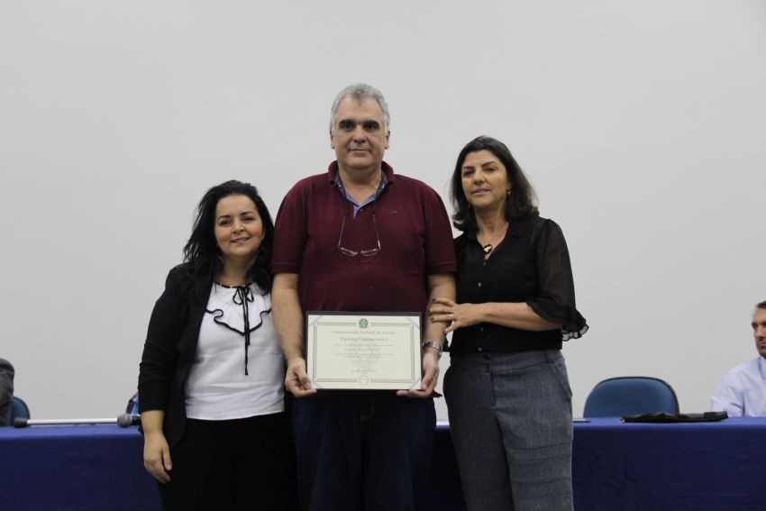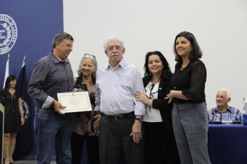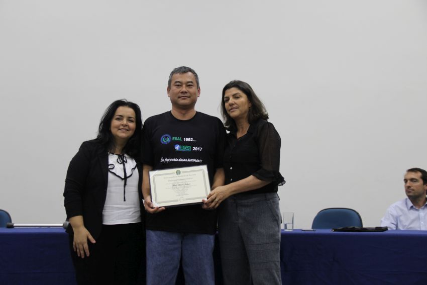 Também estiveram presentes na mesa de autoridades, a chefe de gabinete, professora Joziana Muniz de Paiva Barçante; o pró-reitor de Pós-Graduação, professor Rafael Pio; o pró-reitor de Graduação, professor Ronei Ximenes Martins e o grande destaque da solenidade: o ex-aluno, com 65 anos de formado, engenheiro agrônomo João de Camargo Aranha Netto, representando todos os egressos da ESAL/UFLA.