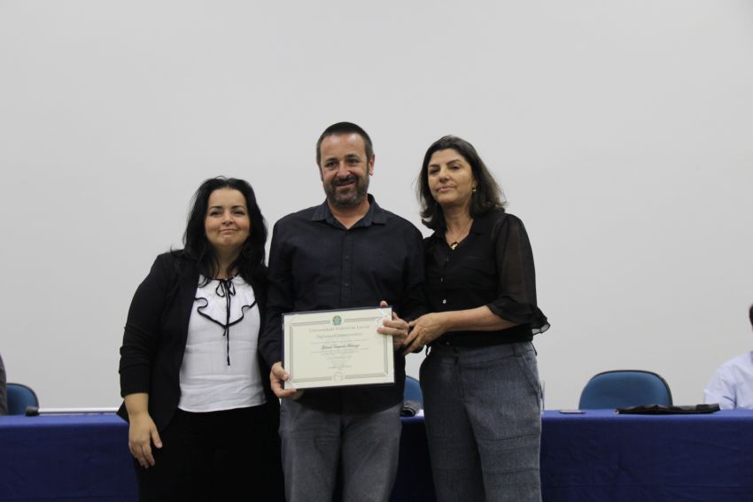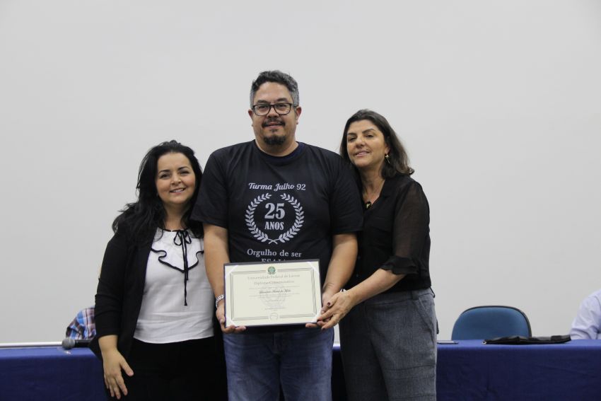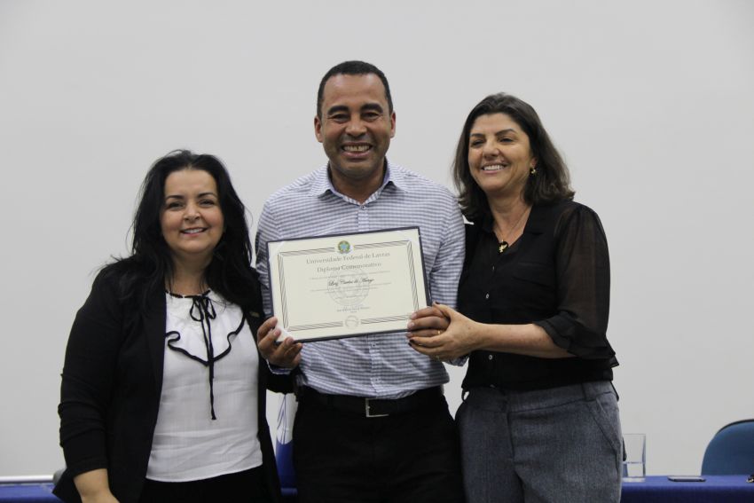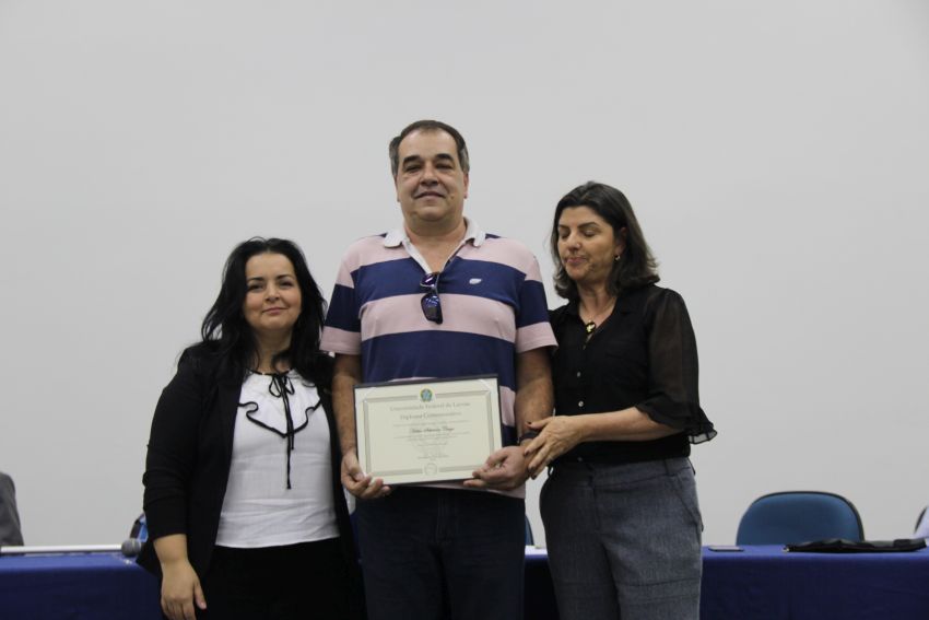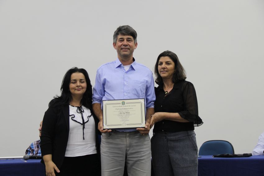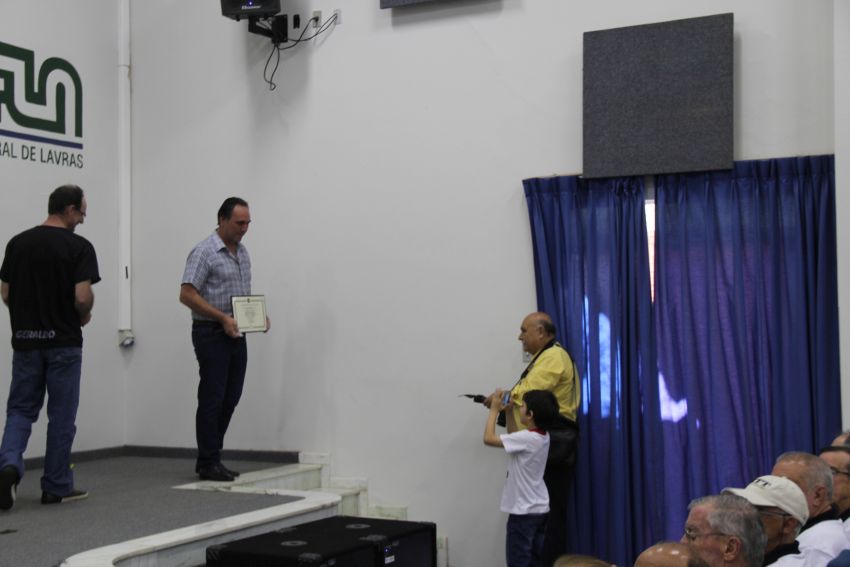 Também estiveram presentes na mesa de autoridades, a chefe de gabinete, professora Joziana Muniz de Paiva Barçante; o pró-reitor de Pós-Graduação, professor Rafael Pio; o pró-reitor de Graduação, professor Ronei Ximenes Martins e o grande destaque da solenidade: o ex-aluno, com 65 anos de formado, engenheiro agrônomo João de Camargo Aranha Netto, representando todos os egressos da ESAL/UFLA.