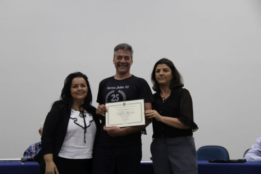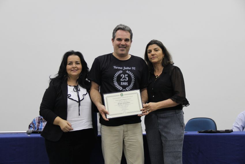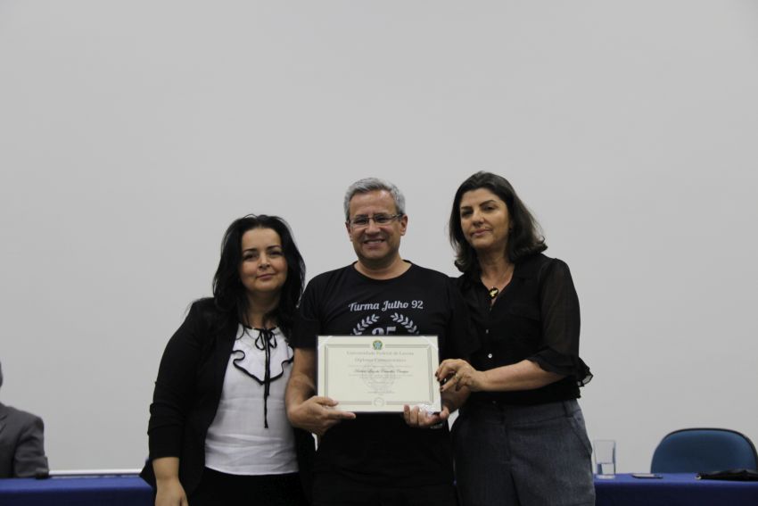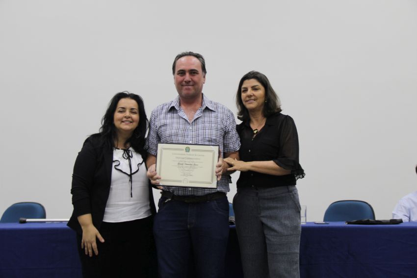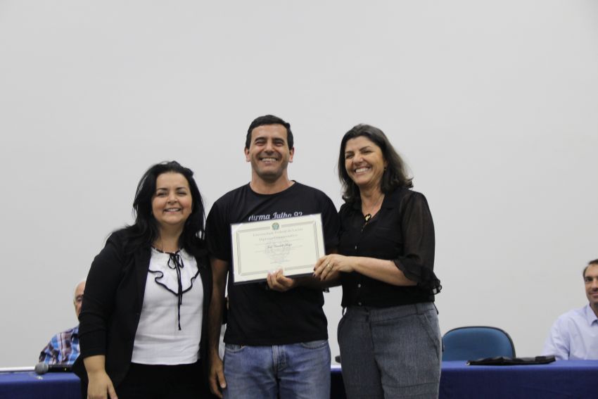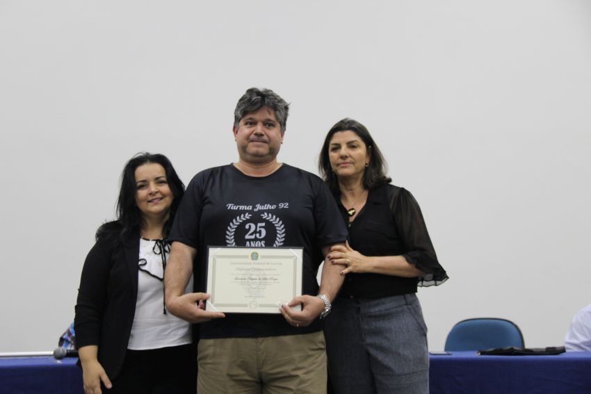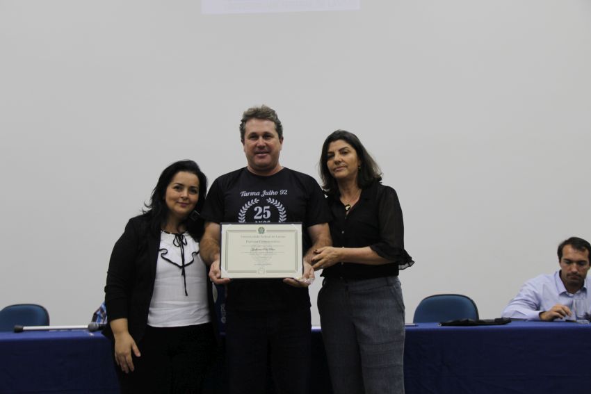 Também estiveram presentes na mesa de autoridades, a chefe de gabinete, professora Joziana Muniz de Paiva Barçante; o pró-reitor de Pós-Graduação, professor Rafael Pio; o pró-reitor de Graduação, professor Ronei Ximenes Martins e o grande destaque da solenidade: o ex-aluno, com 65 anos de formado, engenheiro agrônomo João de Camargo Aranha Netto, representando todos os egressos da ESAL/UFLA.