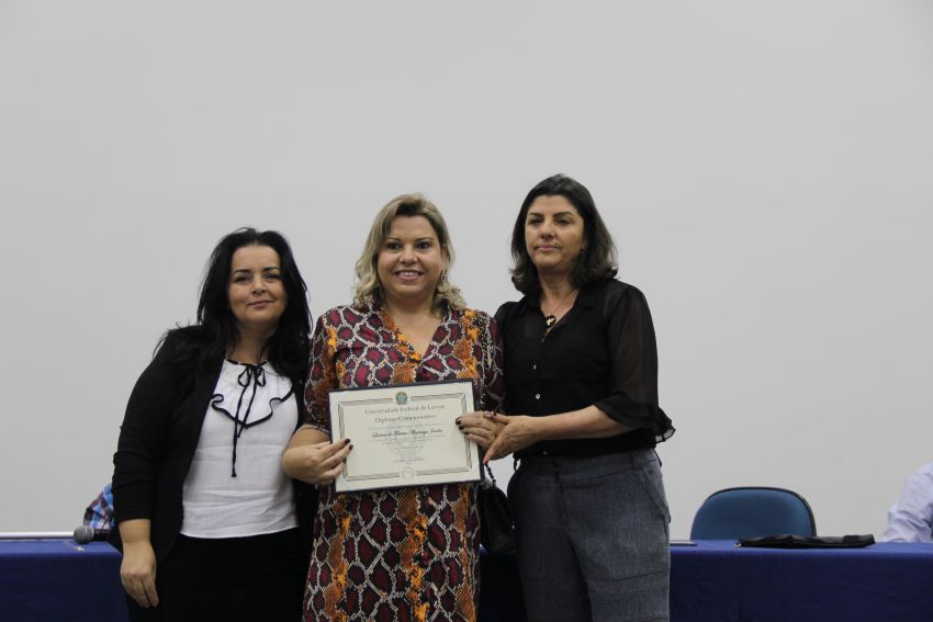 A sessão solene foi conduzida pela vice-reitora, professora Édila Vilela de Resende Von Pinho, ex-aluna da UFLA, que comemorou 30 anos de formada. “Ver a casa cheia é uma alegria para nós. São 109 anos de uma história feita por muitas mãos. Por nossa sorte foi realizada por pessoas ousadas. Temos hoje uma Instituição em plena expansão, apesar da crise. A luta é muito grande, mas com a força do conjunto podemos mais. Tenho o maior orgulho de fazer parte desta Universidade, e principalmente hoje em que eu completo 30 anos de formada”, destacou a vice-reitora.