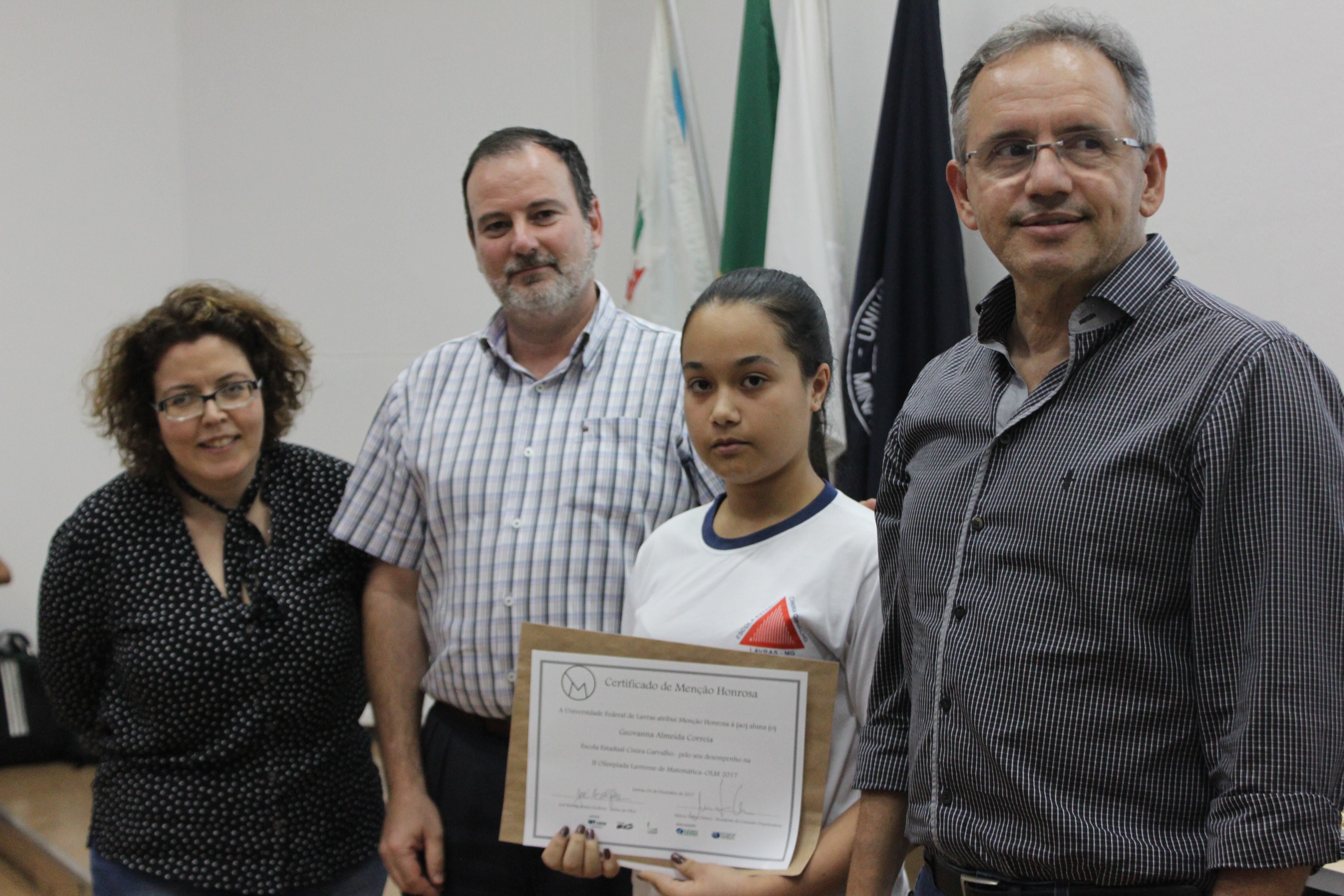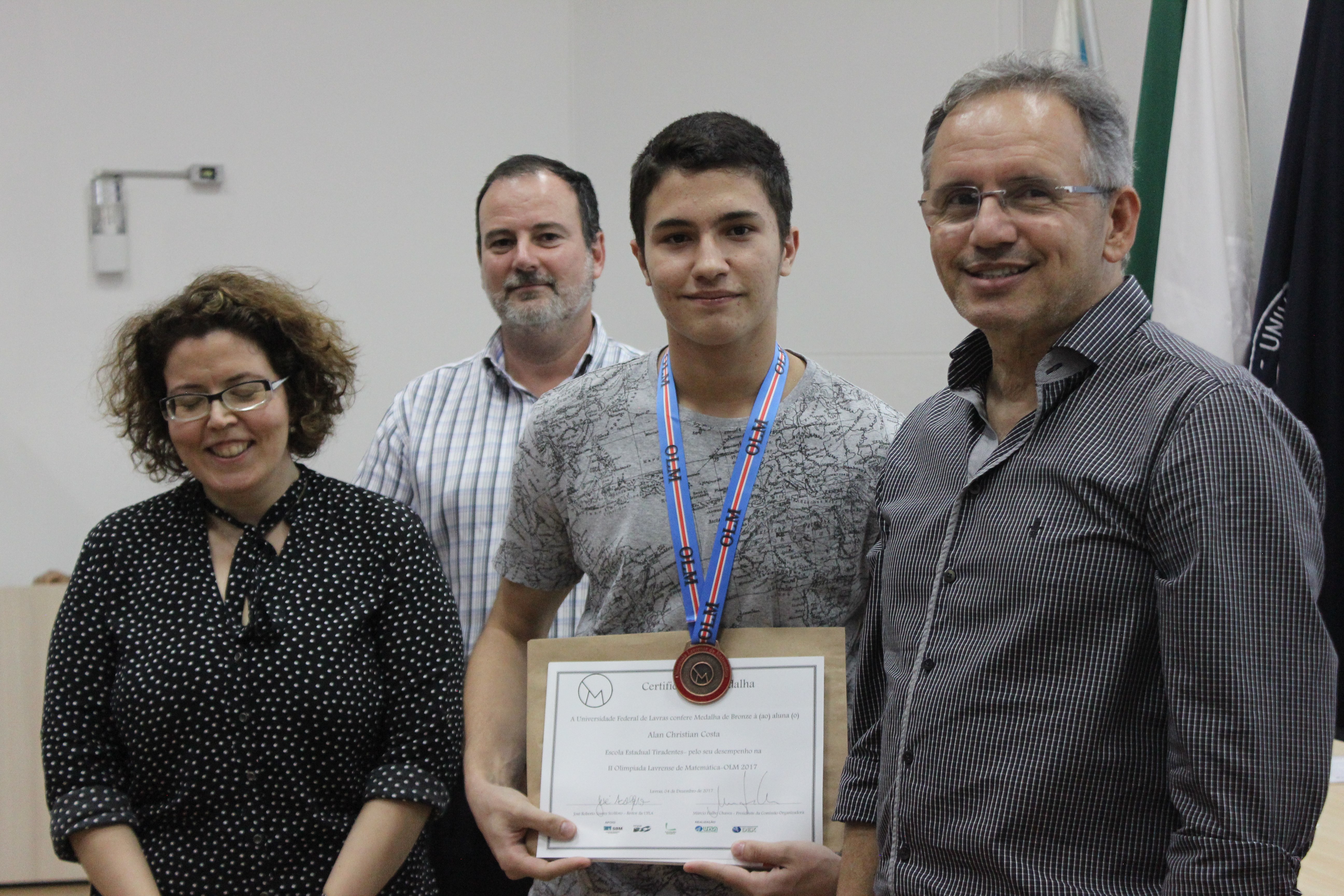 Na segunda-feira (5/12), a Universidade Federal de Lavras (UFLA) realizou a cerimônia de premiação da segunda edição da Olimpíada Lavrense de Matemática. A competição envolveu estudantes do Ensino Fundamental (6º ao 9º ano) e Ensino Médio de escolas públicas e particulares da cidade de Lavras. Trinta e seis participantes foram homenageados no evento com menções honrosas e medalhas de ouro, prata e bronze, de acordo com o desempenho alcançado.