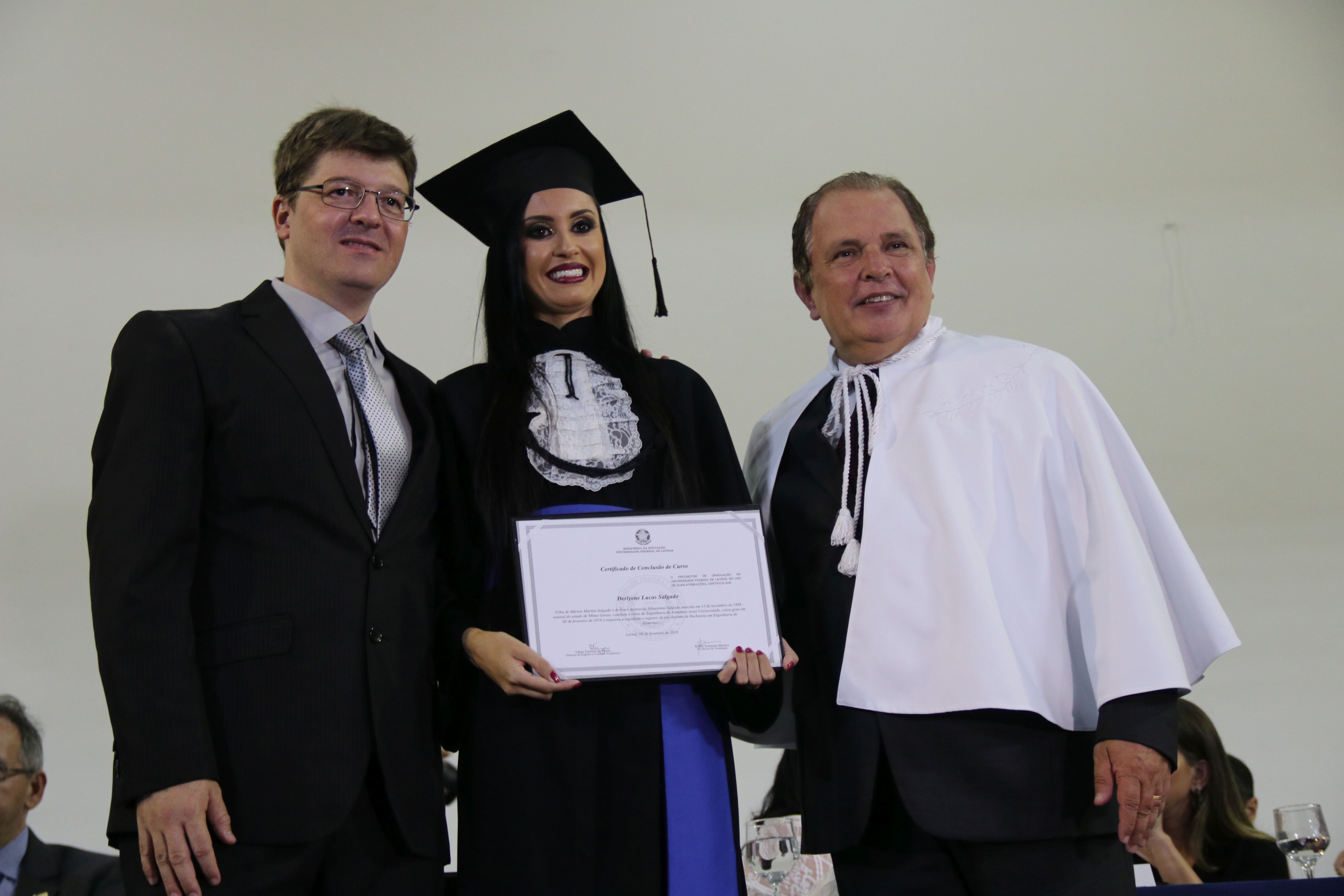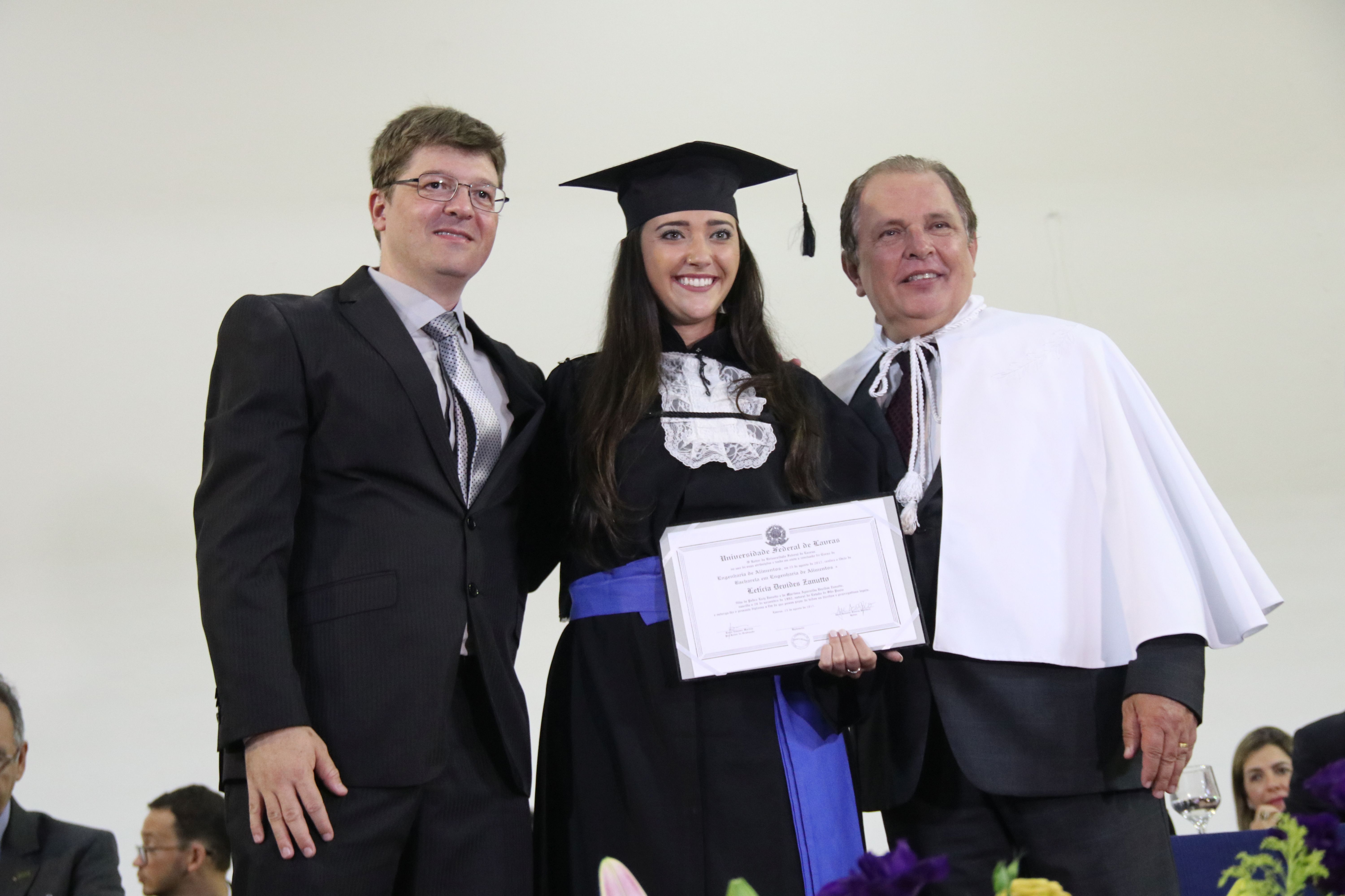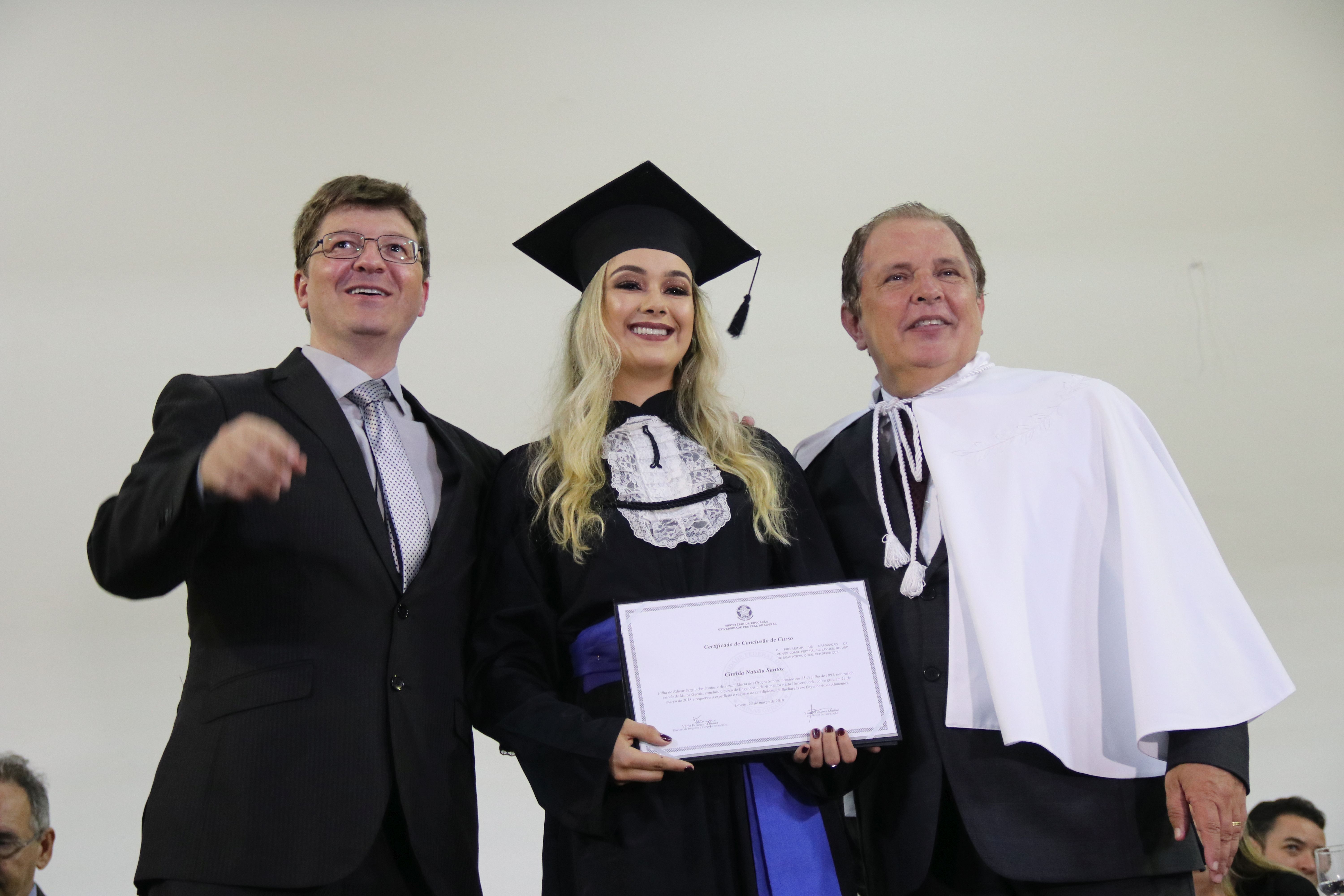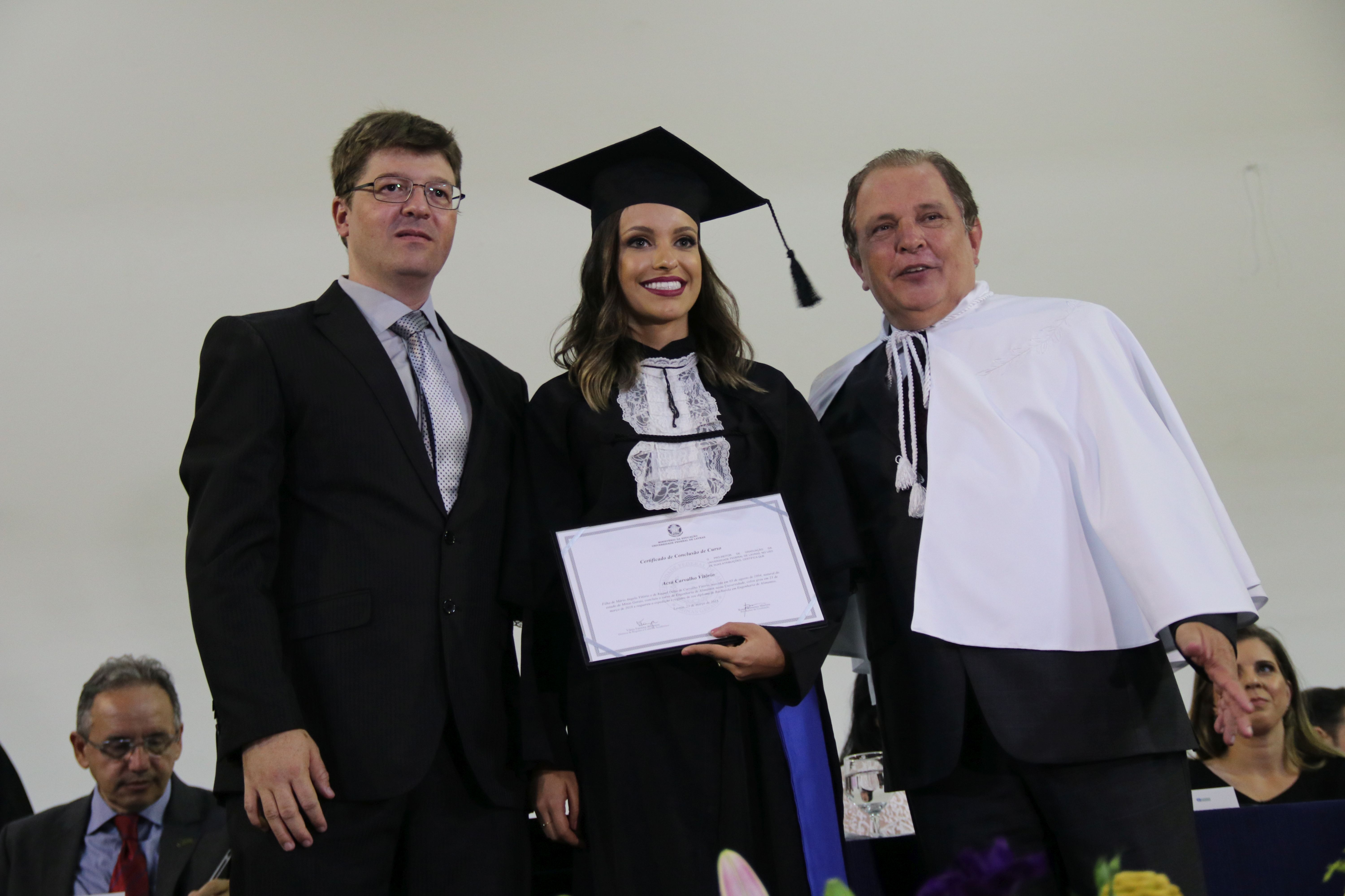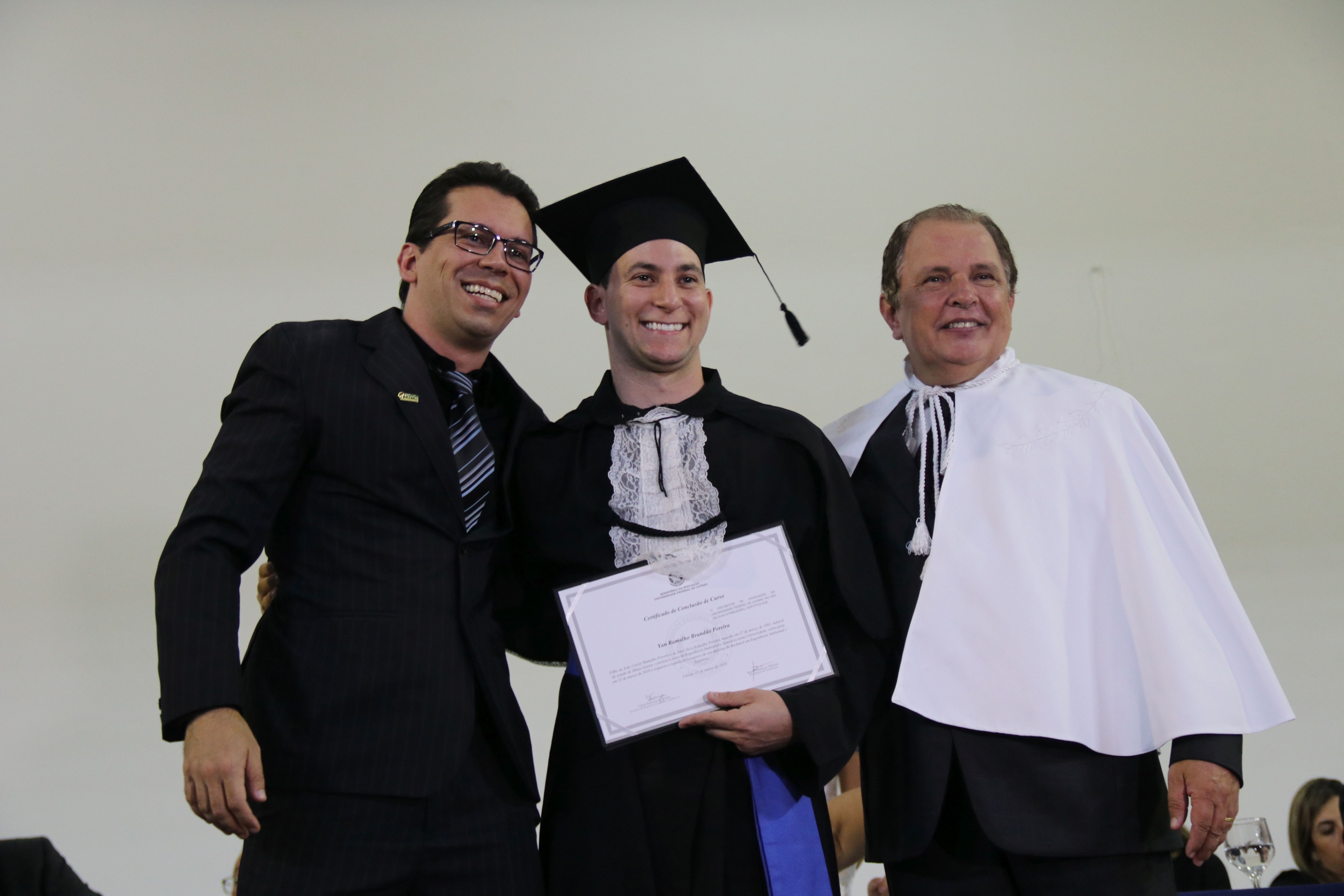 As solenidades foram presididas pelo reitor e presidente do CUNI, professor José Roberto Soares Scolforo. Após fazer referência à tradução das cerimônias na Língua Brasileira de Sinais (Libras), manifestou orgulho pelo fato de a UFLA trabalhar primando pela inclusão e pelo respeito às diversidades. Para os formandos, reforçou a importância do juramento que fizeram, especialmente pelo compromisso com a ética, a justiça e a defesa da liberdade e da paz. “Vocês tiveram a felicidade de se formar sob o investimento do povo brasileiro. Por isso devem se empenhar em cumprir esses compromissos carregados de valores que são hoje tão necessários à sociedade brasileira”. Scolforo também incentivou os novos profissionais a seguirem em frente: “vençam o medo deste momento posterior à conclusão do curso e lutem, busquem alcançar seus sonhos, sejam cidadãos de valor, pratiquem solidariedade e continuem a caminhada com garra e persistência, sempre respeitando as diferenças”.