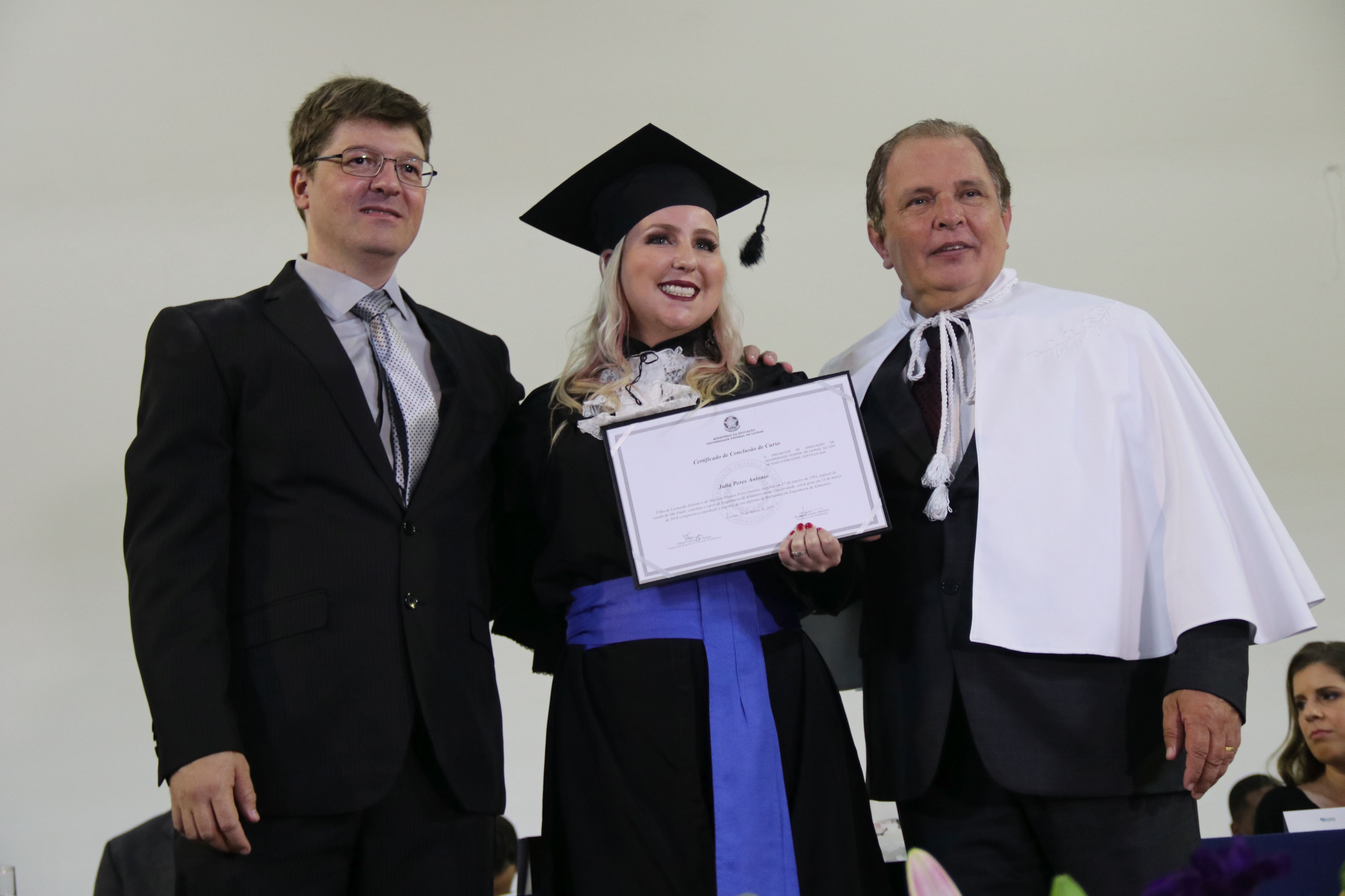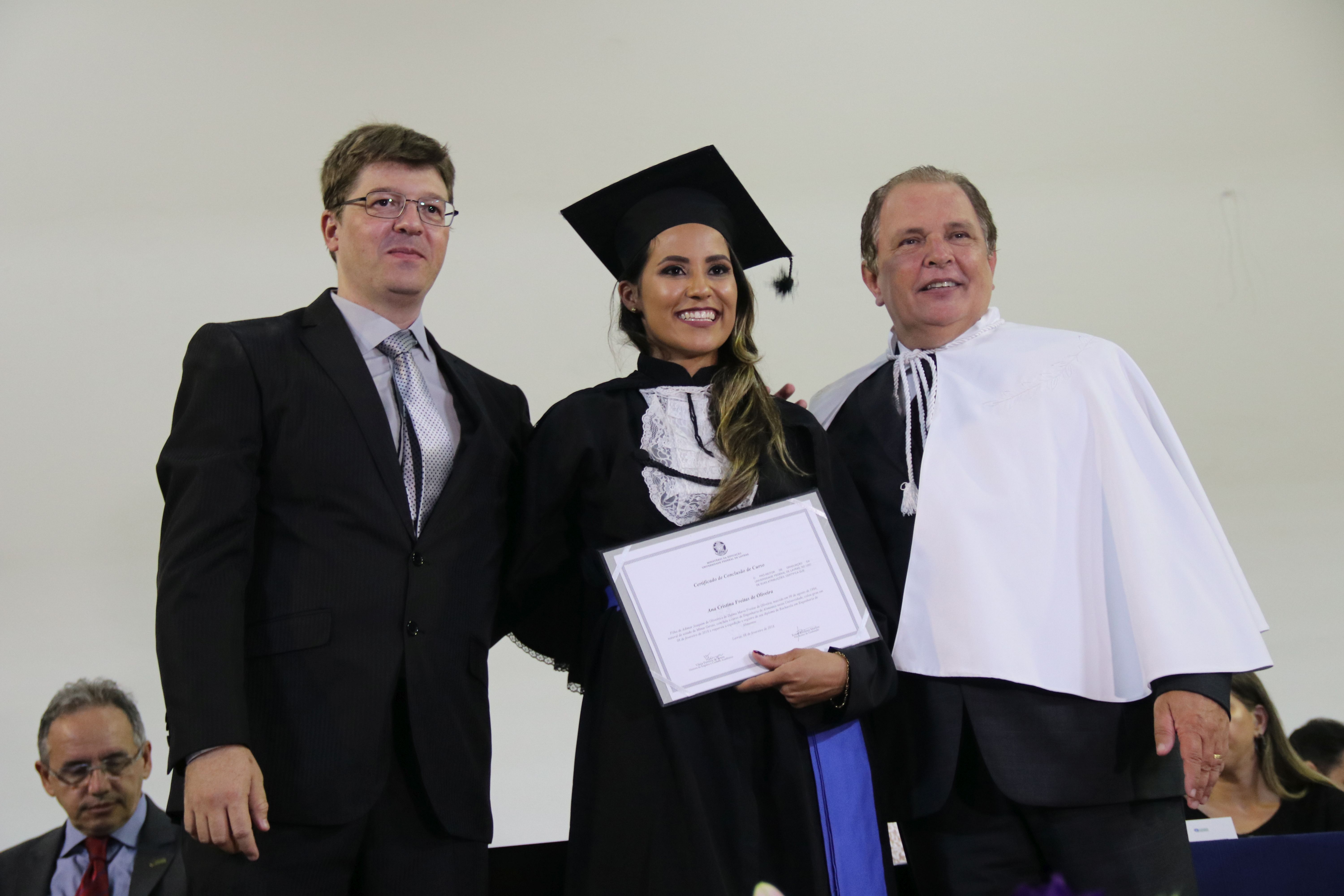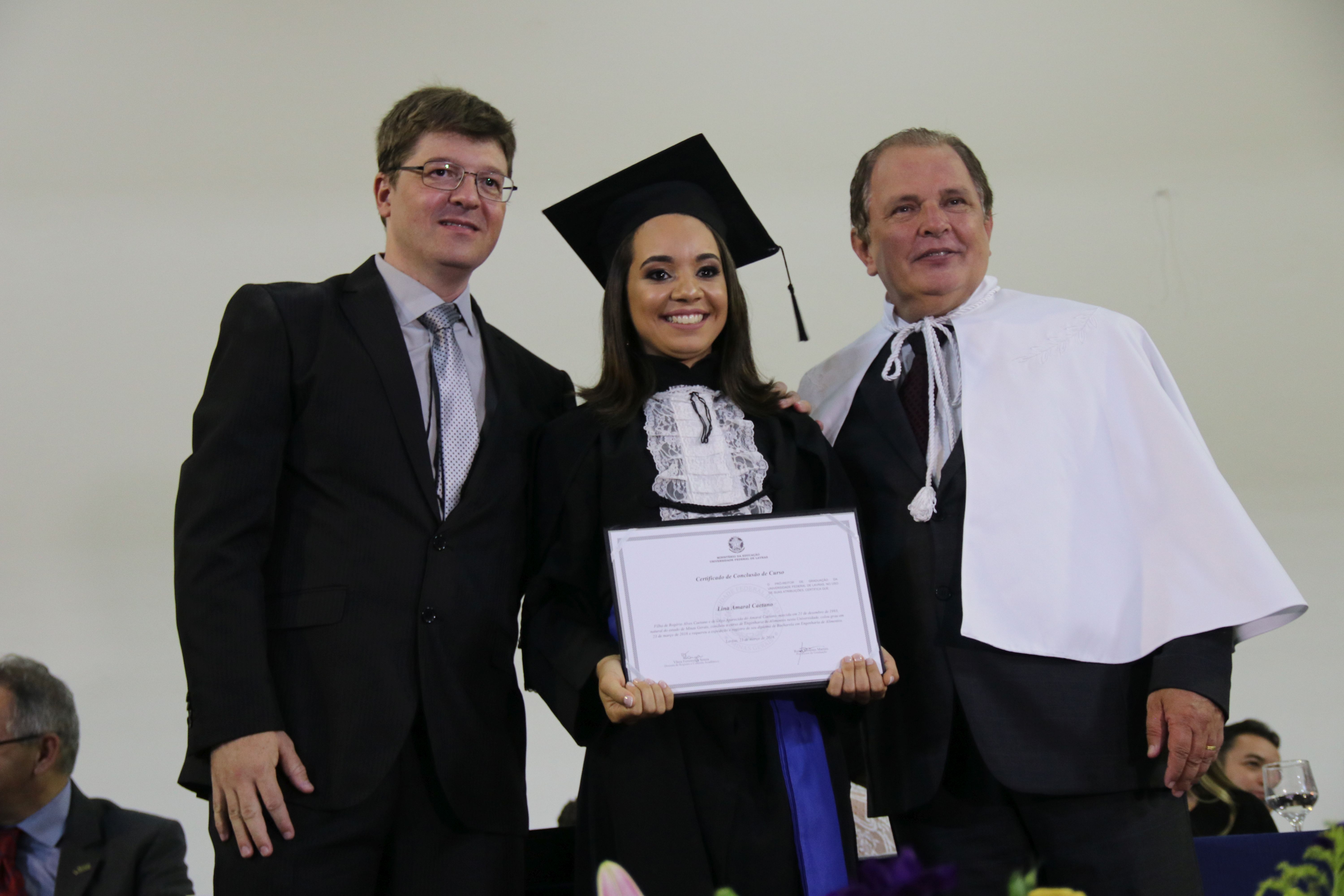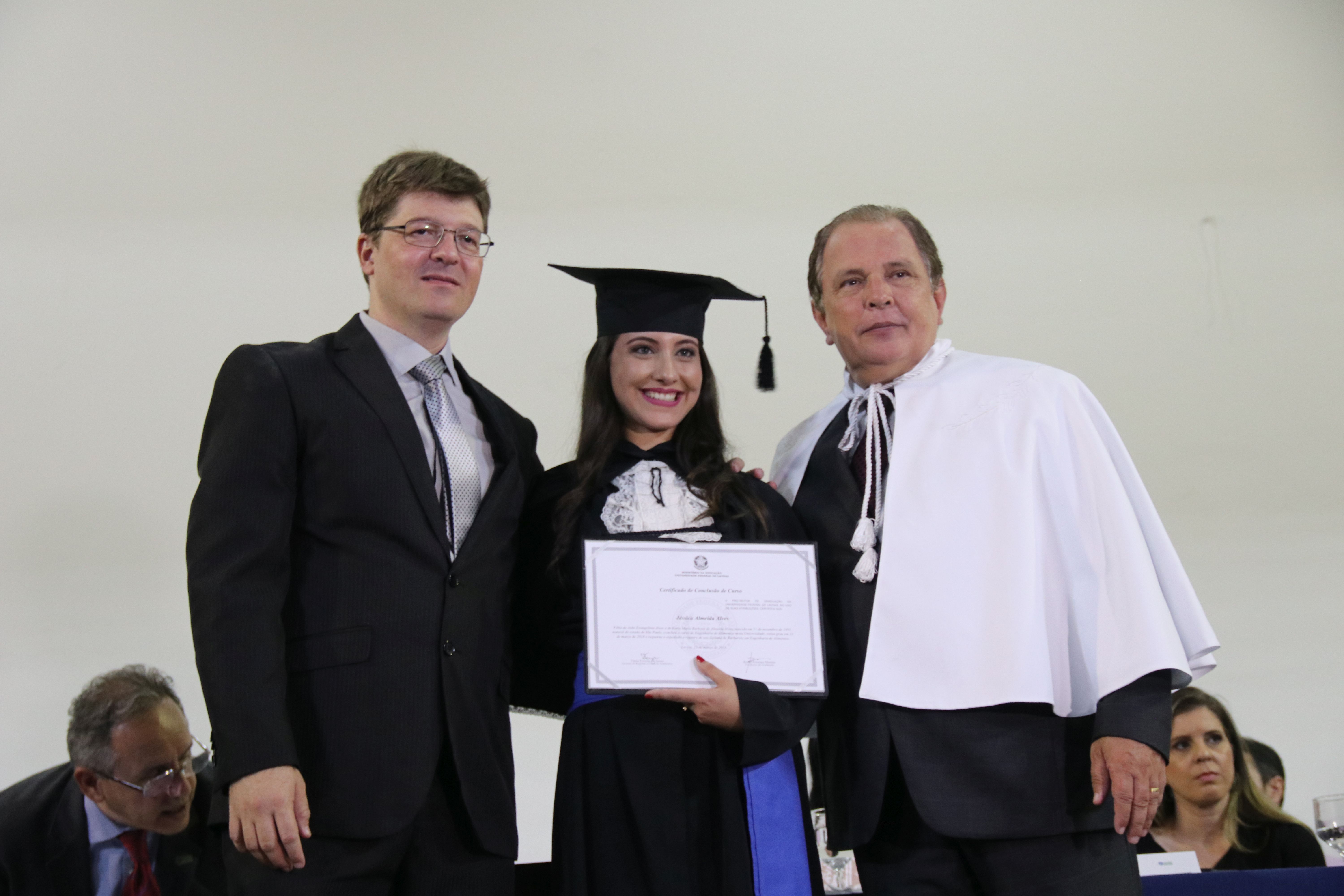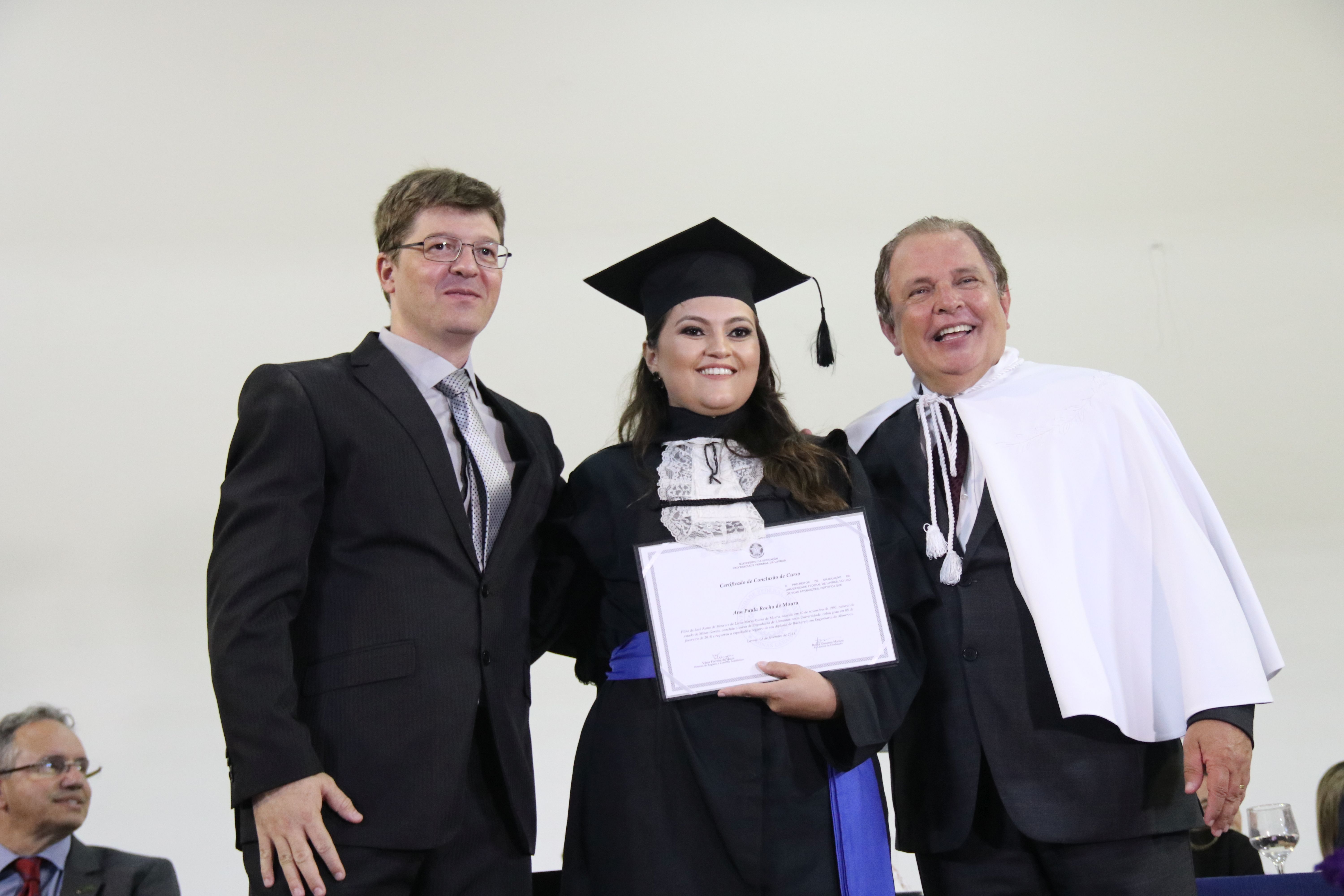 As solenidades foram presididas pelo reitor e presidente do CUNI, professor José Roberto Soares Scolforo. Após fazer referência à tradução das cerimônias na Língua Brasileira de Sinais (Libras), manifestou orgulho pelo fato de a UFLA trabalhar primando pela inclusão e pelo respeito às diversidades. Para os formandos, reforçou a importância do juramento que fizeram, especialmente pelo compromisso com a ética, a justiça e a defesa da liberdade e da paz. “Vocês tiveram a felicidade de se formar sob o investimento do povo brasileiro. Por isso devem se empenhar em cumprir esses compromissos carregados de valores que são hoje tão necessários à sociedade brasileira”. Scolforo também incentivou os novos profissionais a seguirem em frente: “vençam o medo deste momento posterior à conclusão do curso e lutem, busquem alcançar seus sonhos, sejam cidadãos de valor, pratiquem solidariedade e continuem a caminhada com garra e persistência, sempre respeitando as diferenças”.