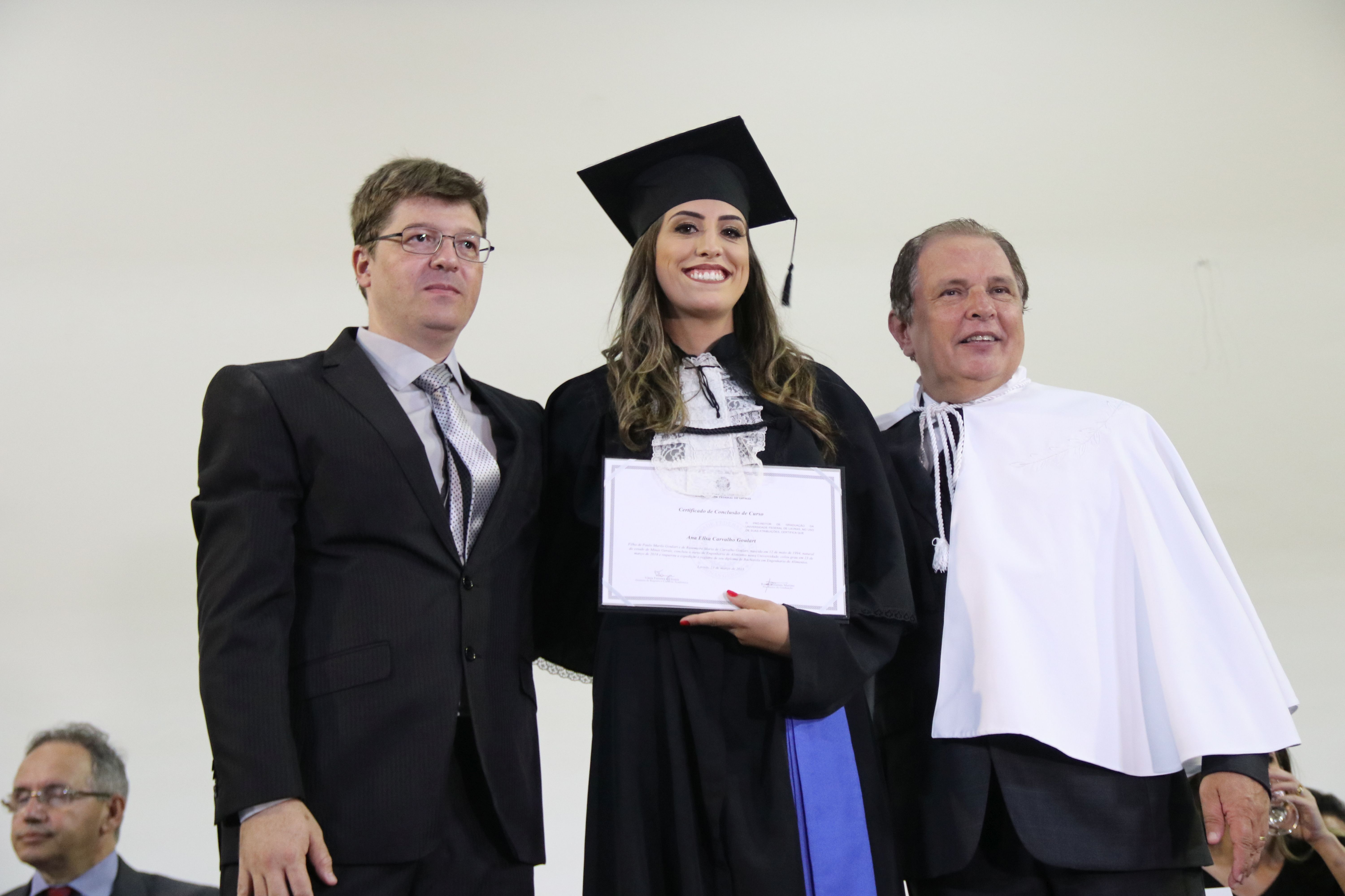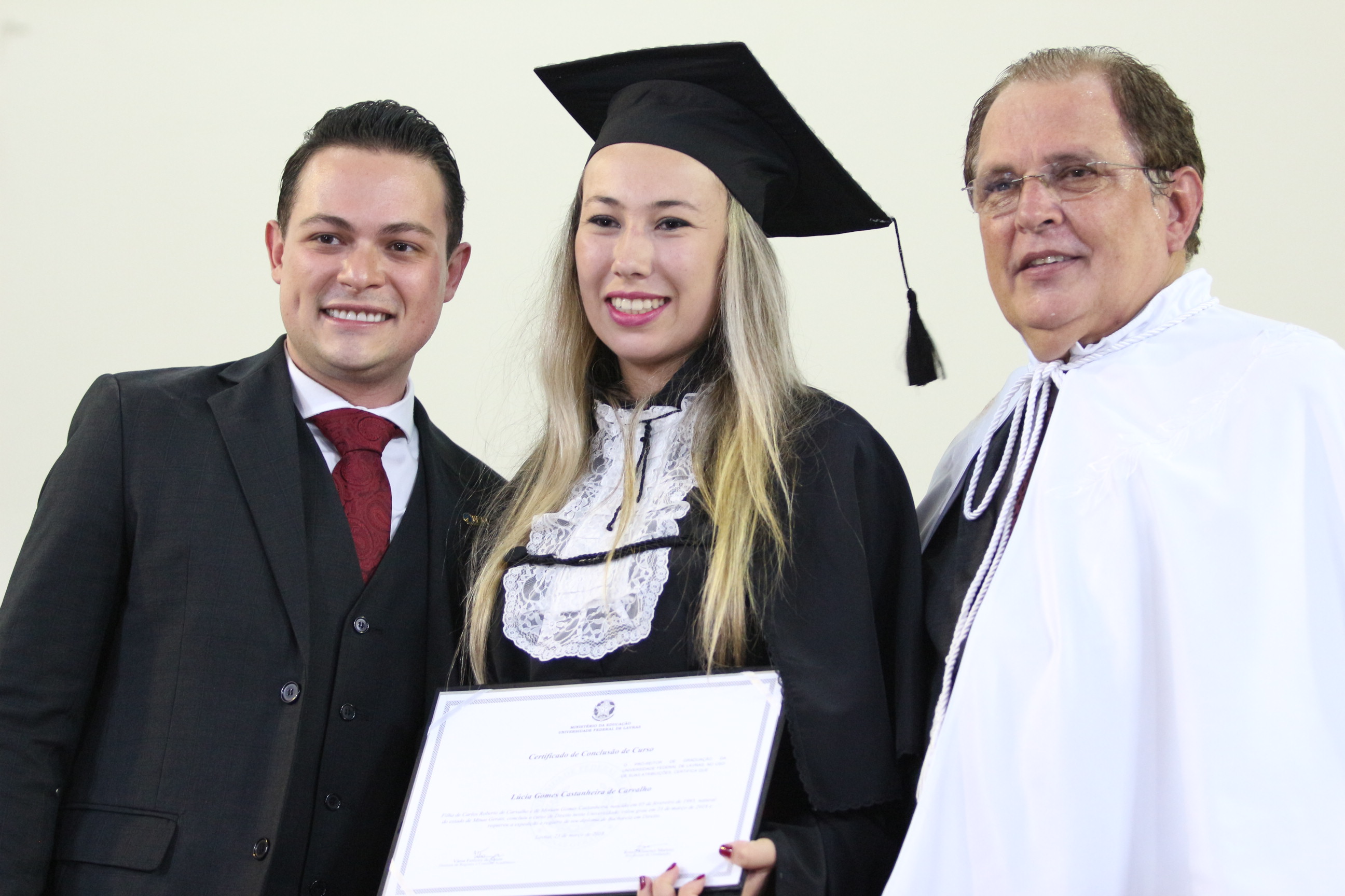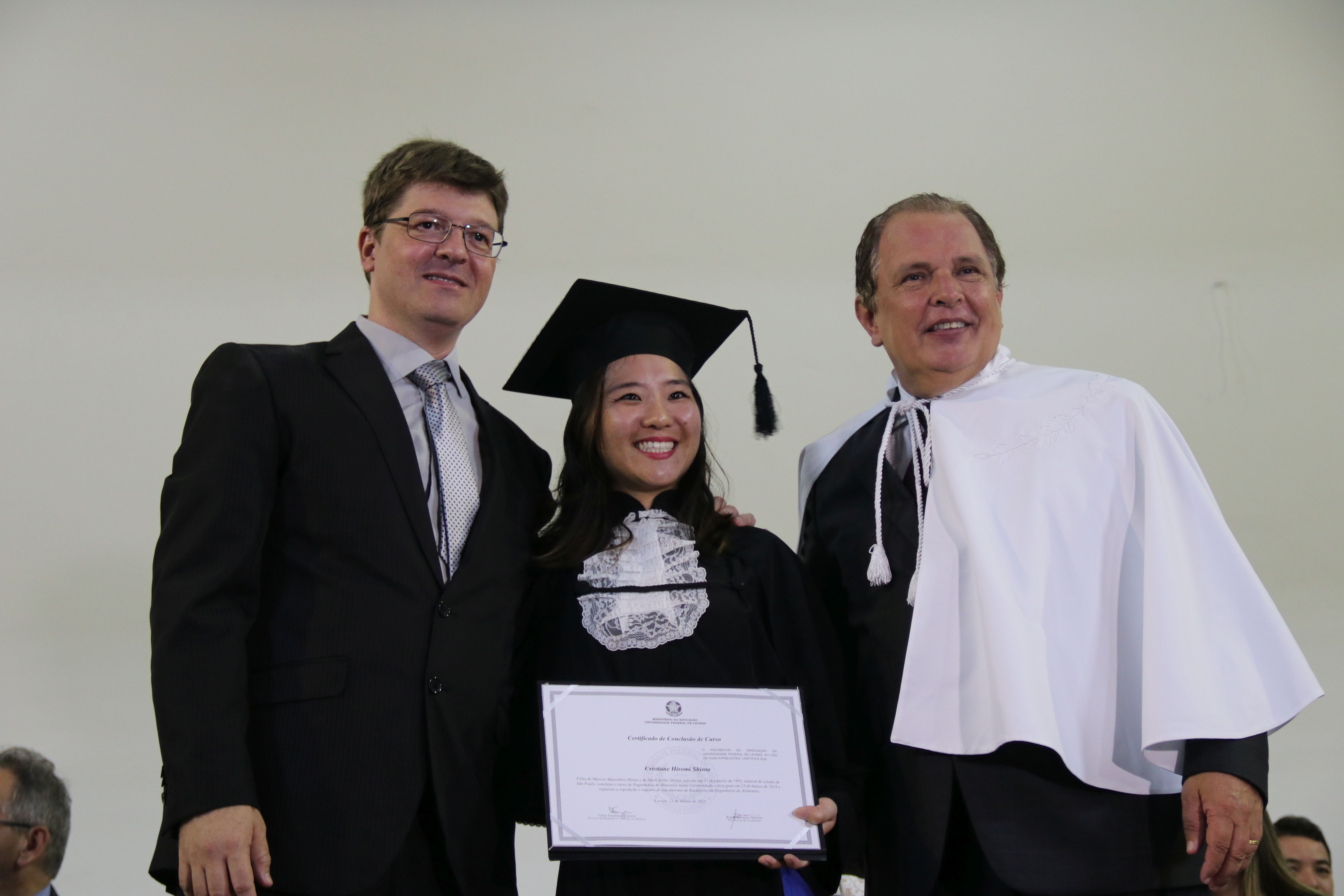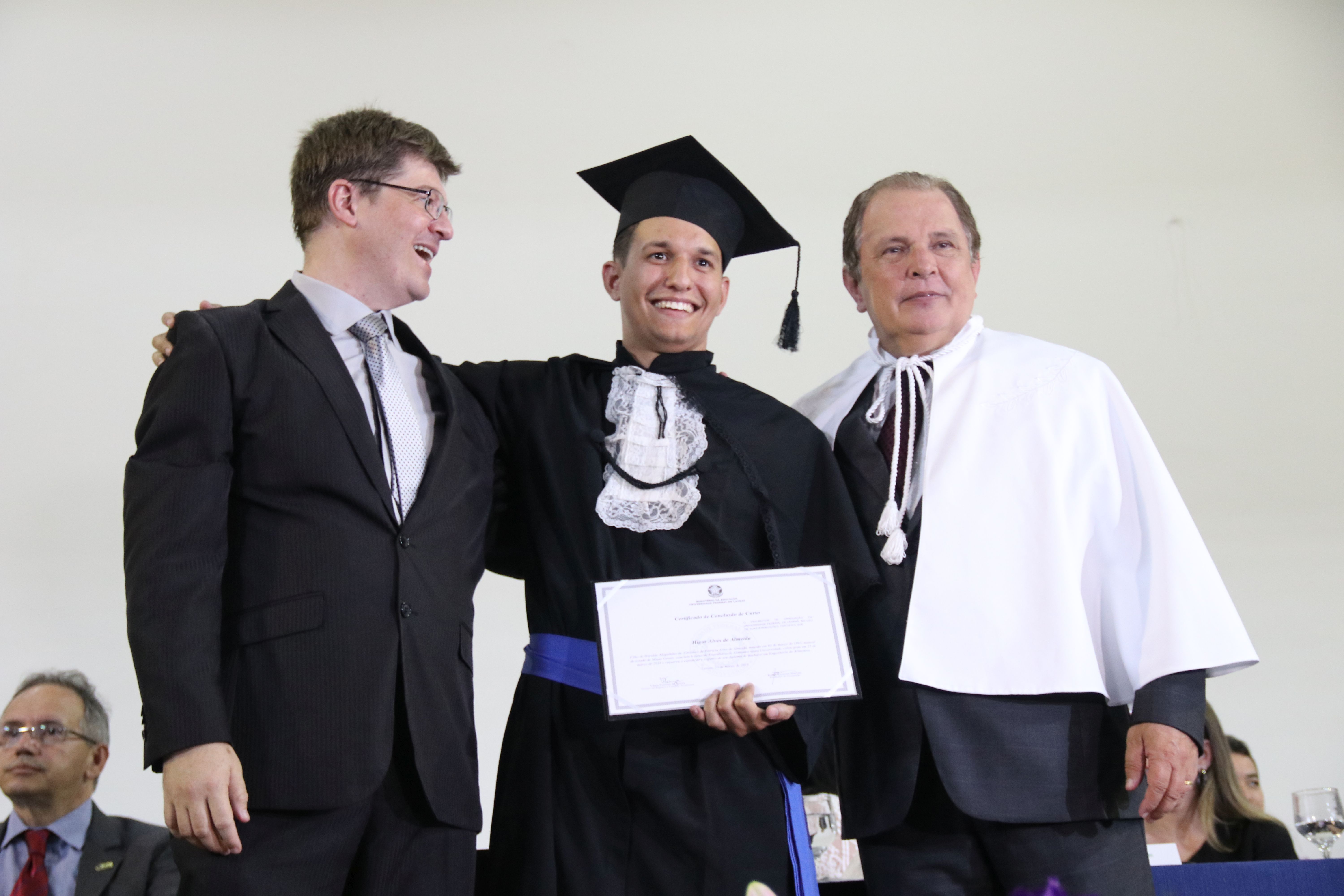 As solenidades foram presididas pelo reitor e presidente do CUNI, professor José Roberto Soares Scolforo. Após fazer referência à tradução das cerimônias na Língua Brasileira de Sinais (Libras), manifestou orgulho pelo fato de a UFLA trabalhar primando pela inclusão e pelo respeito às diversidades. Para os formandos, reforçou a importância do juramento que fizeram, especialmente pelo compromisso com a ética, a justiça e a defesa da liberdade e da paz. “Vocês tiveram a felicidade de se formar sob o investimento do povo brasileiro. Por isso devem se empenhar em cumprir esses compromissos carregados de valores que são hoje tão necessários à sociedade brasileira”. Scolforo também incentivou os novos profissionais a seguirem em frente: “vençam o medo deste momento posterior à conclusão do curso e lutem, busquem alcançar seus sonhos, sejam cidadãos de valor, pratiquem solidariedade e continuem a caminhada com garra e persistência, sempre respeitando as diferenças”.