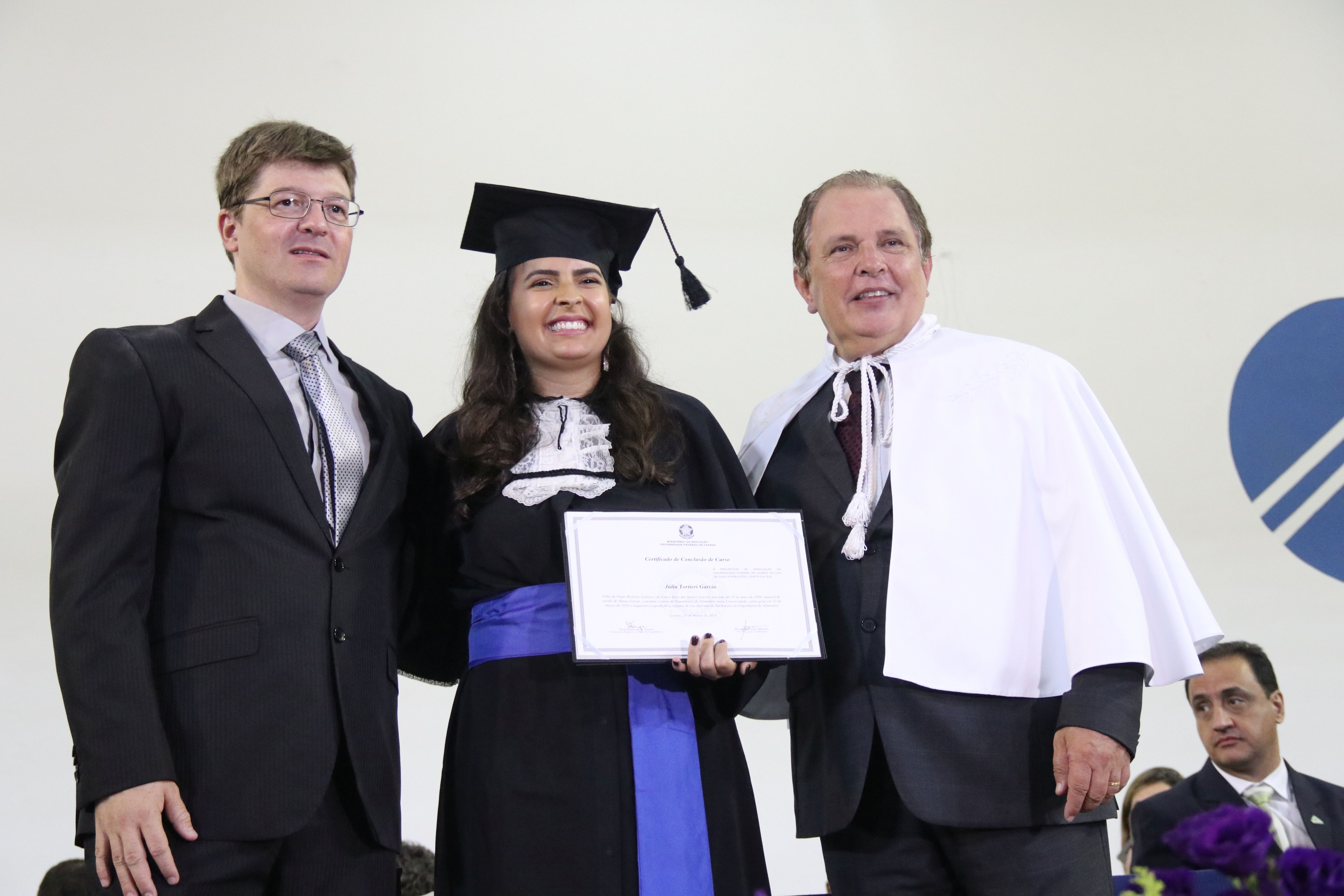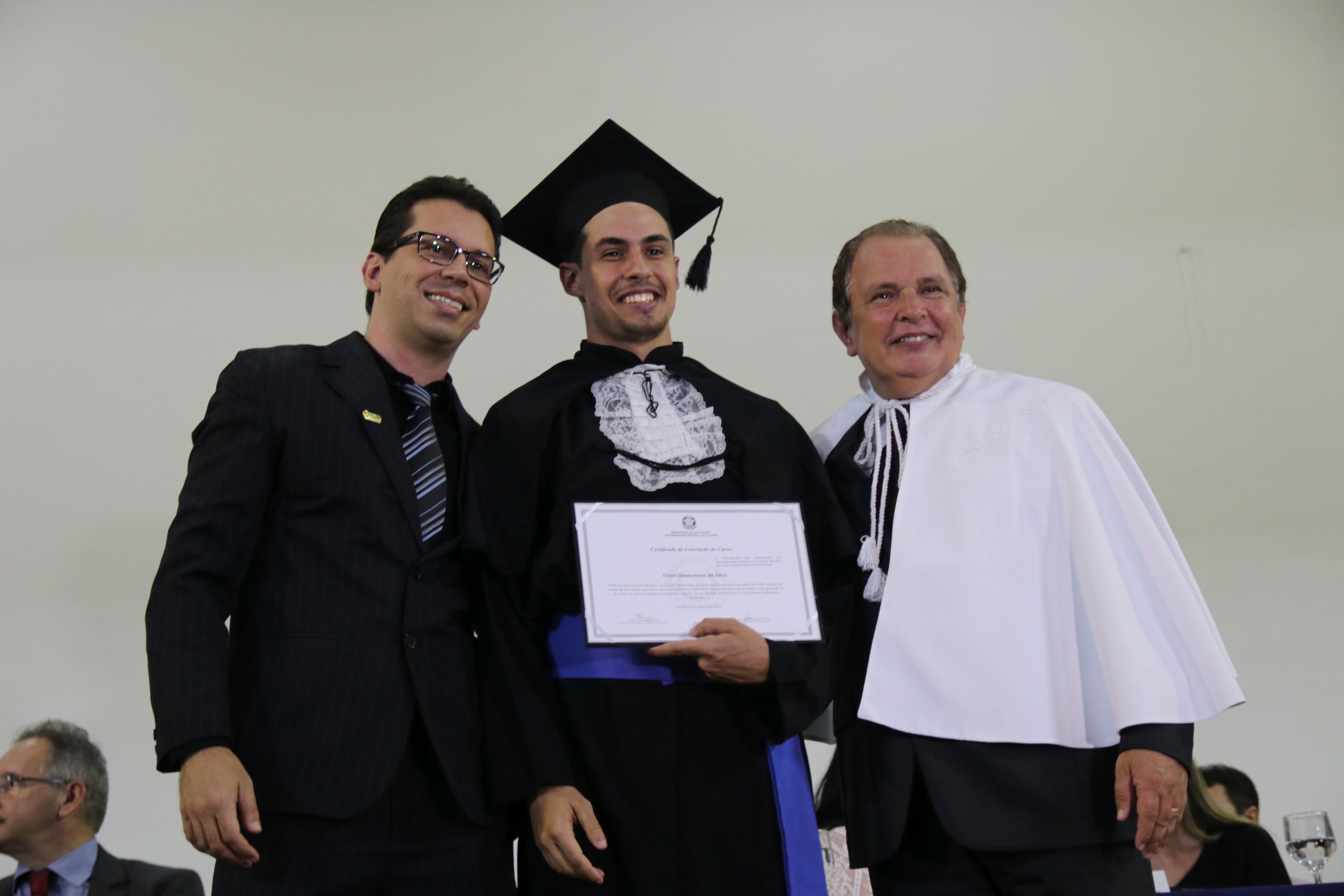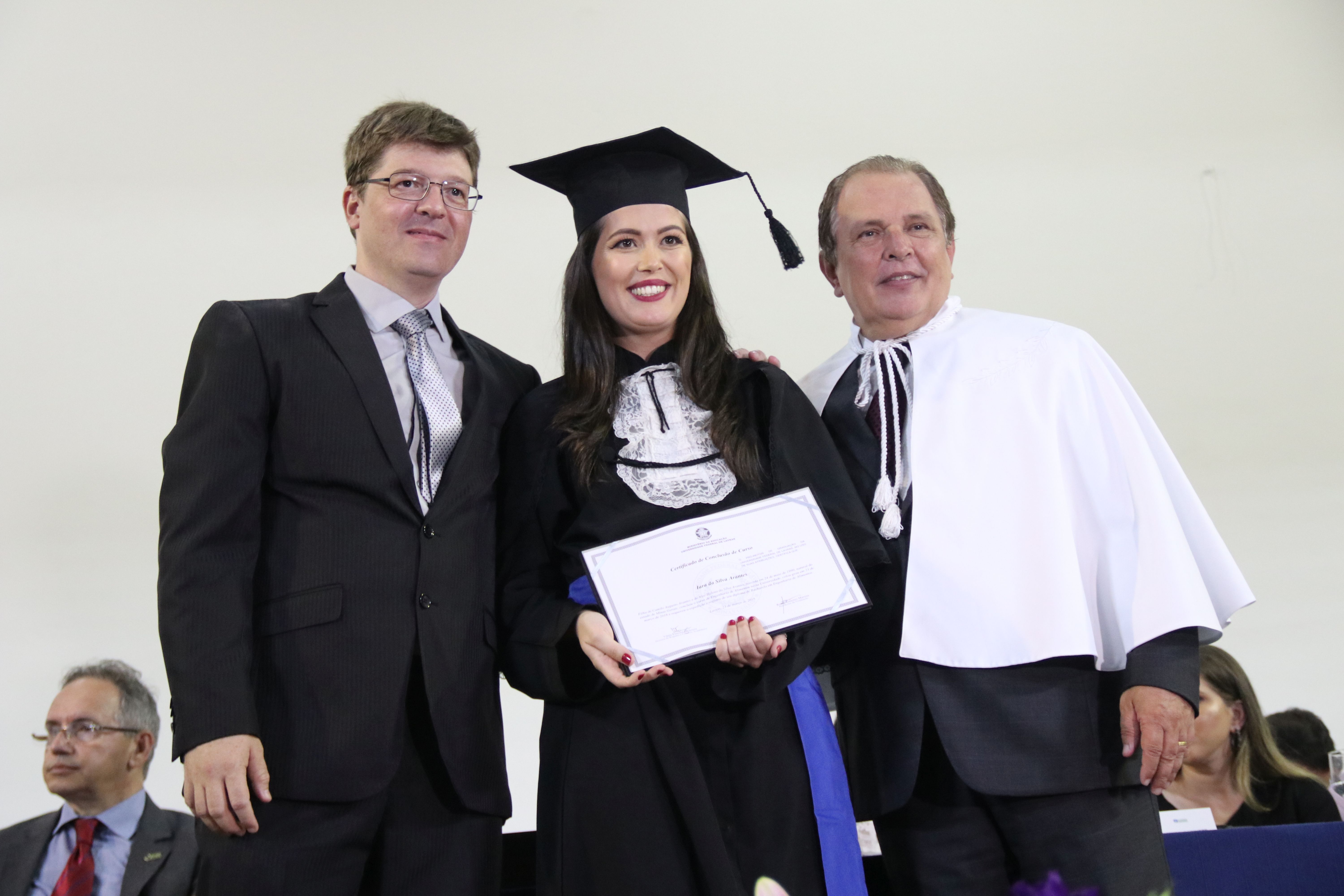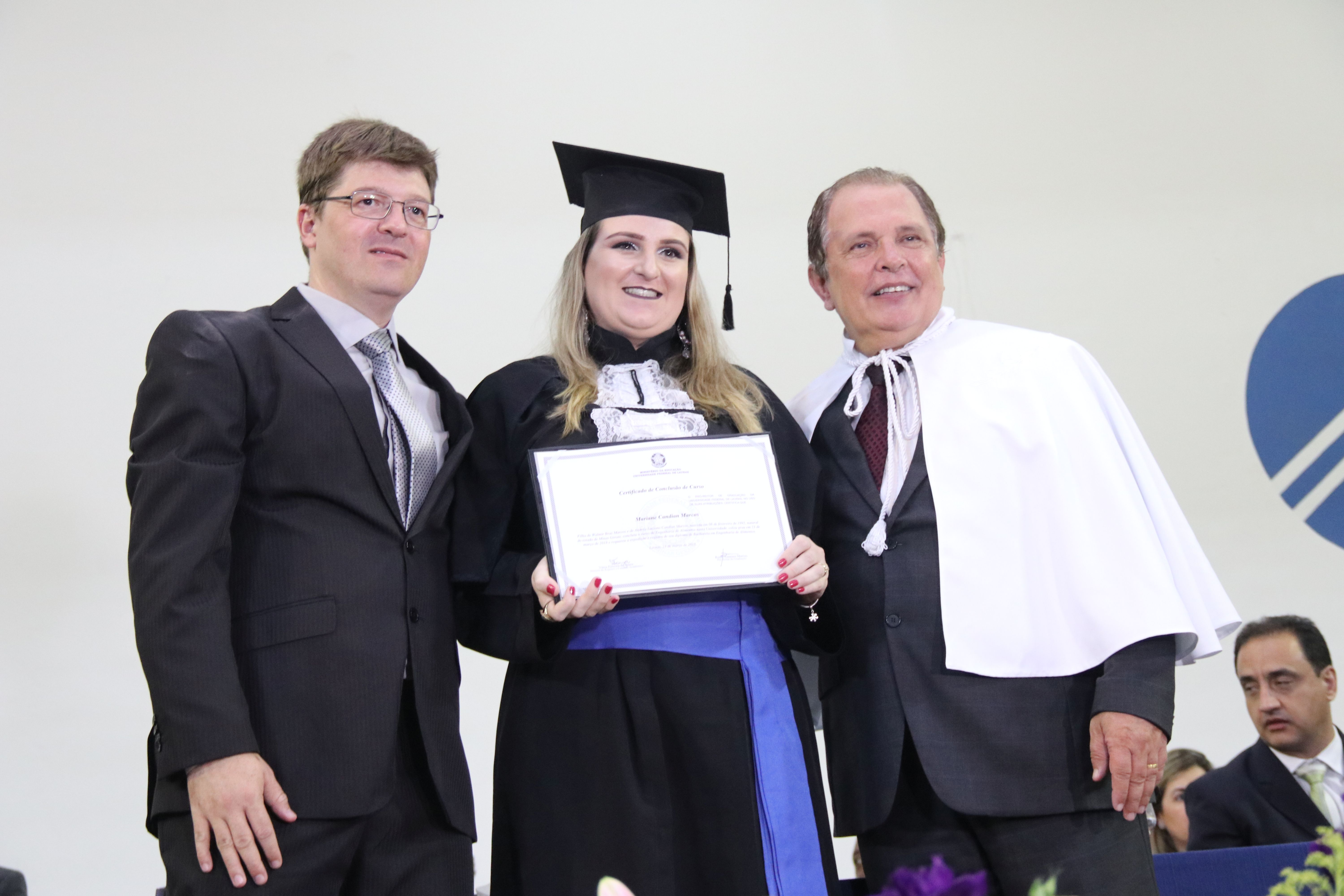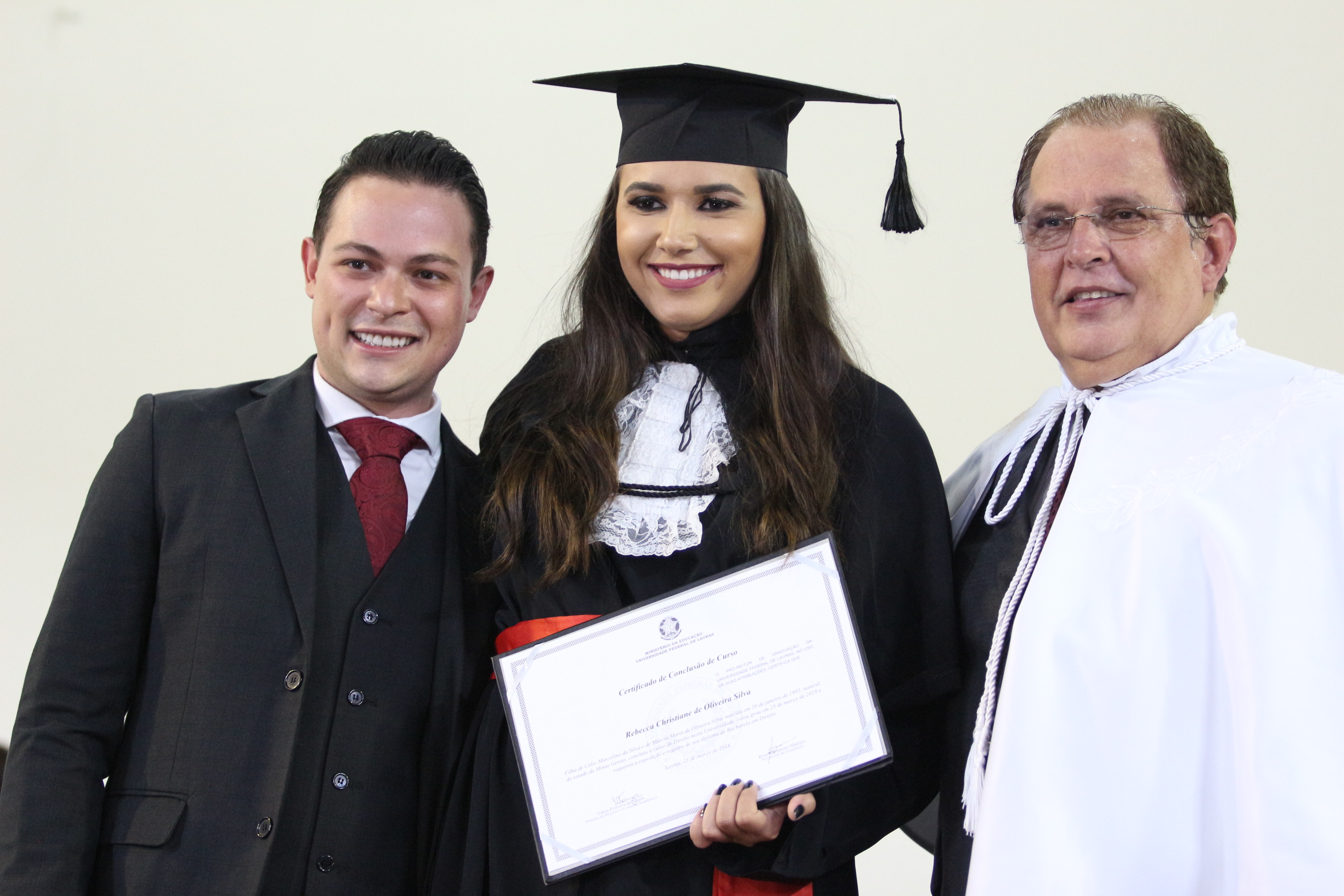 As solenidades foram presididas pelo reitor e presidente do CUNI, professor José Roberto Soares Scolforo. Após fazer referência à tradução das cerimônias na Língua Brasileira de Sinais (Libras), manifestou orgulho pelo fato de a UFLA trabalhar primando pela inclusão e pelo respeito às diversidades. Para os formandos, reforçou a importância do juramento que fizeram, especialmente pelo compromisso com a ética, a justiça e a defesa da liberdade e da paz. “Vocês tiveram a felicidade de se formar sob o investimento do povo brasileiro. Por isso devem se empenhar em cumprir esses compromissos carregados de valores que são hoje tão necessários à sociedade brasileira”. Scolforo também incentivou os novos profissionais a seguirem em frente: “vençam o medo deste momento posterior à conclusão do curso e lutem, busquem alcançar seus sonhos, sejam cidadãos de valor, pratiquem solidariedade e continuem a caminhada com garra e persistência, sempre respeitando as diferenças”.
