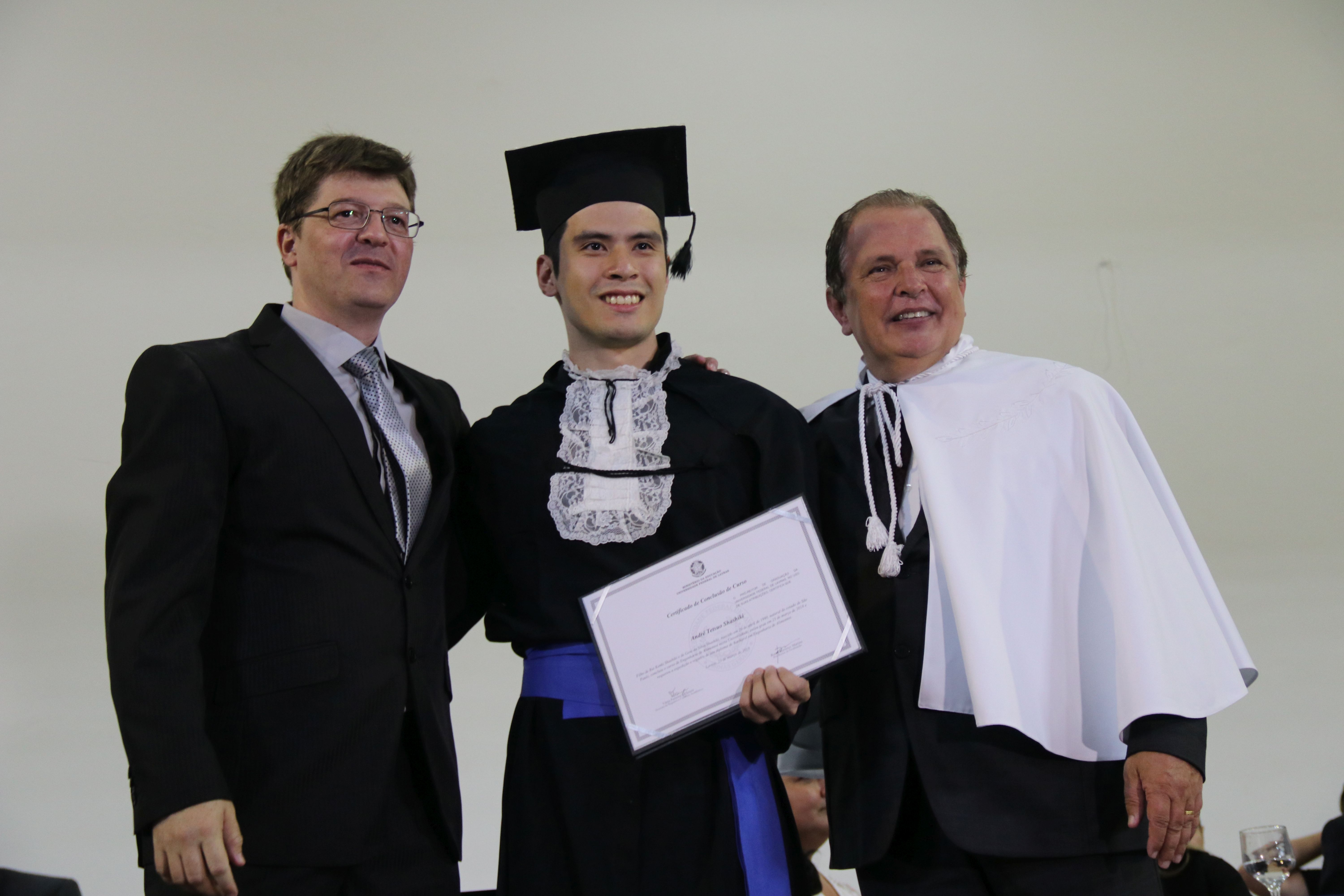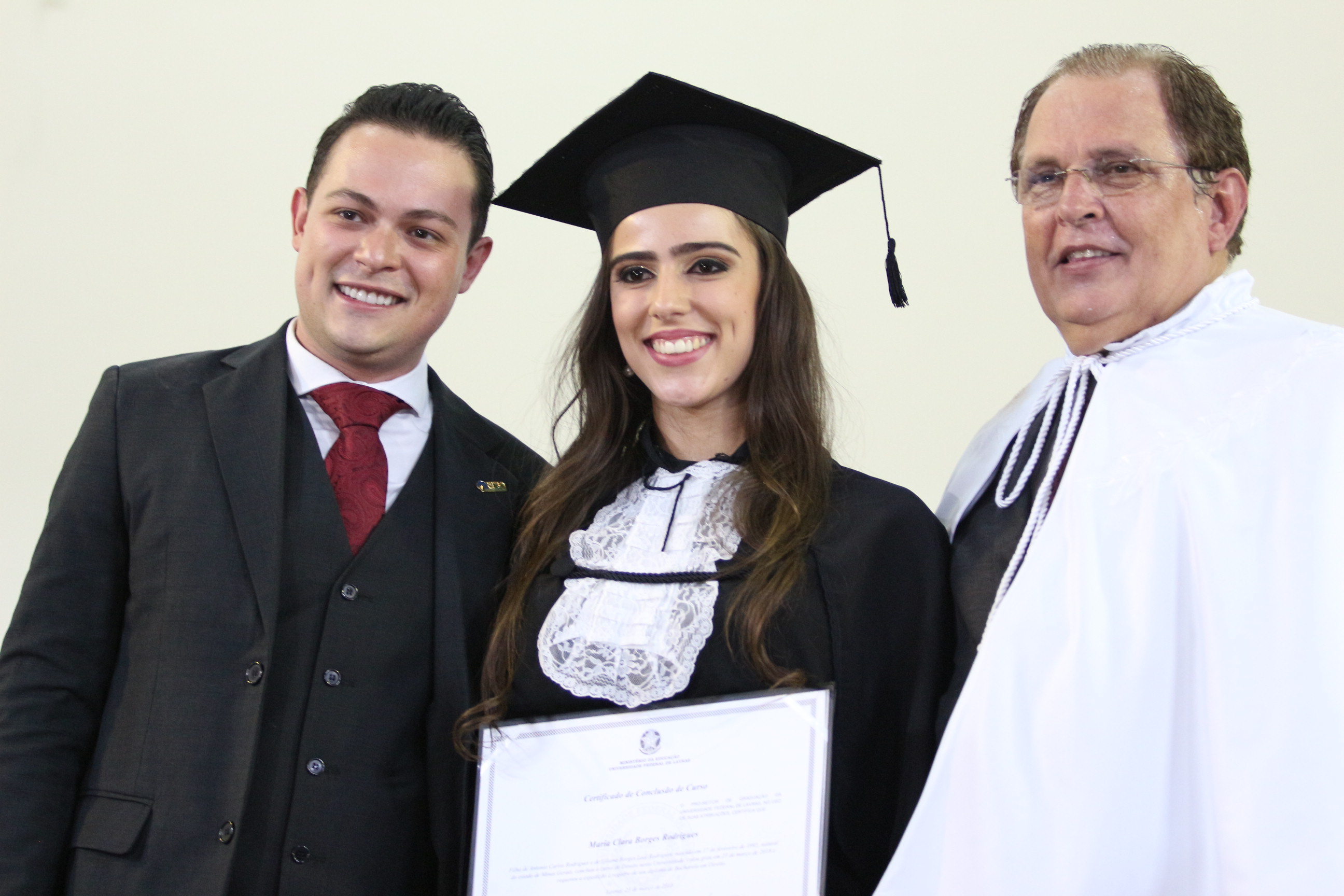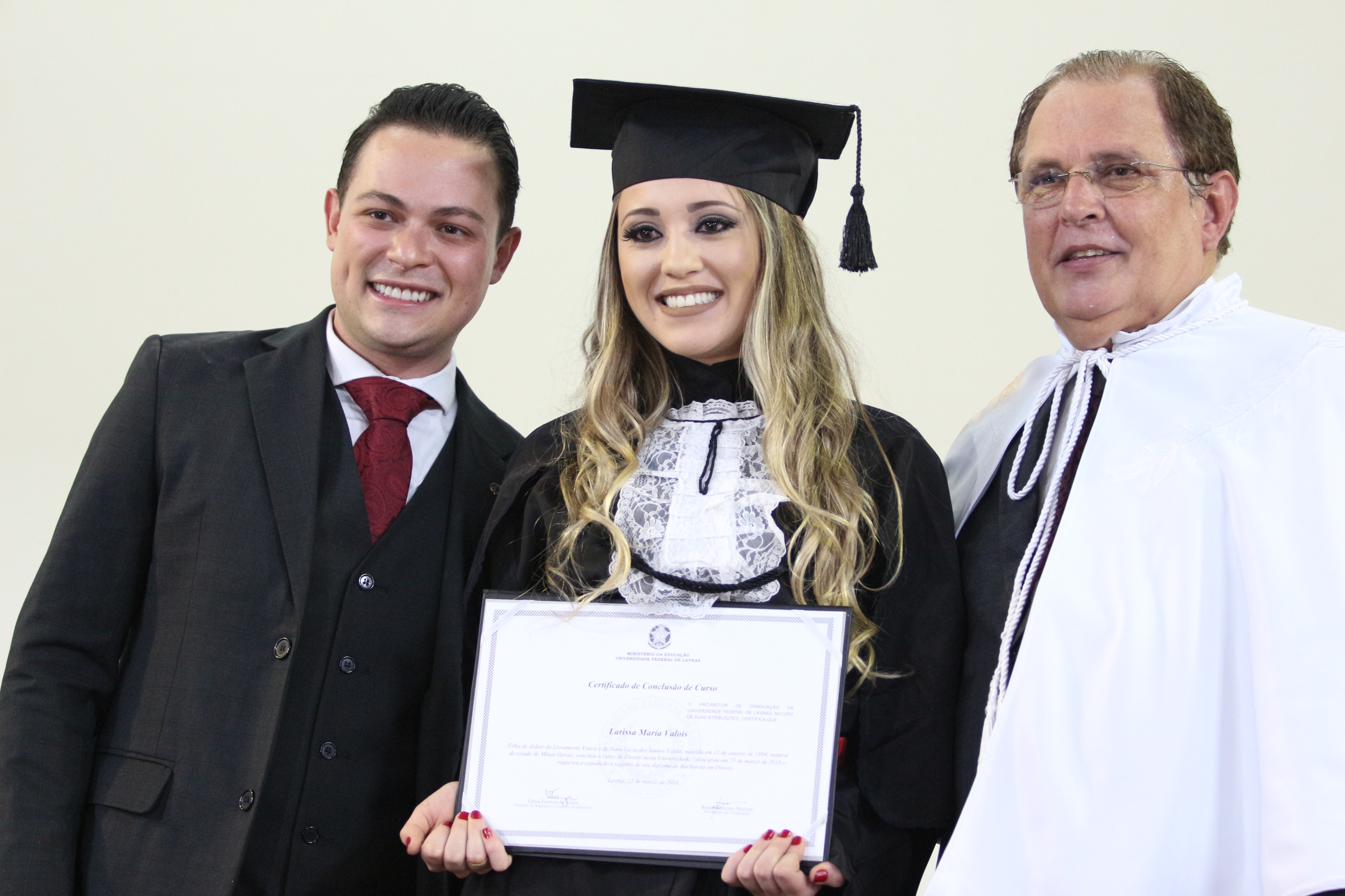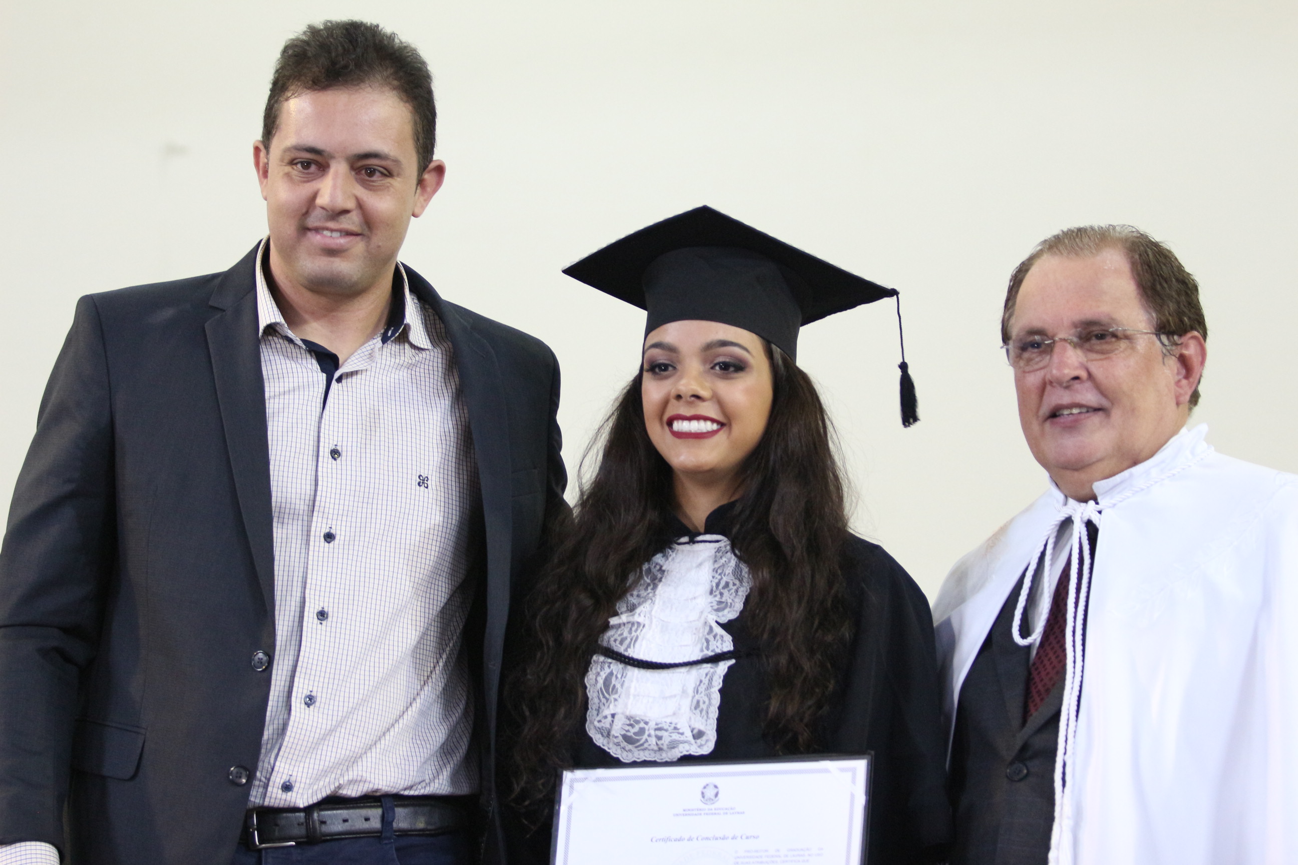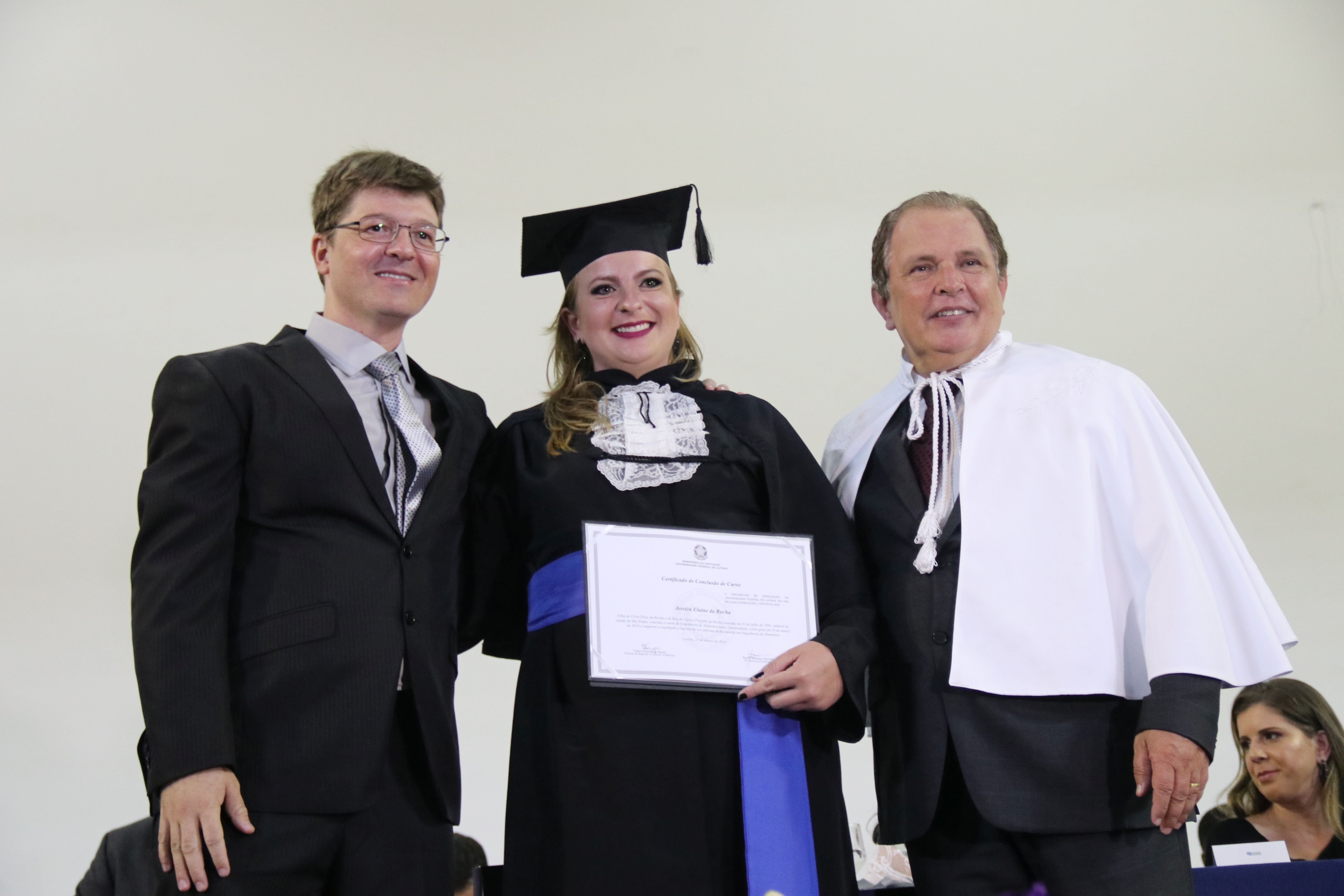 As solenidades foram presididas pelo reitor e presidente do CUNI, professor José Roberto Soares Scolforo. Após fazer referência à tradução das cerimônias na Língua Brasileira de Sinais (Libras), manifestou orgulho pelo fato de a UFLA trabalhar primando pela inclusão e pelo respeito às diversidades. Para os formandos, reforçou a importância do juramento que fizeram, especialmente pelo compromisso com a ética, a justiça e a defesa da liberdade e da paz. “Vocês tiveram a felicidade de se formar sob o investimento do povo brasileiro. Por isso devem se empenhar em cumprir esses compromissos carregados de valores que são hoje tão necessários à sociedade brasileira”. Scolforo também incentivou os novos profissionais a seguirem em frente: “vençam o medo deste momento posterior à conclusão do curso e lutem, busquem alcançar seus sonhos, sejam cidadãos de valor, pratiquem solidariedade e continuem a caminhada com garra e persistência, sempre respeitando as diferenças”.