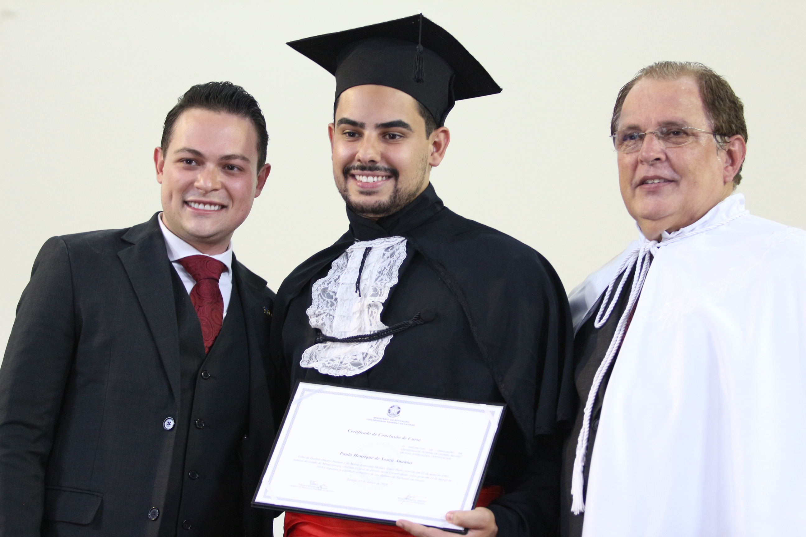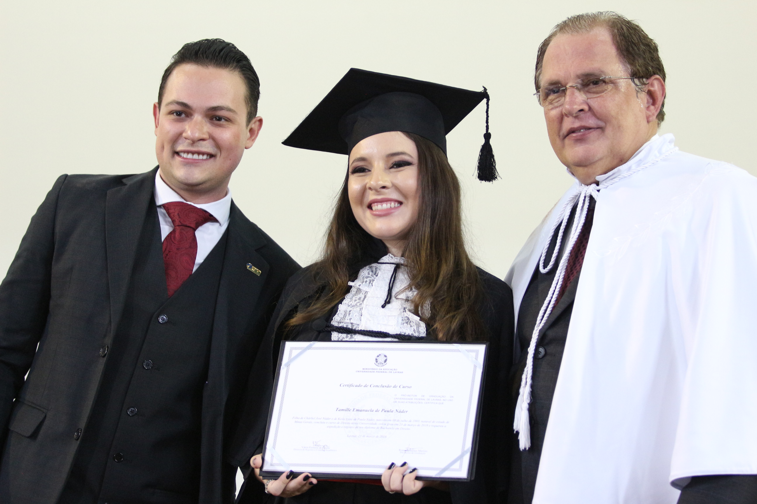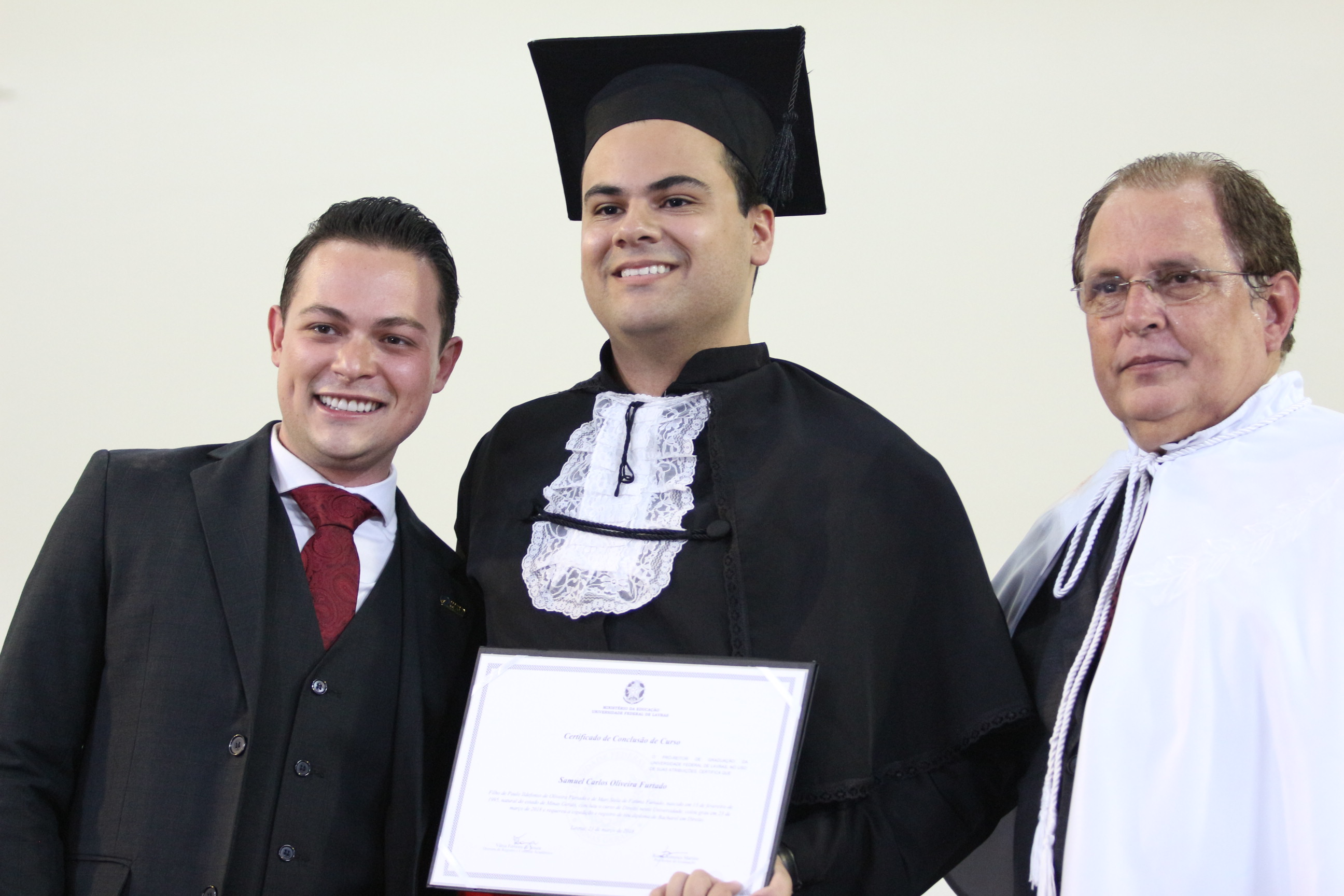 Formado em Direito, Samuel Furtado disse não ter como expressar todos os sentimentos desse momento. “Levo comigo um sentimento de gratidão à UFLA e de saudade; sentirei saudades dos colegas, dos professores, do curso, de todos aqueles que fizeram parte dessa história”. Samuel, enquanto graduando, aproveitou ao máximo todas as oportunidades oferecidas pela estrutura universitária – participou do Programa de Aprendizado Técnico do Programa Institucional de Bolsas (Proat/PIBUFLA), de dois projetos de iniciação científica, de projeto de extensão, de monitoria e de empresa júnior. “Essa diversidade complementar à formação foi muito importante para a consolidação do meu conhecimento pessoal e profissional”, avalia.