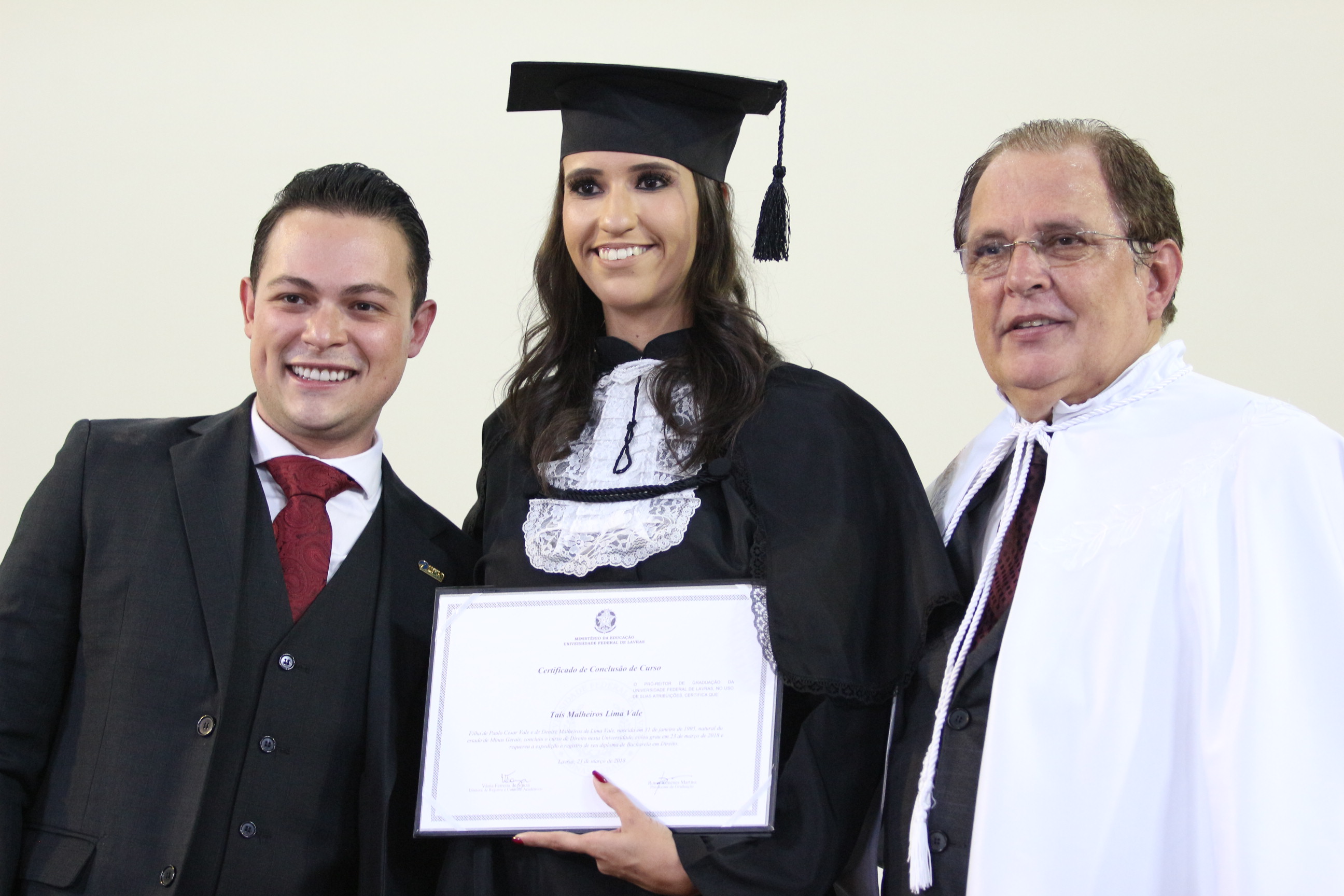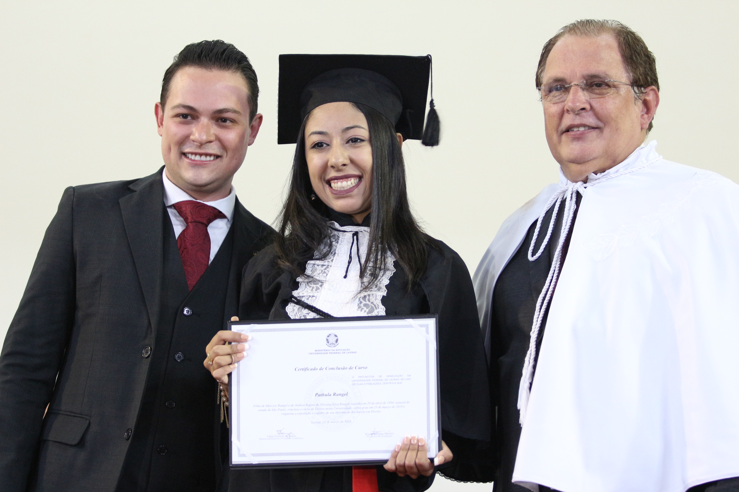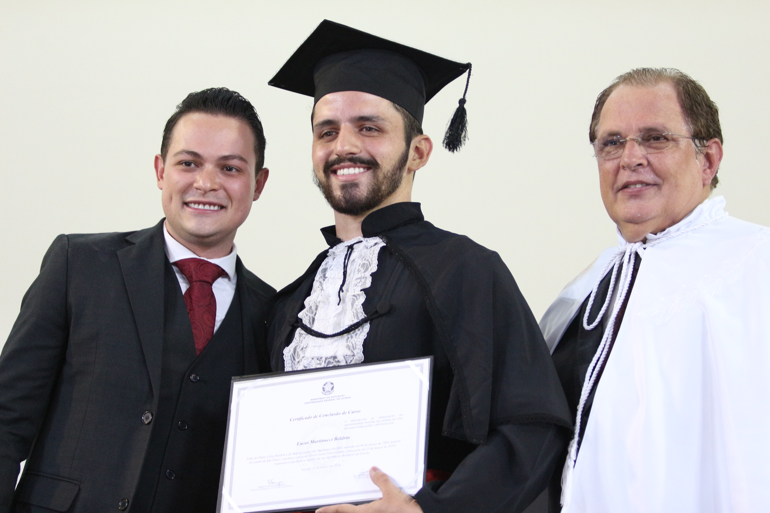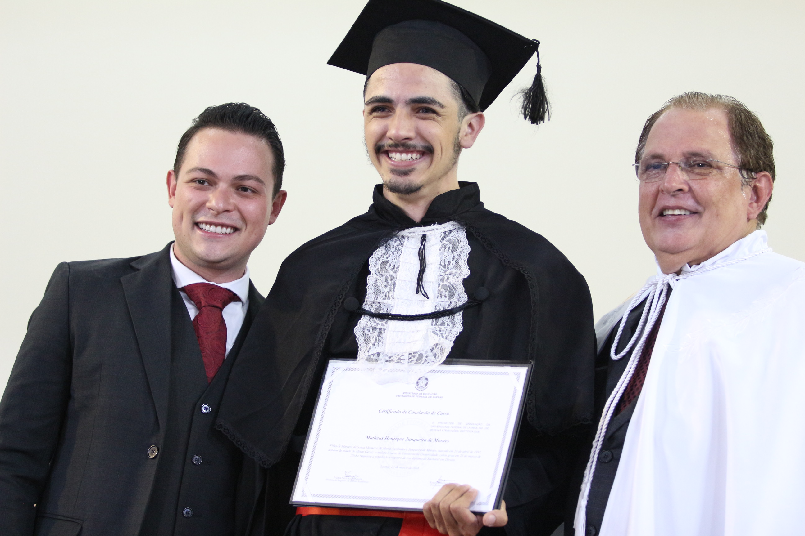 Formado em Direito, Samuel Furtado disse não ter como expressar todos os sentimentos desse momento. “Levo comigo um sentimento de gratidão à UFLA e de saudade; sentirei saudades dos colegas, dos professores, do curso, de todos aqueles que fizeram parte dessa história”. Samuel, enquanto graduando, aproveitou ao máximo todas as oportunidades oferecidas pela estrutura universitária – participou do Programa de Aprendizado Técnico do Programa Institucional de Bolsas (Proat/PIBUFLA), de dois projetos de iniciação científica, de projeto de extensão, de monitoria e de empresa júnior. “Essa diversidade complementar à formação foi muito importante para a consolidação do meu conhecimento pessoal e profissional”, avalia.