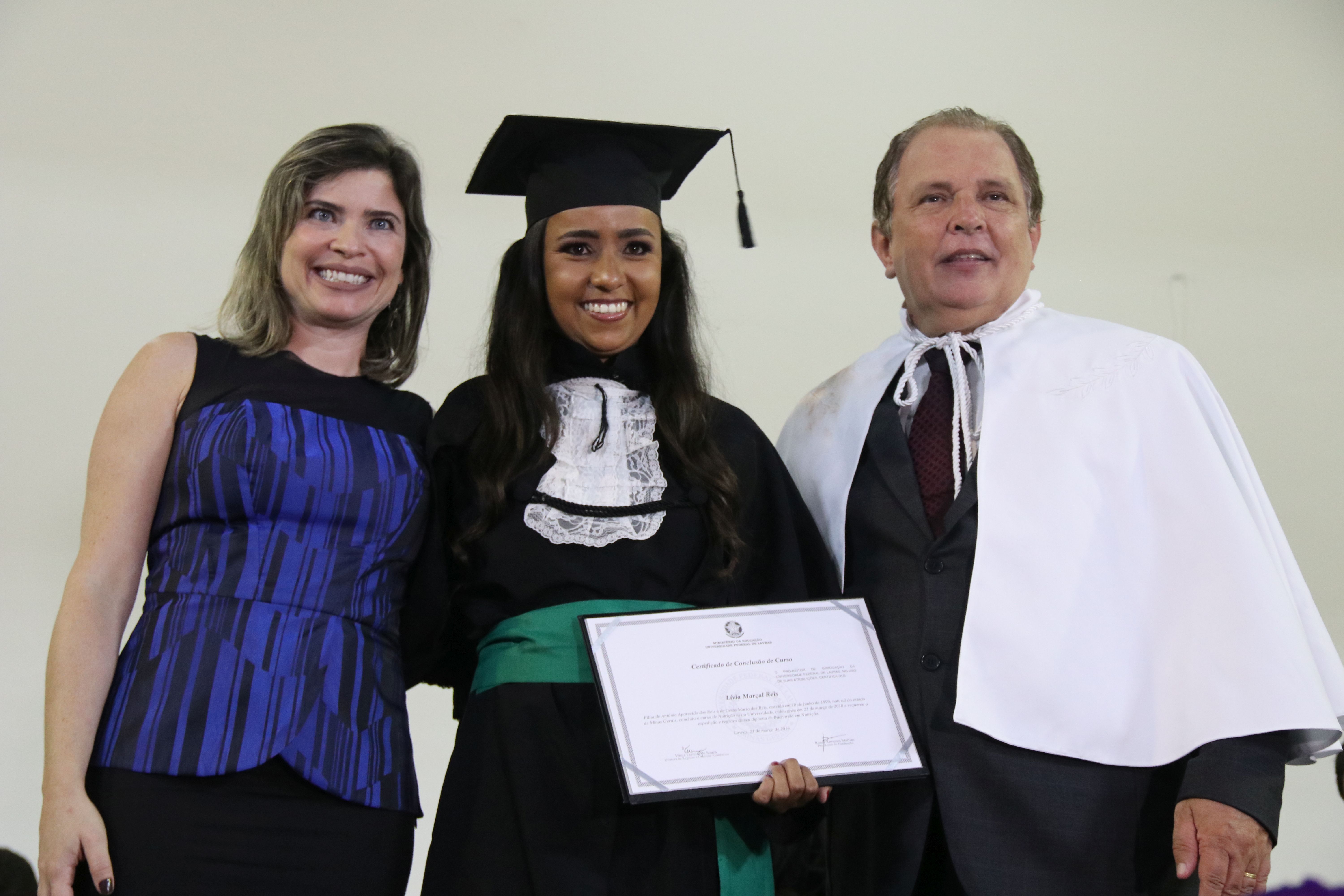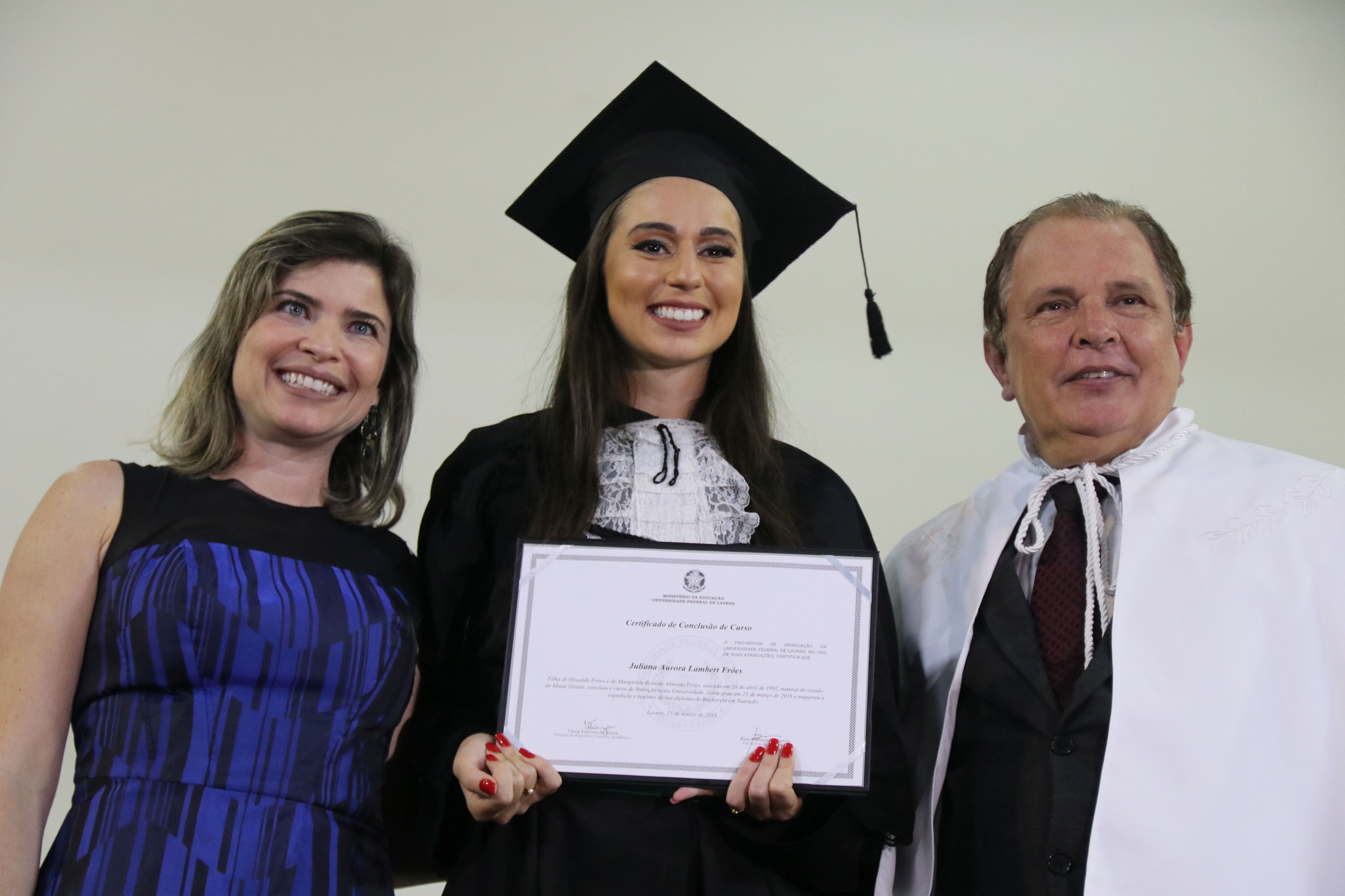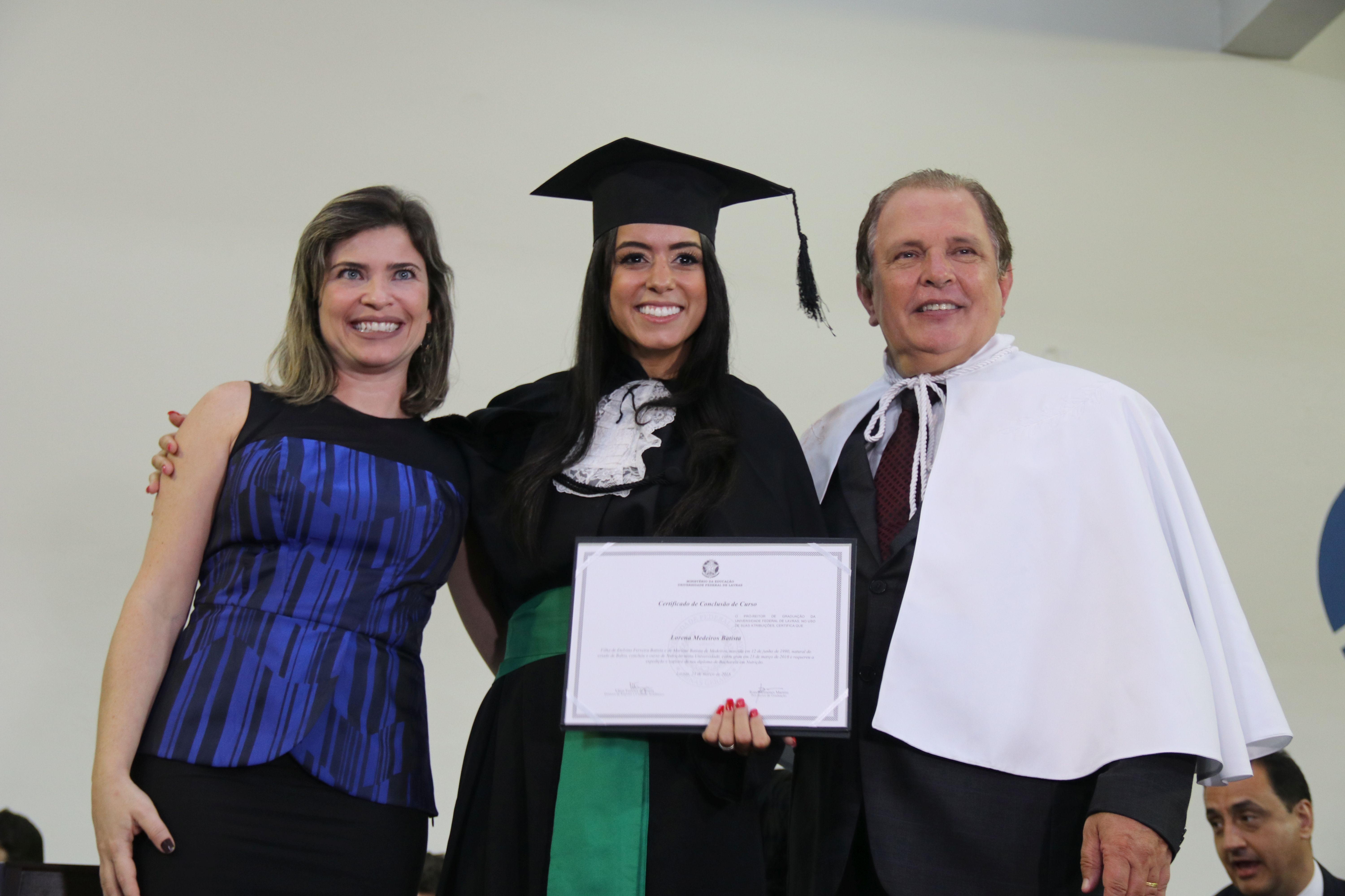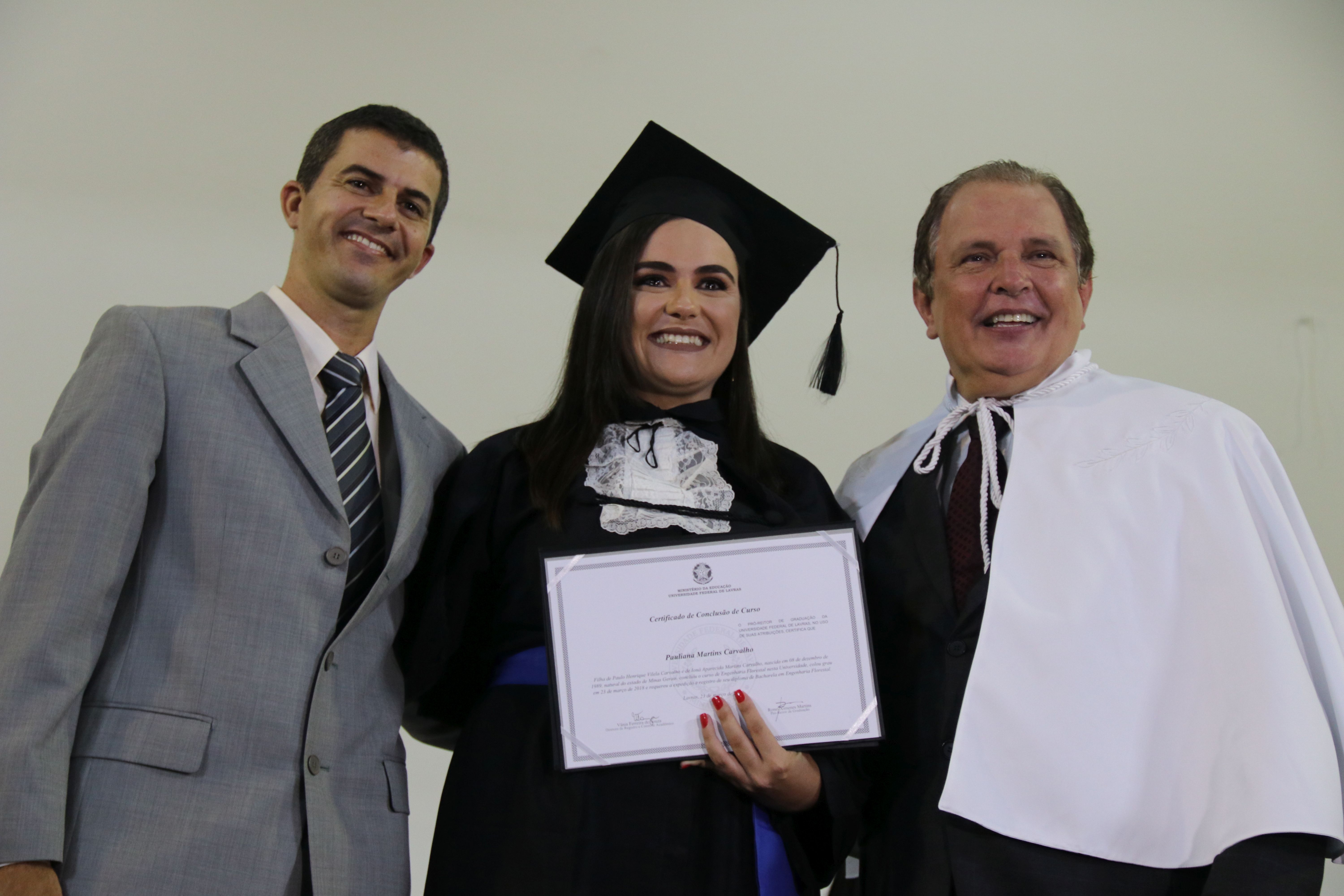 As solenidades foram presididas pelo reitor e presidente do CUNI, professor José Roberto Soares Scolforo. Após fazer referência à tradução das cerimônias na Língua Brasileira de Sinais (Libras), manifestou orgulho pelo fato de a UFLA trabalhar primando pela inclusão e pelo respeito às diversidades. Para os formandos, reforçou a importância do juramento que fizeram, especialmente pelo compromisso com a ética, a justiça e a defesa da liberdade e da paz. “Vocês tiveram a felicidade de se formar sob o investimento do povo brasileiro. Por isso devem se empenhar em cumprir esses compromissos carregados de valores que são hoje tão necessários à sociedade brasileira”. Scolforo também incentivou os novos profissionais a seguirem em frente: “vençam o medo deste momento posterior à conclusão do curso e lutem, busquem alcançar seus sonhos, sejam cidadãos de valor, pratiquem solidariedade e continuem a caminhada com garra e persistência, sempre respeitando as diferenças”.