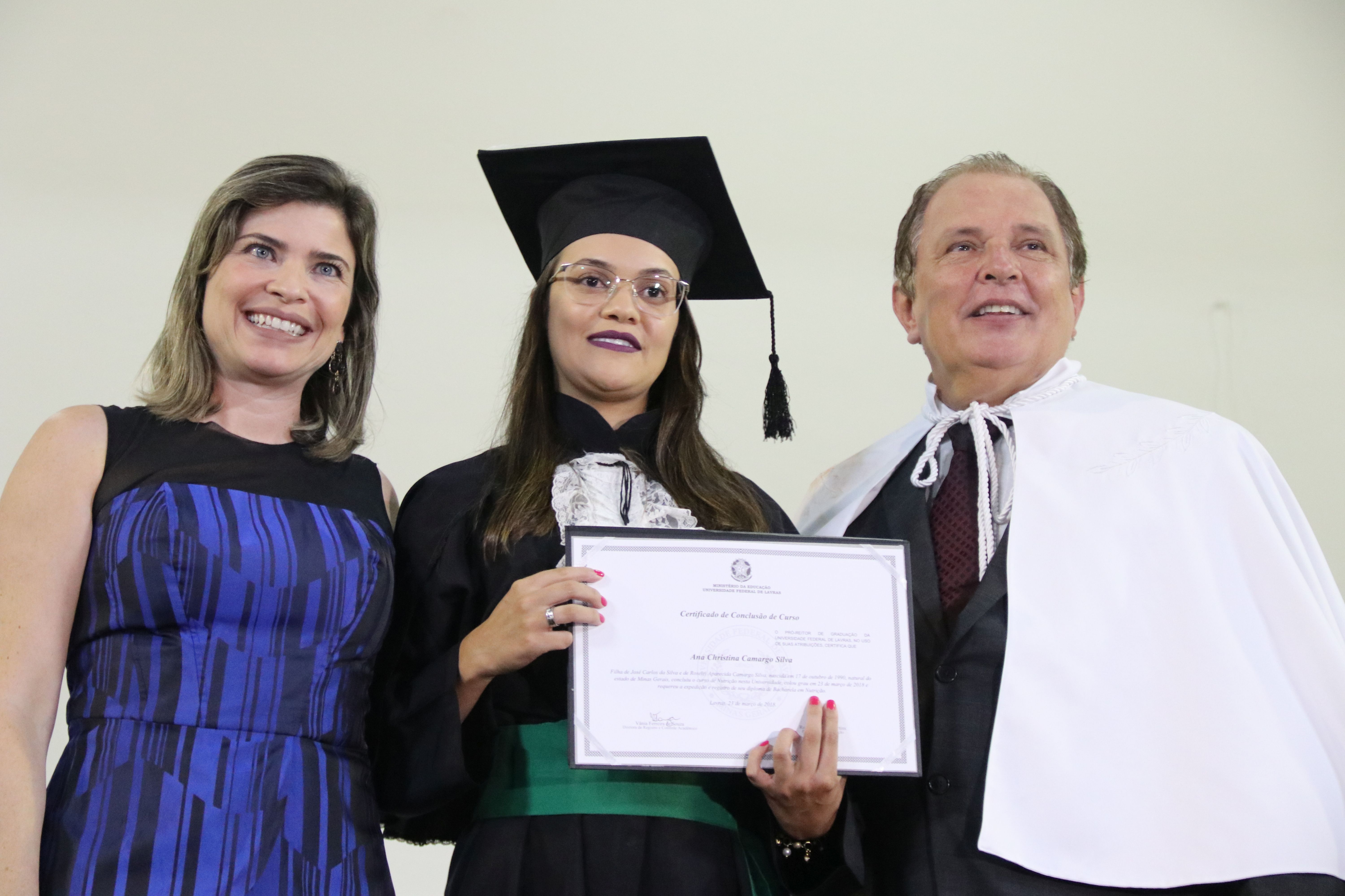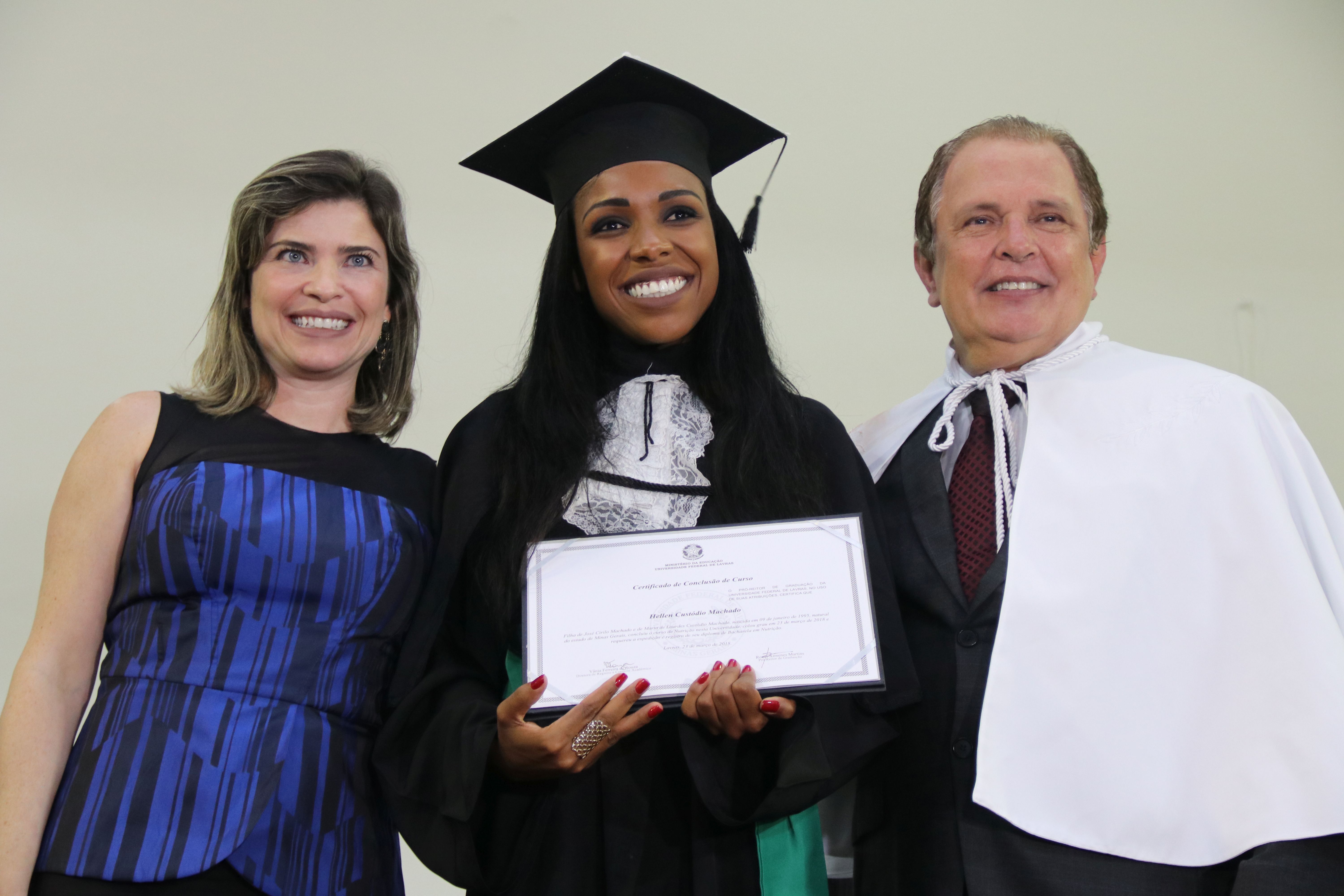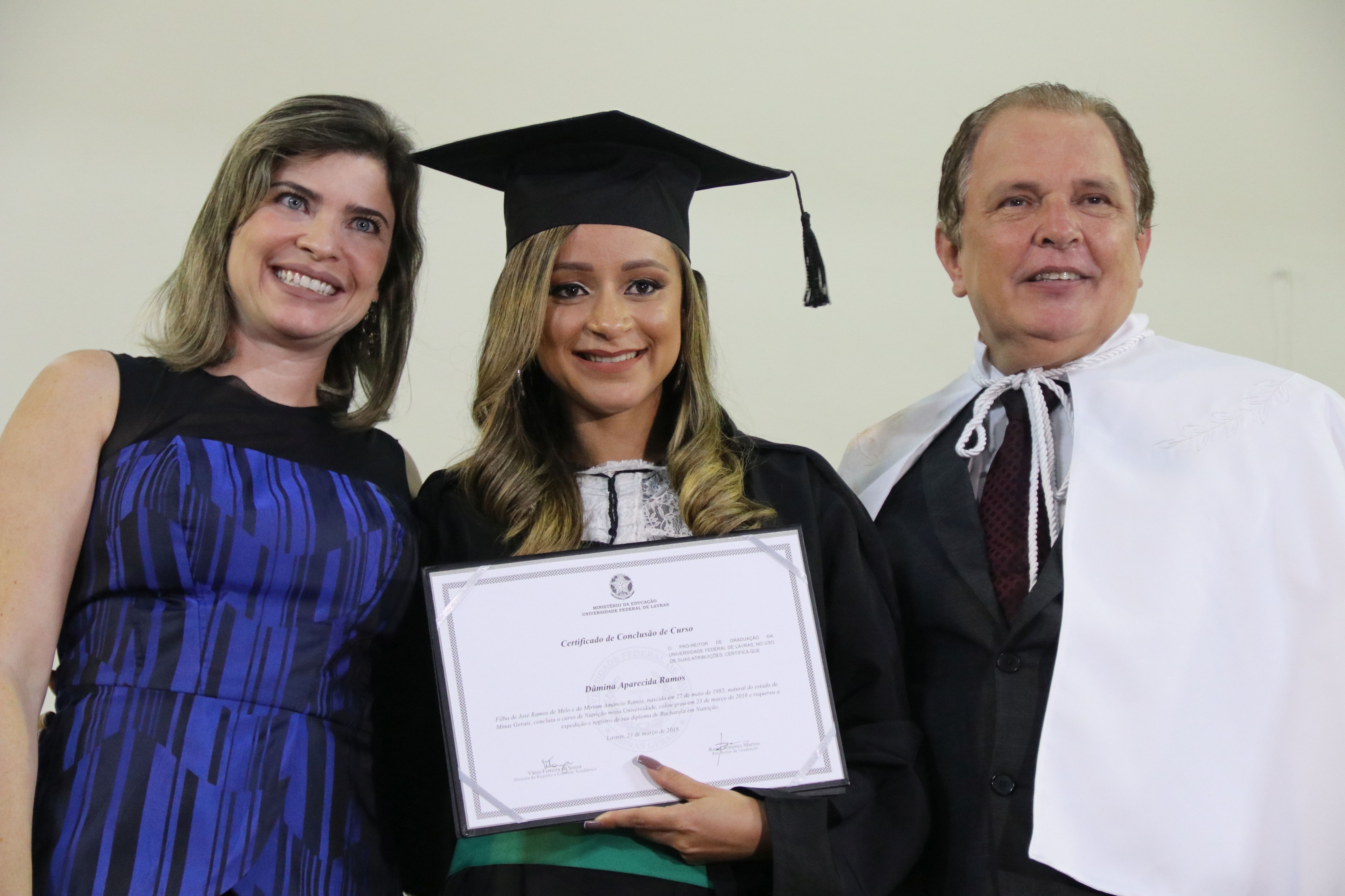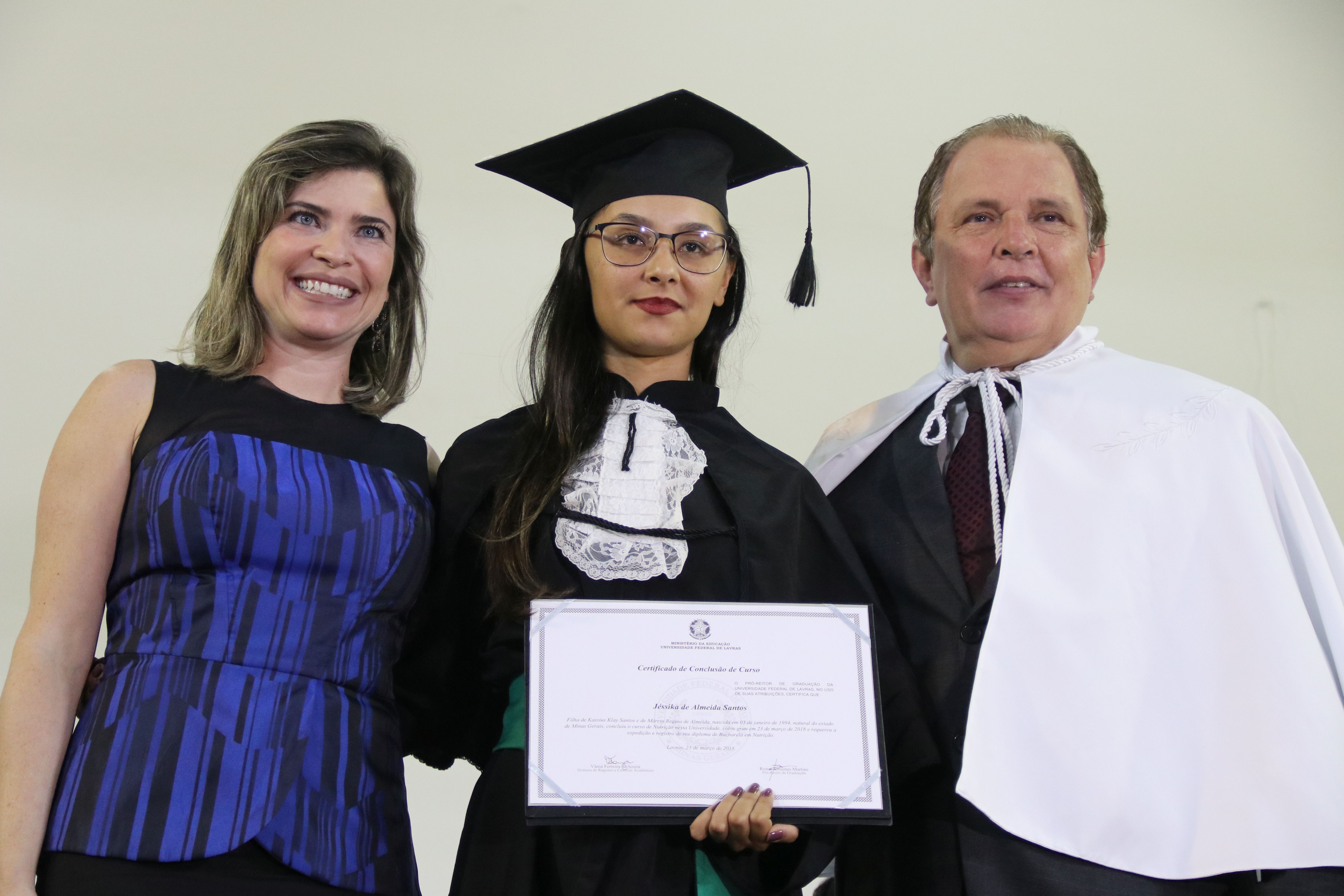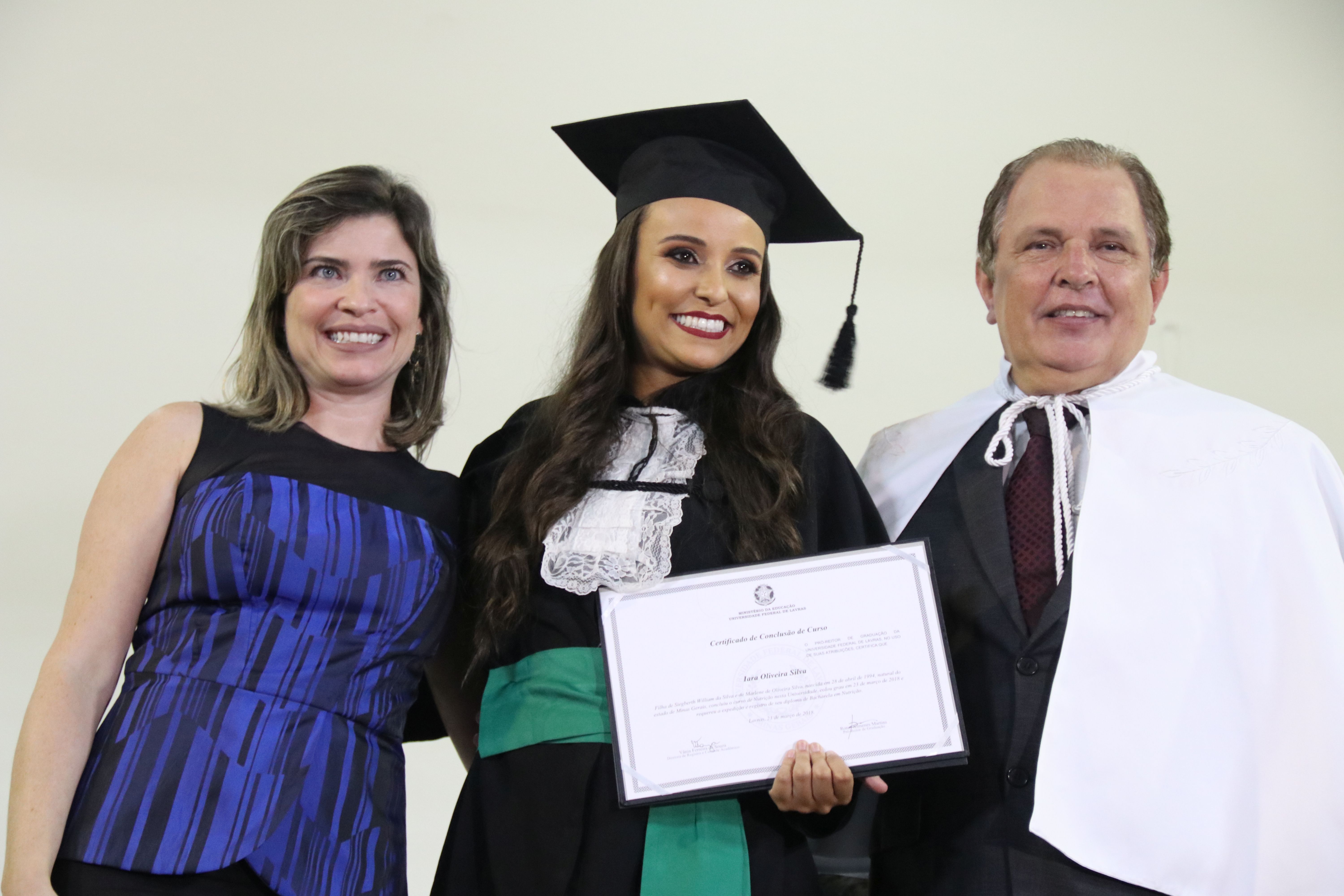 As solenidades foram presididas pelo reitor e presidente do CUNI, professor José Roberto Soares Scolforo. Após fazer referência à tradução das cerimônias na Língua Brasileira de Sinais (Libras), manifestou orgulho pelo fato de a UFLA trabalhar primando pela inclusão e pelo respeito às diversidades. Para os formandos, reforçou a importância do juramento que fizeram, especialmente pelo compromisso com a ética, a justiça e a defesa da liberdade e da paz. “Vocês tiveram a felicidade de se formar sob o investimento do povo brasileiro. Por isso devem se empenhar em cumprir esses compromissos carregados de valores que são hoje tão necessários à sociedade brasileira”. Scolforo também incentivou os novos profissionais a seguirem em frente: “vençam o medo deste momento posterior à conclusão do curso e lutem, busquem alcançar seus sonhos, sejam cidadãos de valor, pratiquem solidariedade e continuem a caminhada com garra e persistência, sempre respeitando as diferenças”.