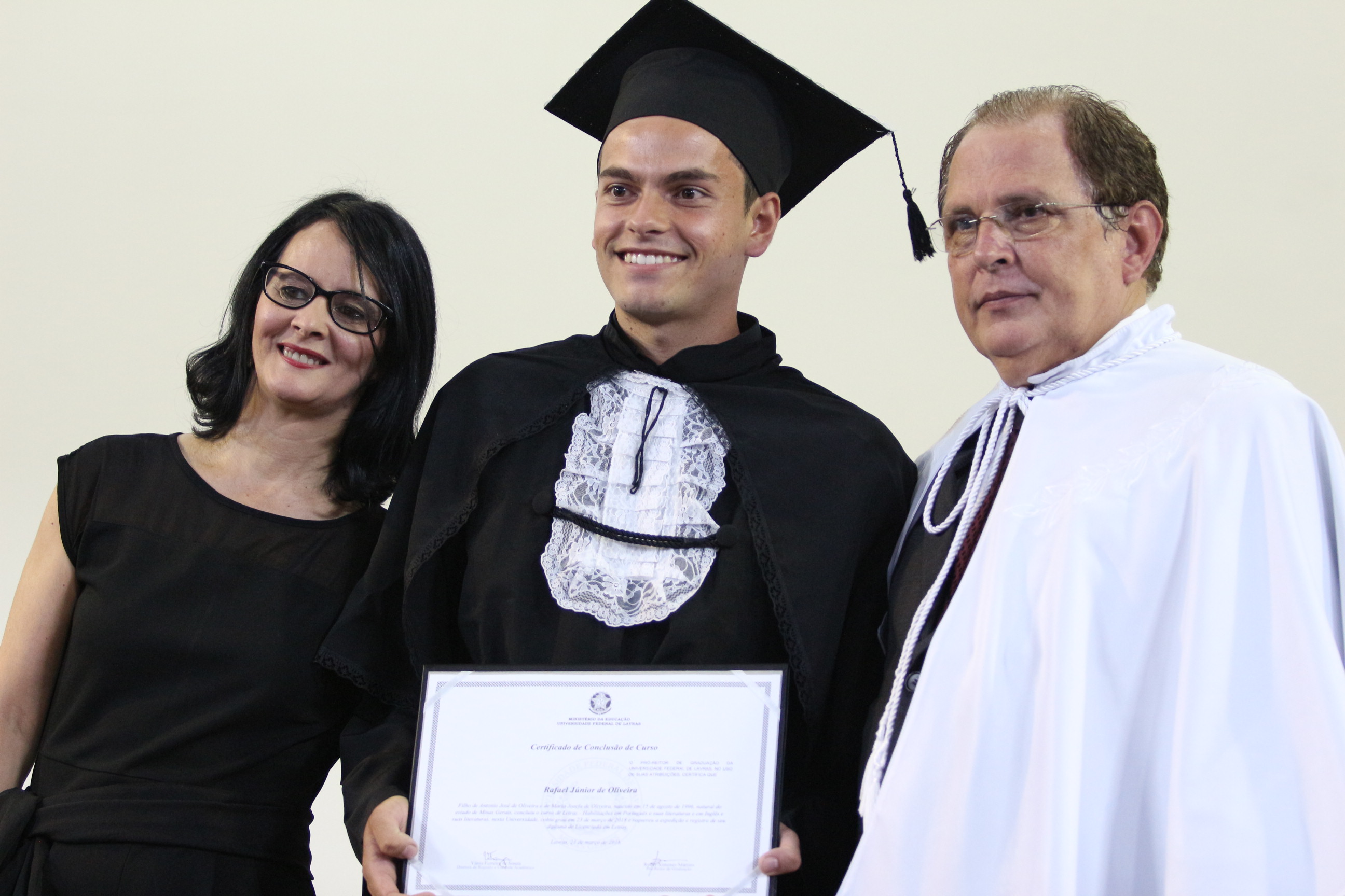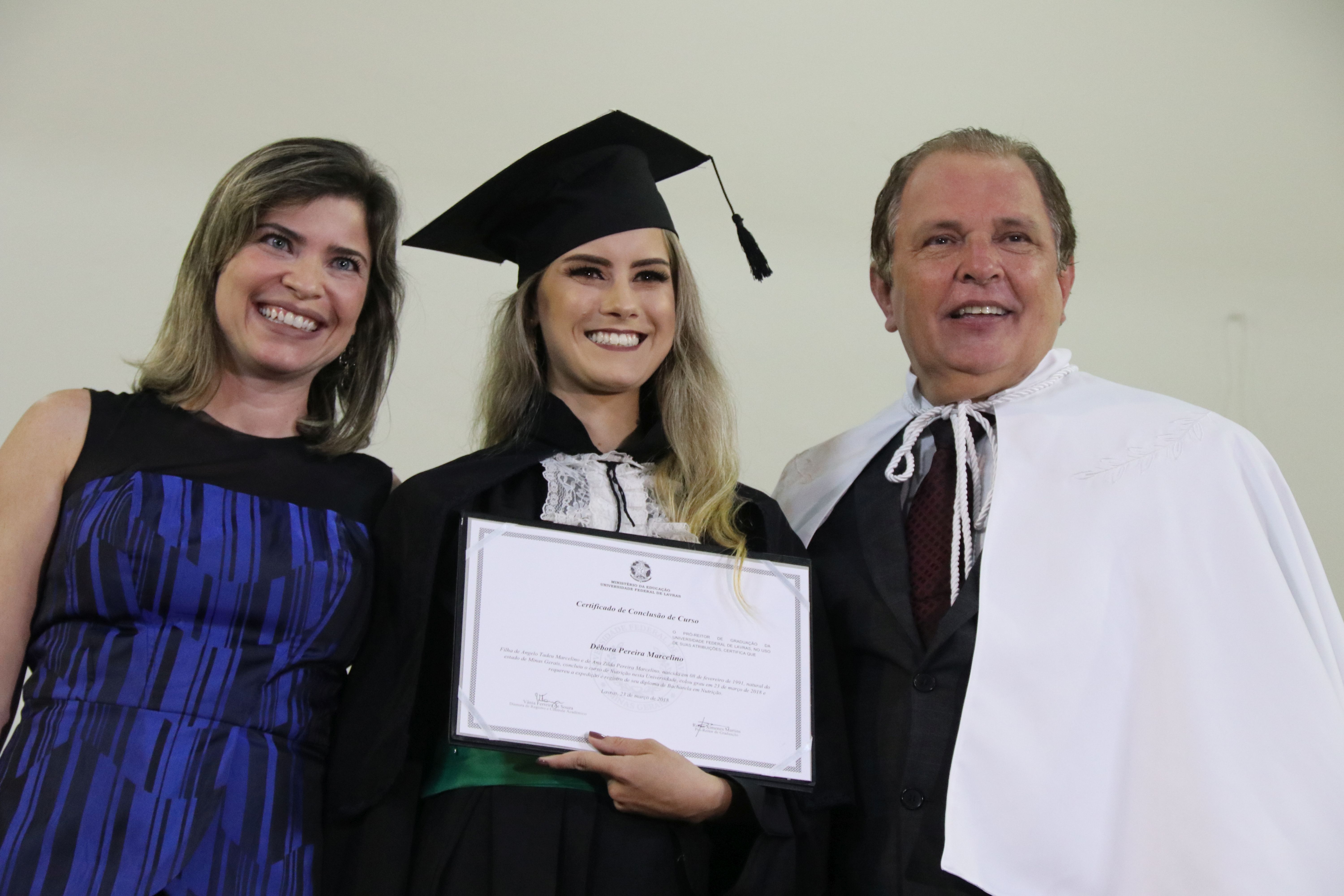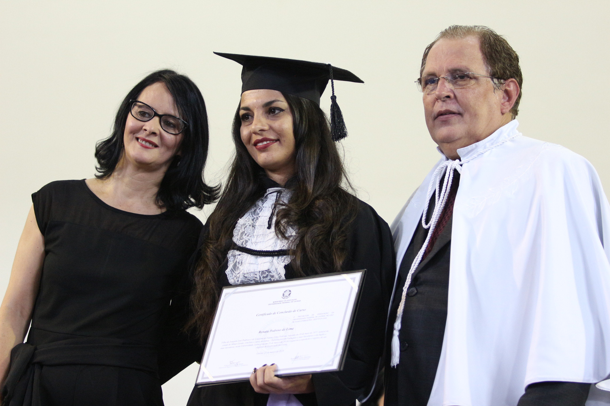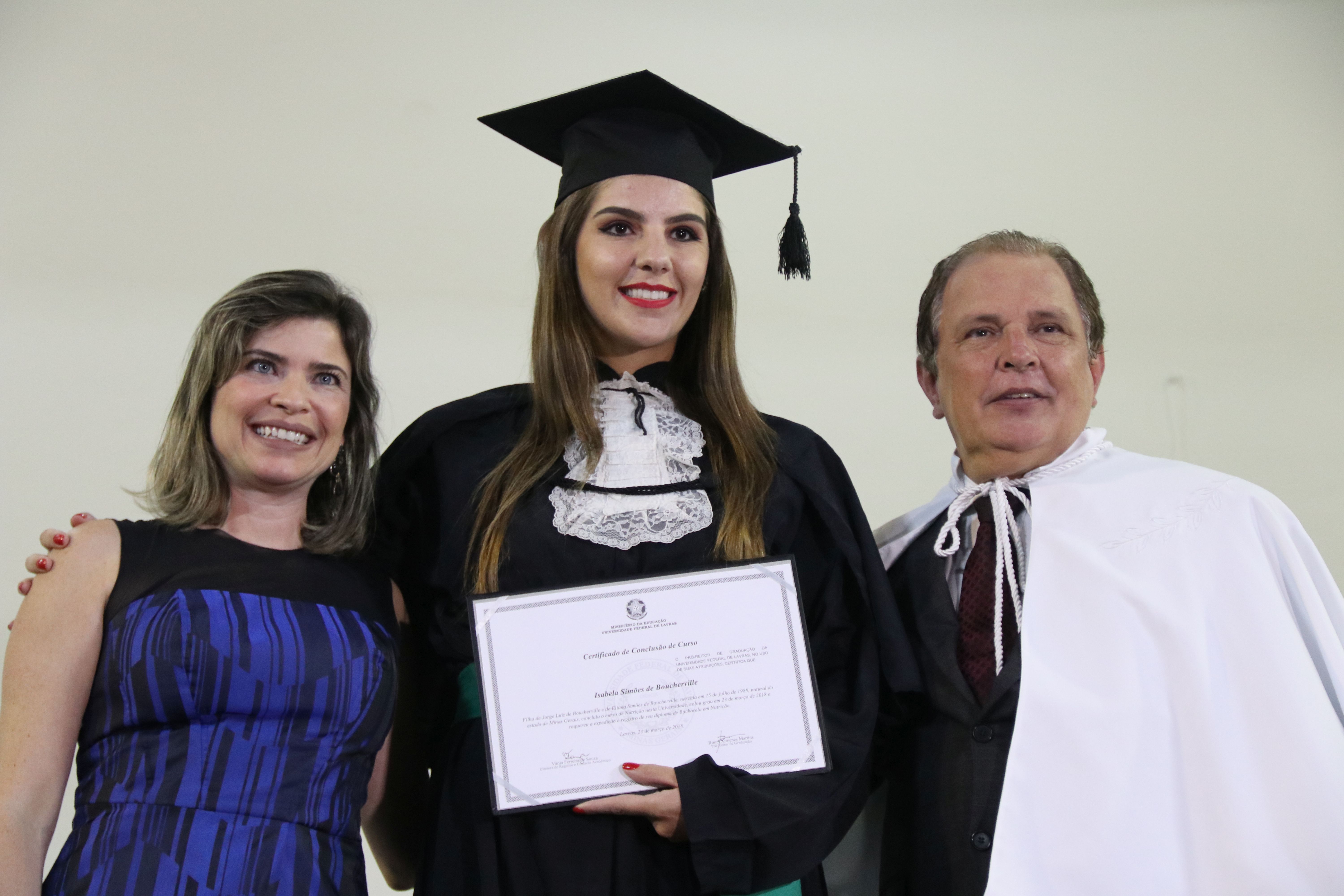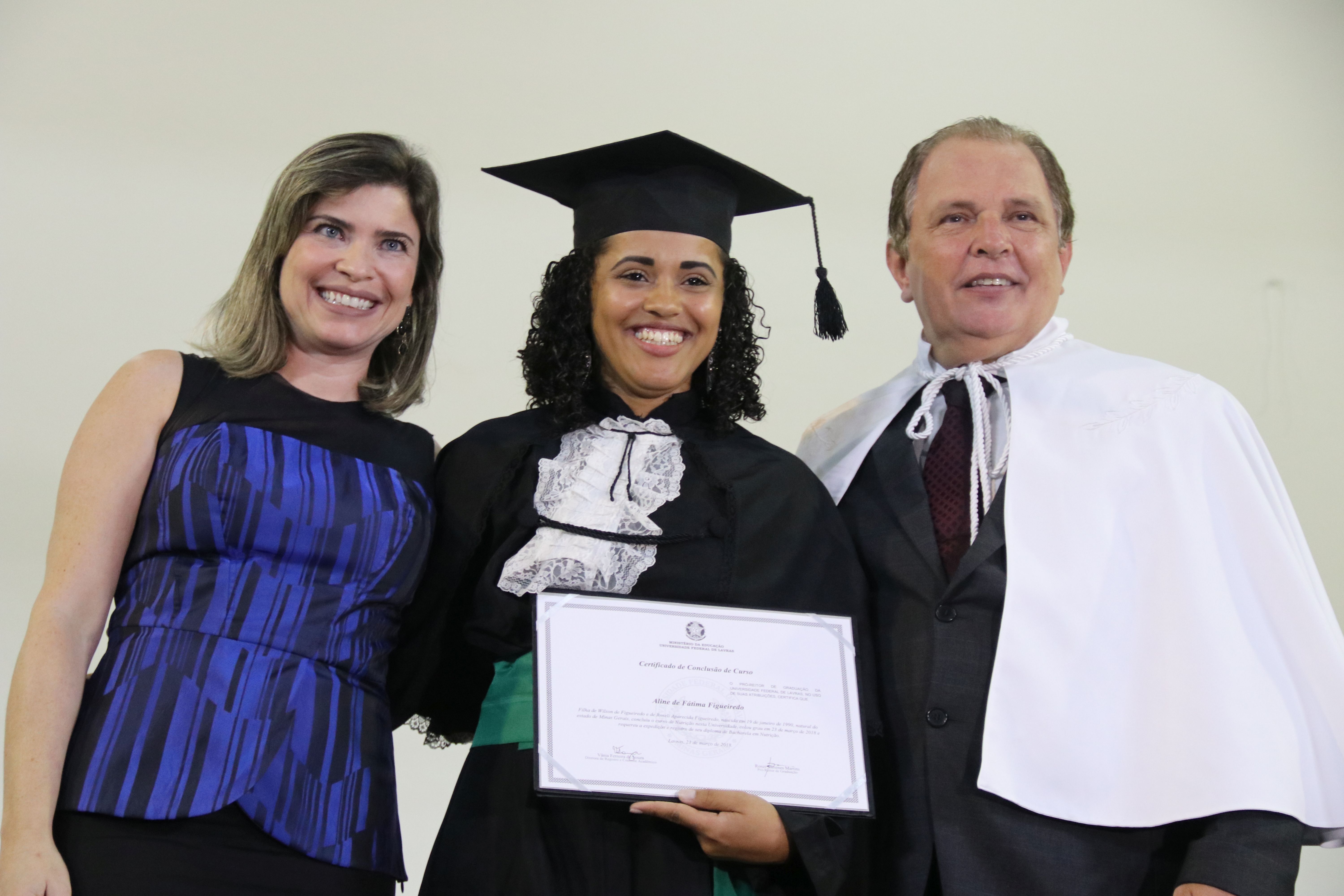 As solenidades foram presididas pelo reitor e presidente do CUNI, professor José Roberto Soares Scolforo. Após fazer referência à tradução das cerimônias na Língua Brasileira de Sinais (Libras), manifestou orgulho pelo fato de a UFLA trabalhar primando pela inclusão e pelo respeito às diversidades. Para os formandos, reforçou a importância do juramento que fizeram, especialmente pelo compromisso com a ética, a justiça e a defesa da liberdade e da paz. “Vocês tiveram a felicidade de se formar sob o investimento do povo brasileiro. Por isso devem se empenhar em cumprir esses compromissos carregados de valores que são hoje tão necessários à sociedade brasileira”. Scolforo também incentivou os novos profissionais a seguirem em frente: “vençam o medo deste momento posterior à conclusão do curso e lutem, busquem alcançar seus sonhos, sejam cidadãos de valor, pratiquem solidariedade e continuem a caminhada com garra e persistência, sempre respeitando as diferenças”.