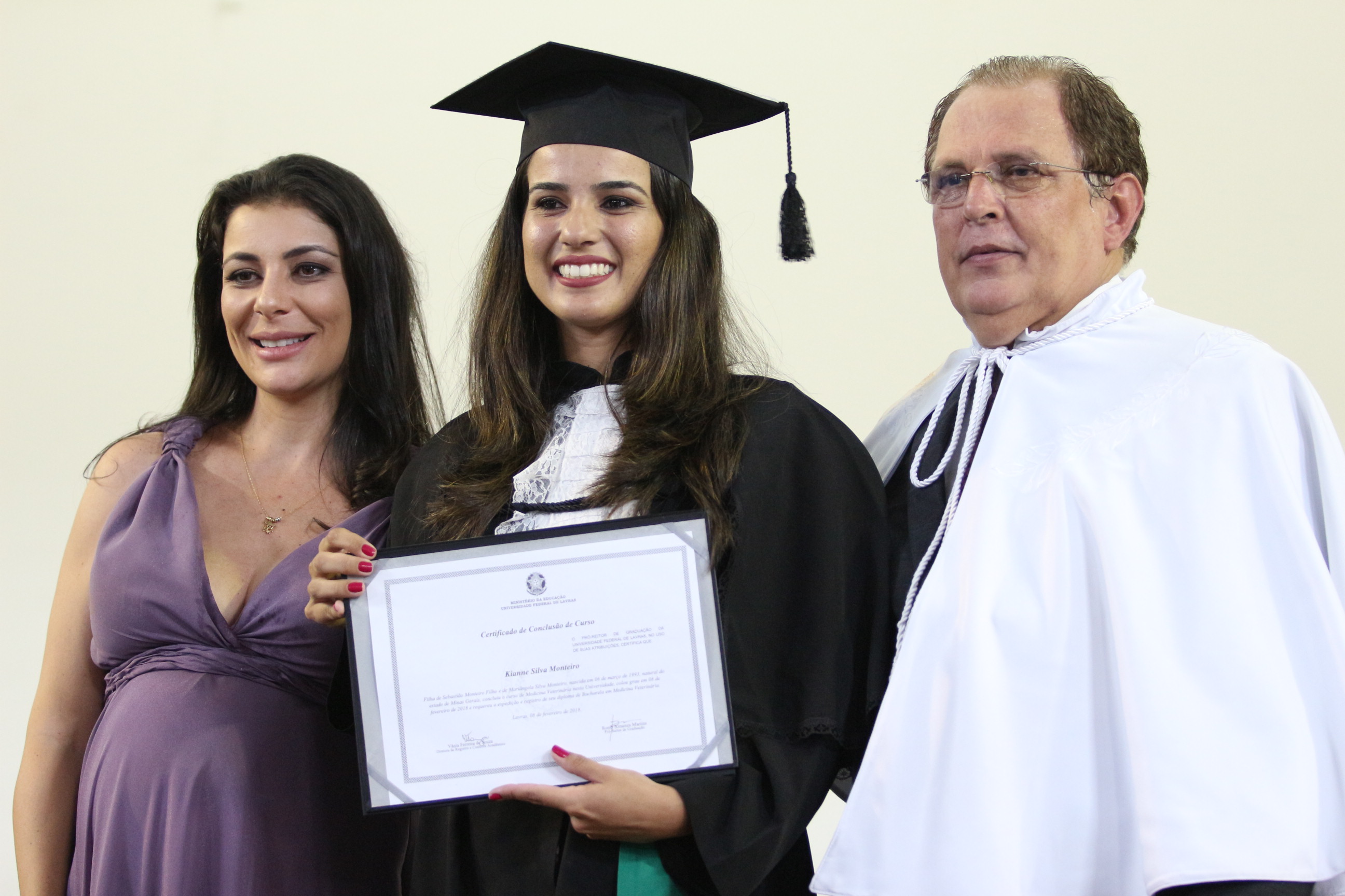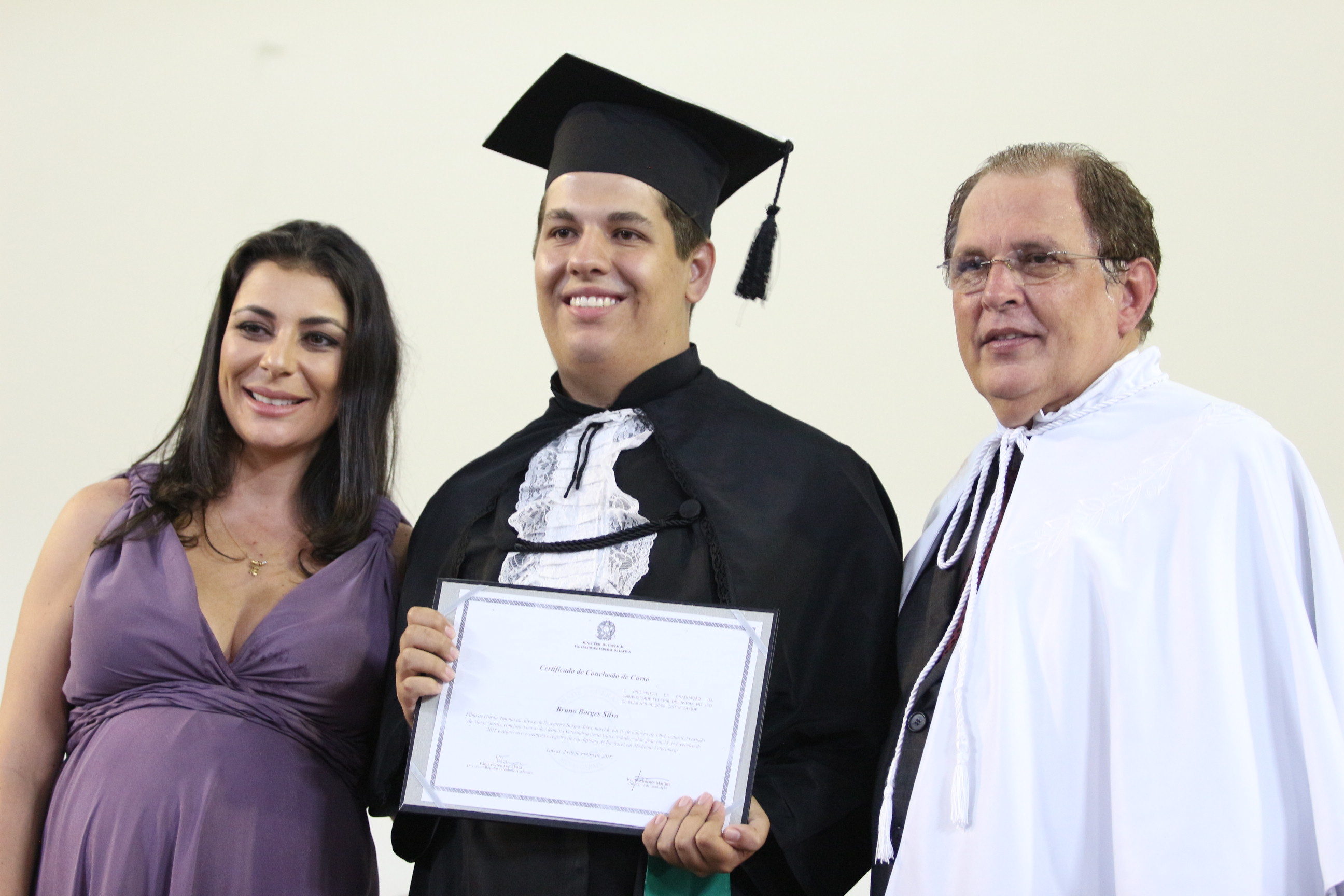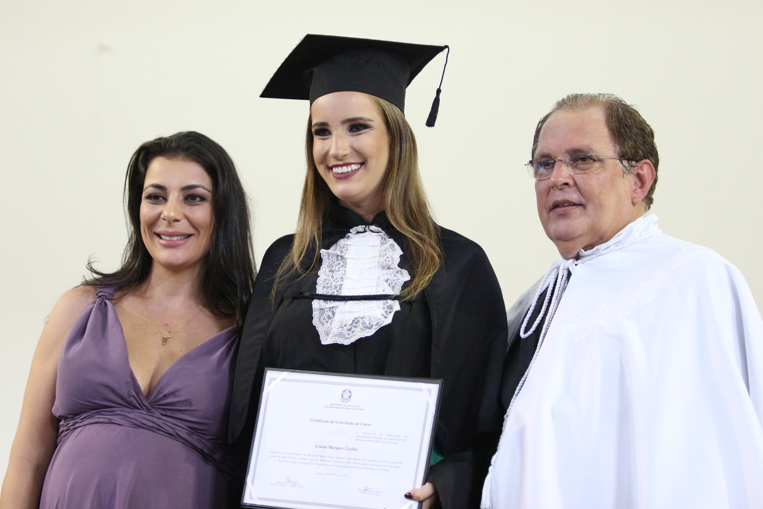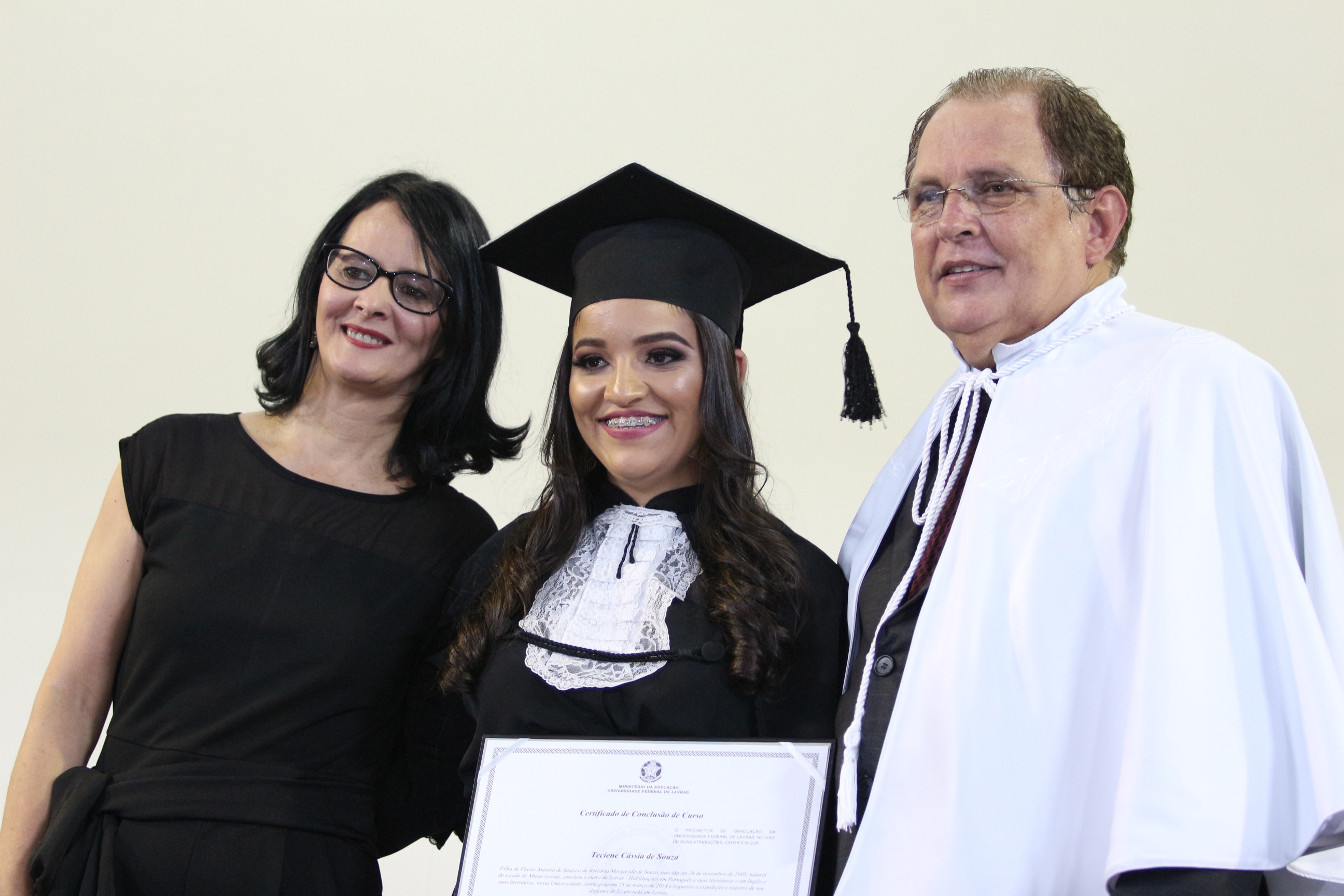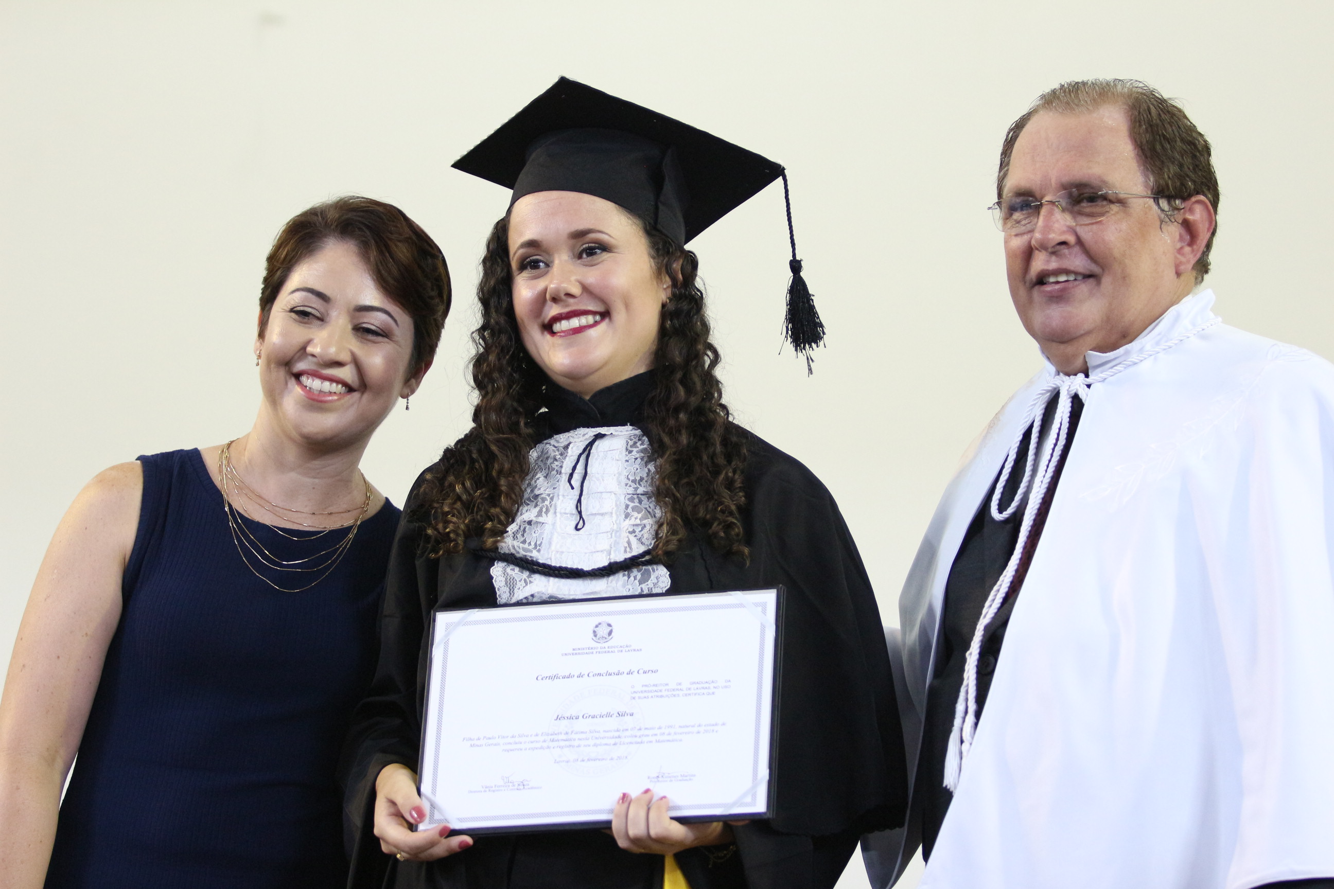 As solenidades foram presididas pelo reitor e presidente do CUNI, professor José Roberto Soares Scolforo. Após fazer referência à tradução das cerimônias na Língua Brasileira de Sinais (Libras), manifestou orgulho pelo fato de a UFLA trabalhar primando pela inclusão e pelo respeito às diversidades. Para os formandos, reforçou a importância do juramento que fizeram, especialmente pelo compromisso com a ética, a justiça e a defesa da liberdade e da paz. “Vocês tiveram a felicidade de se formar sob o investimento do povo brasileiro. Por isso devem se empenhar em cumprir esses compromissos carregados de valores que são hoje tão necessários à sociedade brasileira”. Scolforo também incentivou os novos profissionais a seguirem em frente: “vençam o medo deste momento posterior à conclusão do curso e lutem, busquem alcançar seus sonhos, sejam cidadãos de valor, pratiquem solidariedade e continuem a caminhada com garra e persistência, sempre respeitando as diferenças”.
