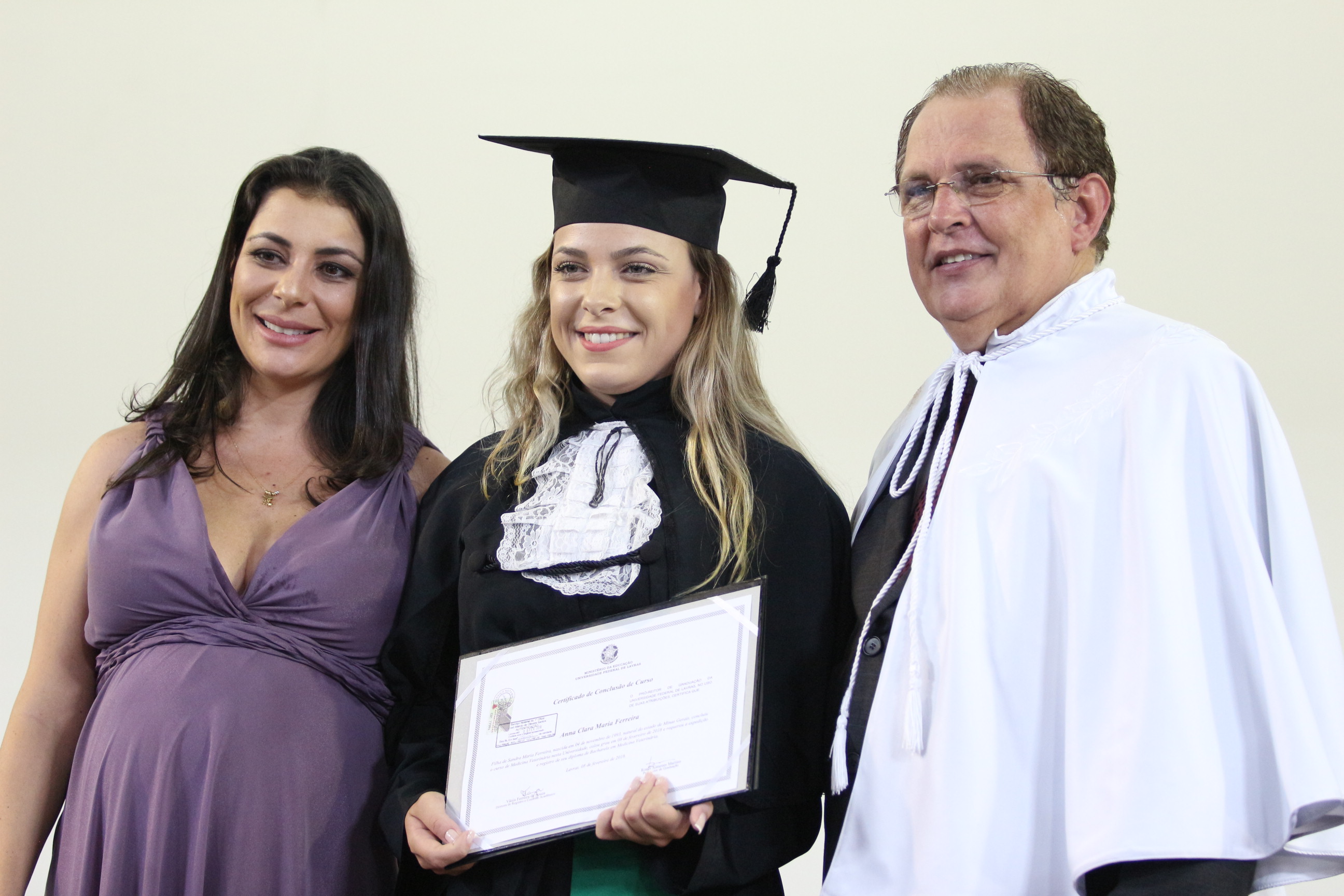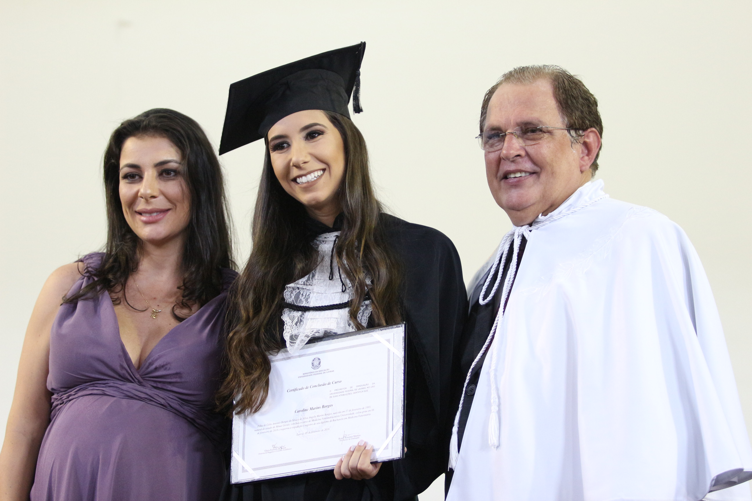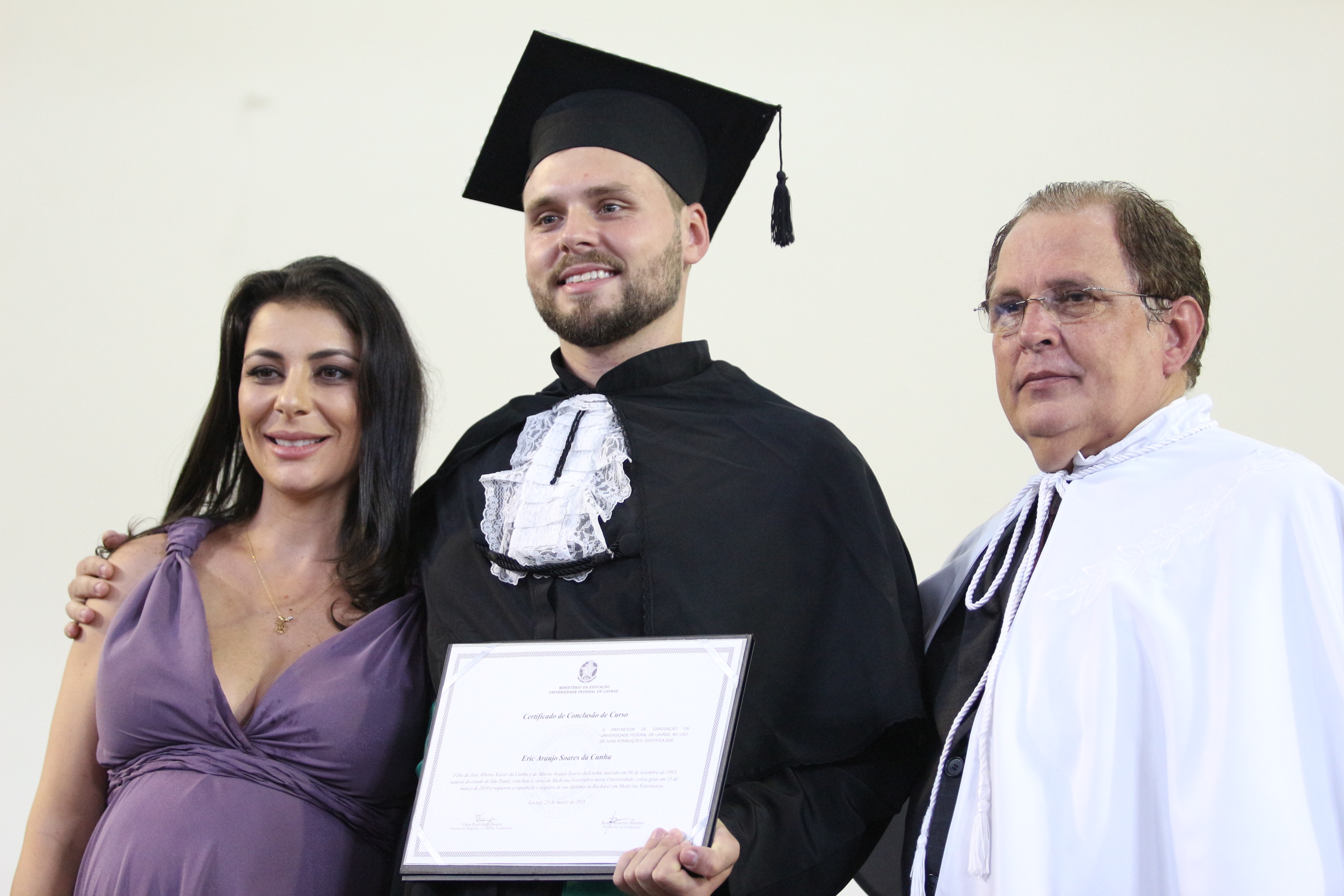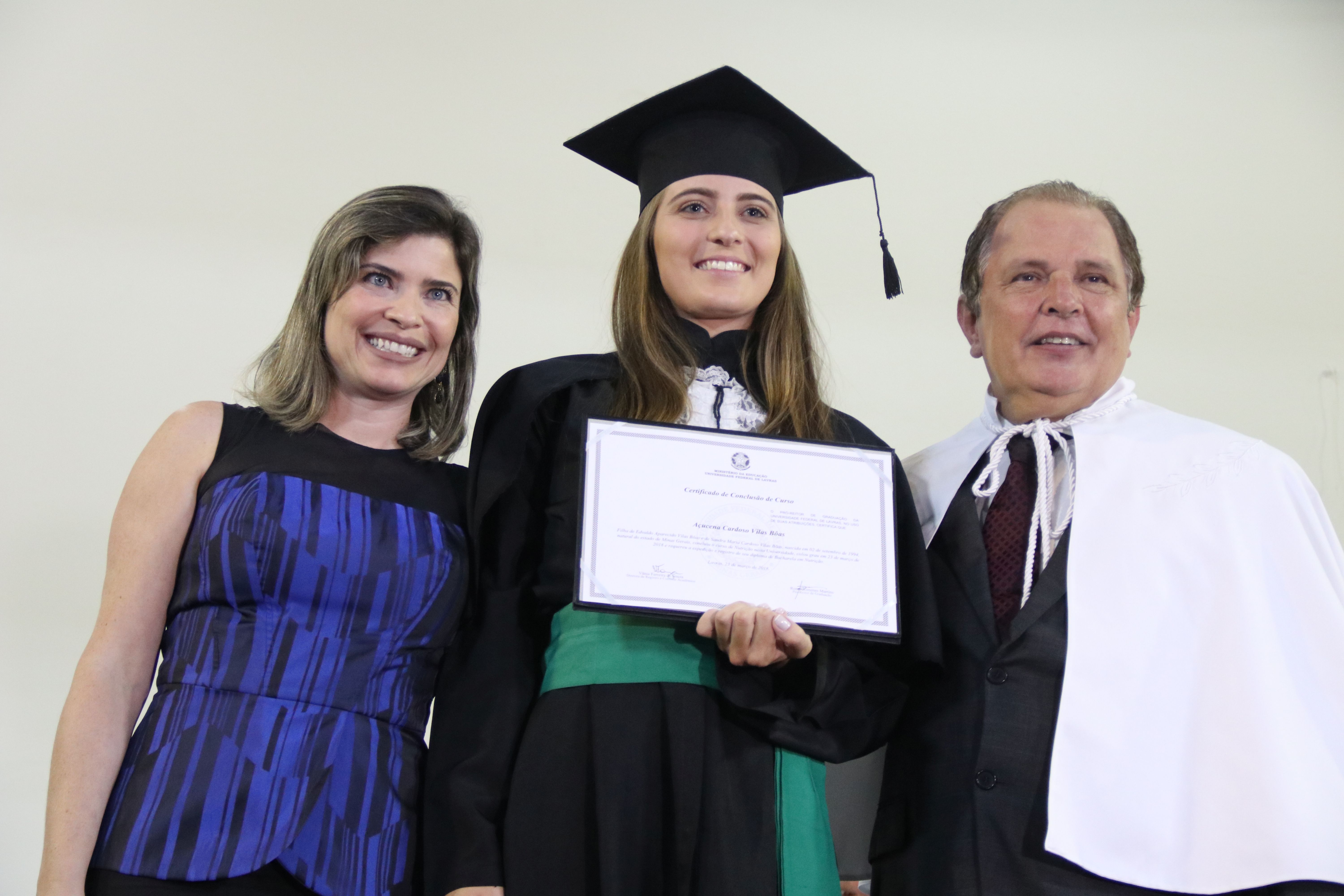 As solenidades foram presididas pelo reitor e presidente do CUNI, professor José Roberto Soares Scolforo. Após fazer referência à tradução das cerimônias na Língua Brasileira de Sinais (Libras), manifestou orgulho pelo fato de a UFLA trabalhar primando pela inclusão e pelo respeito às diversidades. Para os formandos, reforçou a importância do juramento que fizeram, especialmente pelo compromisso com a ética, a justiça e a defesa da liberdade e da paz. “Vocês tiveram a felicidade de se formar sob o investimento do povo brasileiro. Por isso devem se empenhar em cumprir esses compromissos carregados de valores que são hoje tão necessários à sociedade brasileira”. Scolforo também incentivou os novos profissionais a seguirem em frente: “vençam o medo deste momento posterior à conclusão do curso e lutem, busquem alcançar seus sonhos, sejam cidadãos de valor, pratiquem solidariedade e continuem a caminhada com garra e persistência, sempre respeitando as diferenças”.