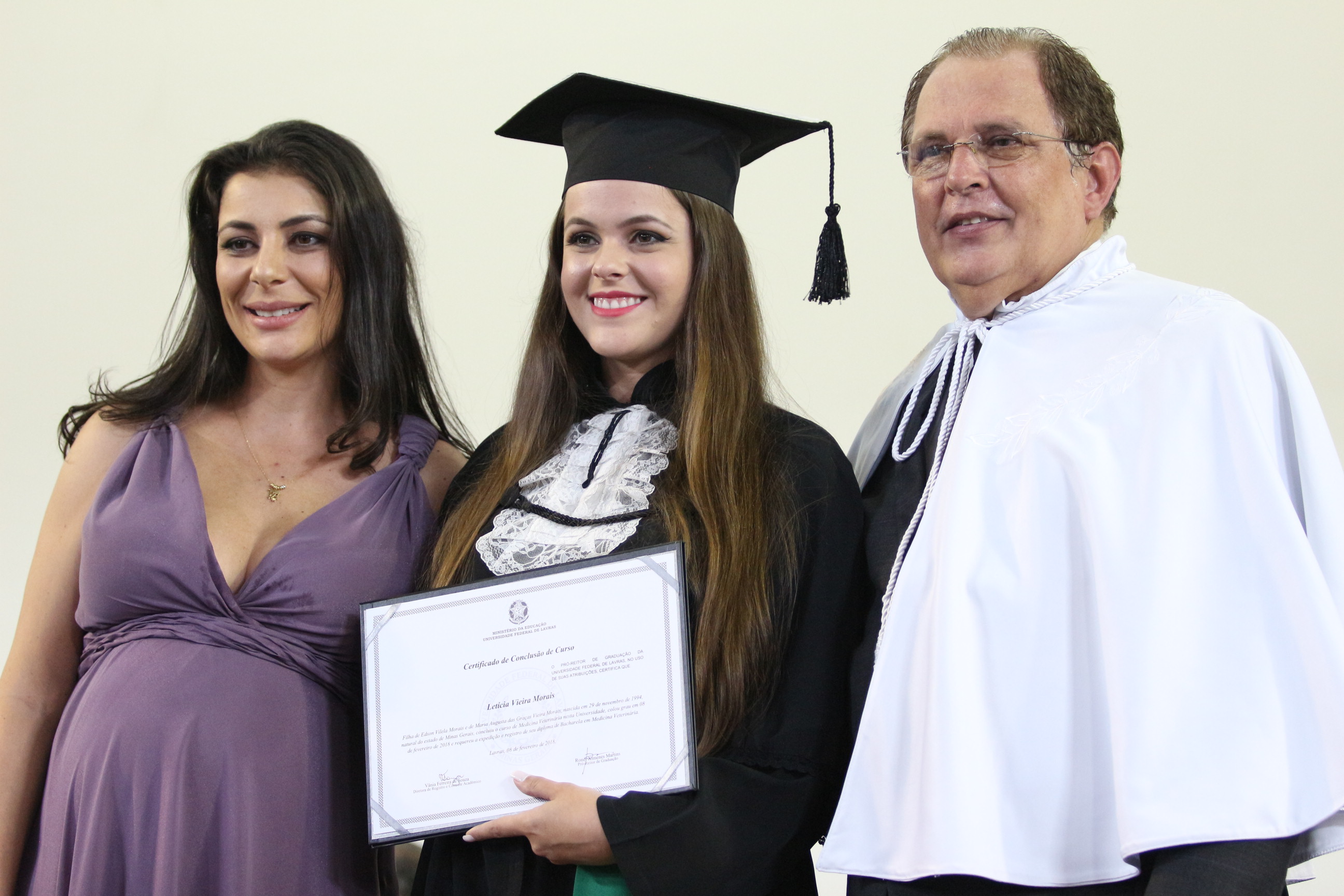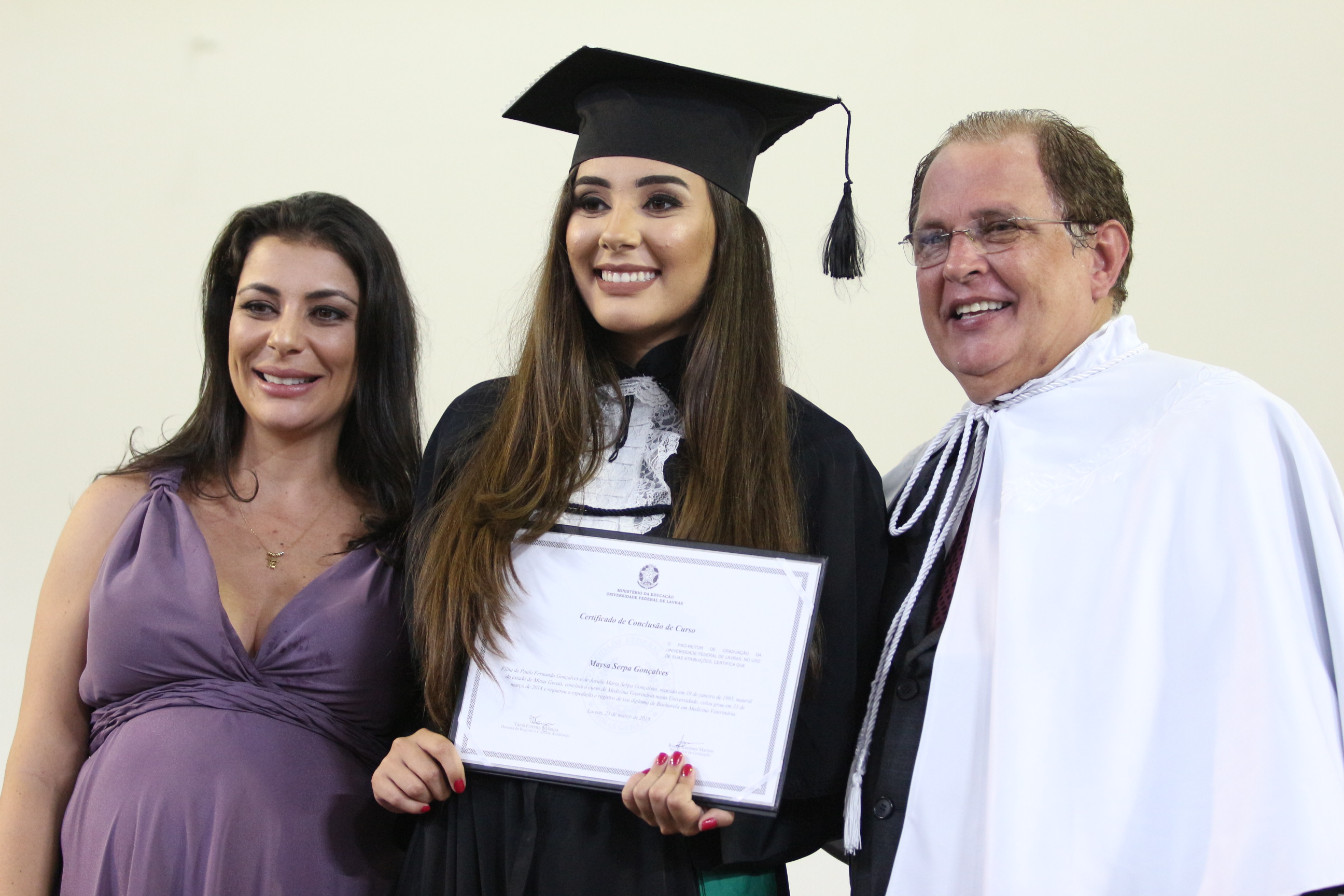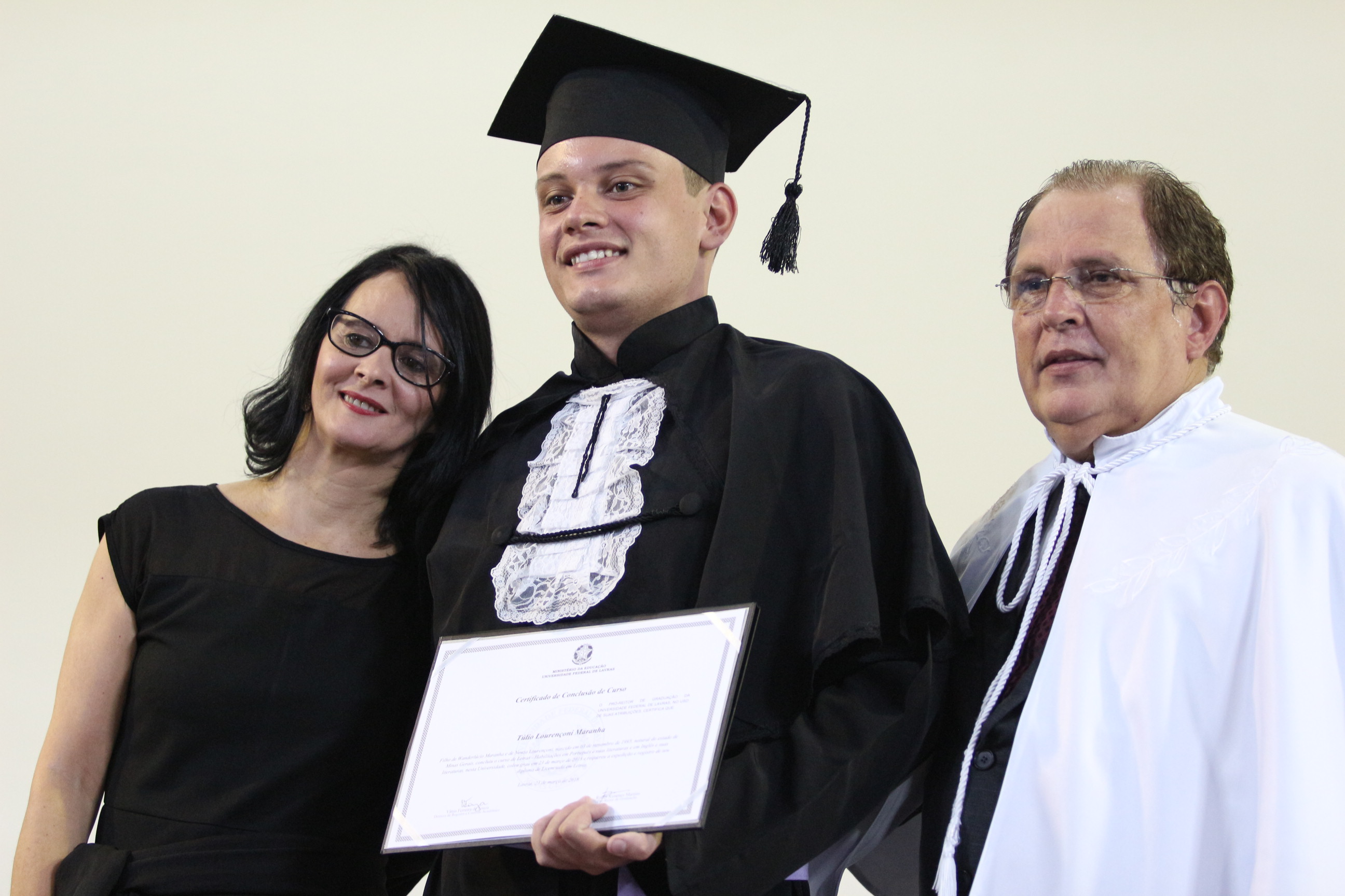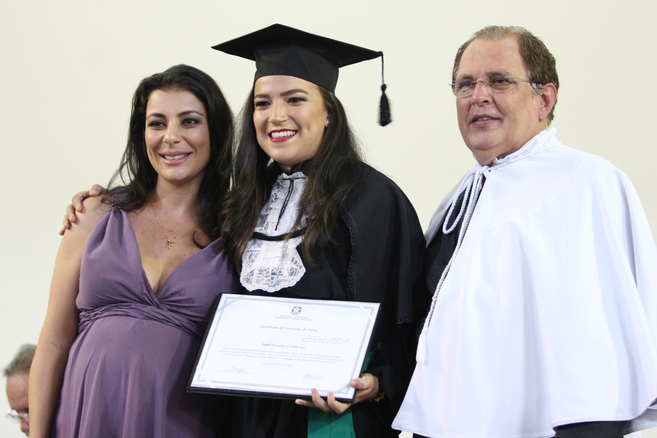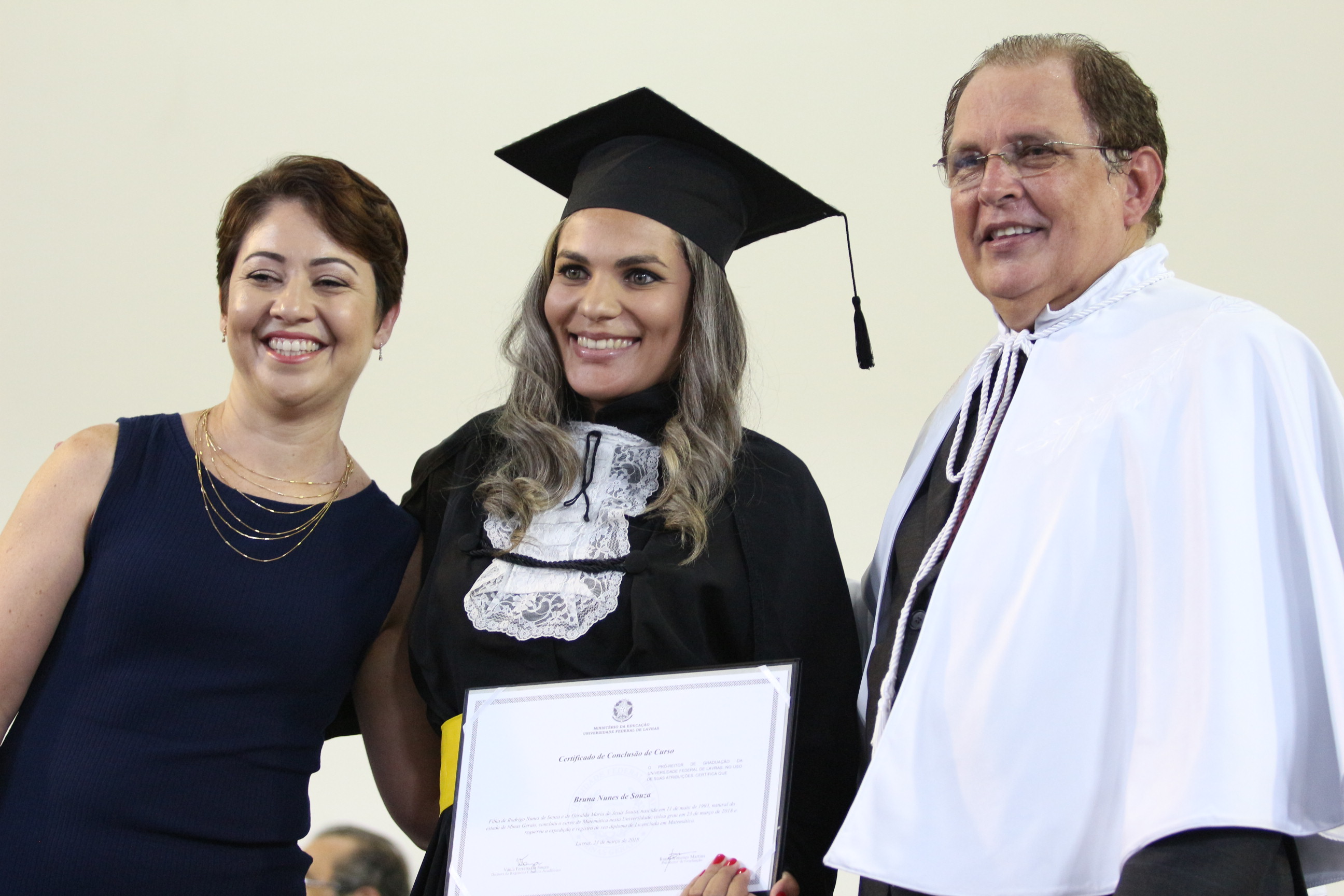 As solenidades foram presididas pelo reitor e presidente do CUNI, professor José Roberto Soares Scolforo. Após fazer referência à tradução das cerimônias na Língua Brasileira de Sinais (Libras), manifestou orgulho pelo fato de a UFLA trabalhar primando pela inclusão e pelo respeito às diversidades. Para os formandos, reforçou a importância do juramento que fizeram, especialmente pelo compromisso com a ética, a justiça e a defesa da liberdade e da paz. “Vocês tiveram a felicidade de se formar sob o investimento do povo brasileiro. Por isso devem se empenhar em cumprir esses compromissos carregados de valores que são hoje tão necessários à sociedade brasileira”. Scolforo também incentivou os novos profissionais a seguirem em frente: “vençam o medo deste momento posterior à conclusão do curso e lutem, busquem alcançar seus sonhos, sejam cidadãos de valor, pratiquem solidariedade e continuem a caminhada com garra e persistência, sempre respeitando as diferenças”.