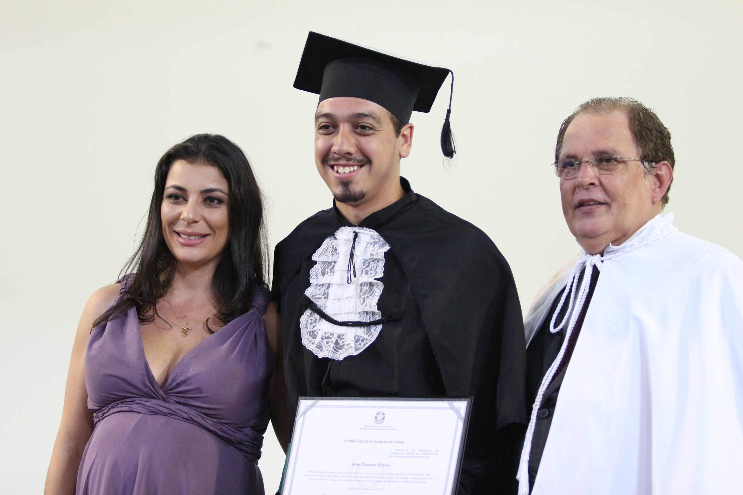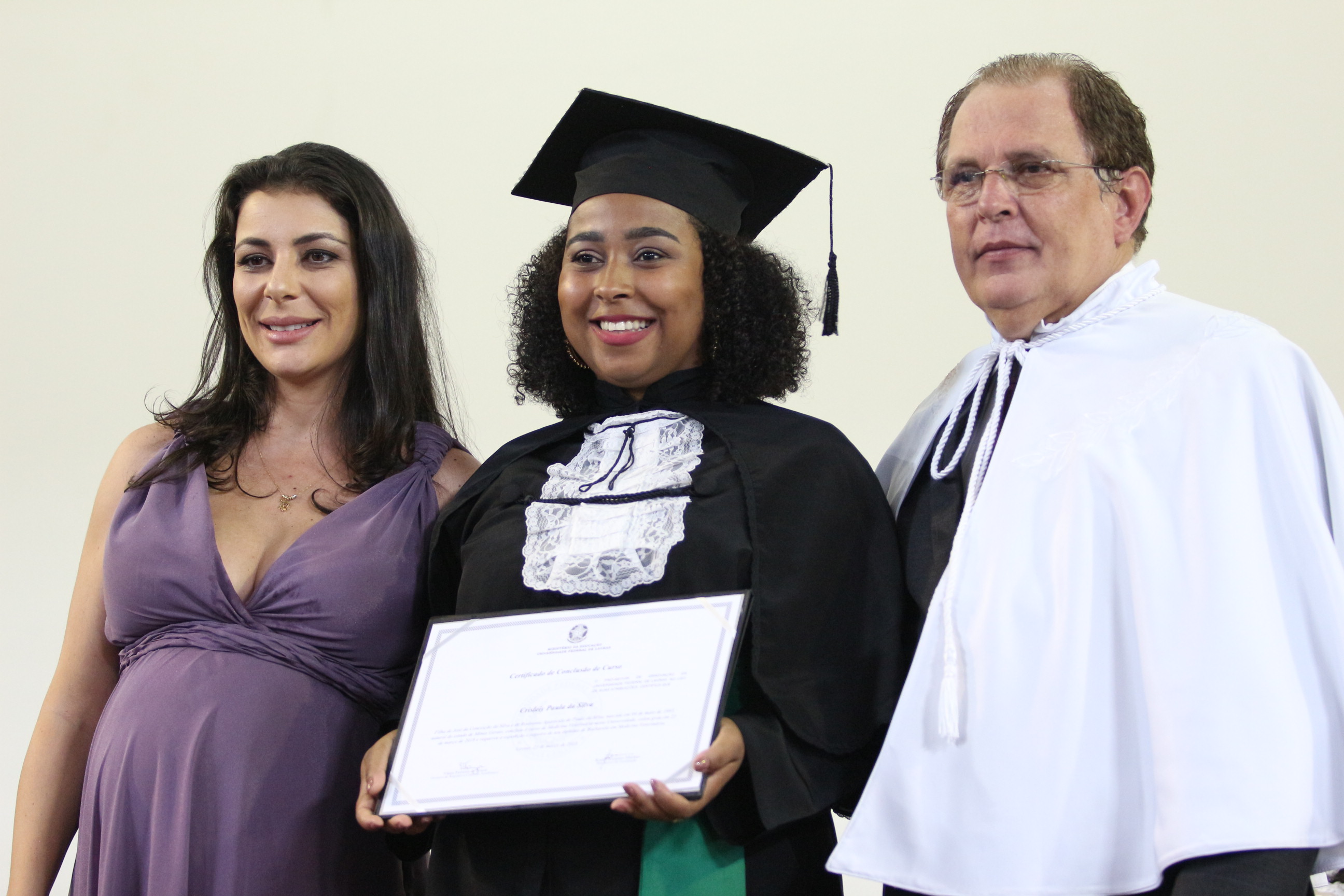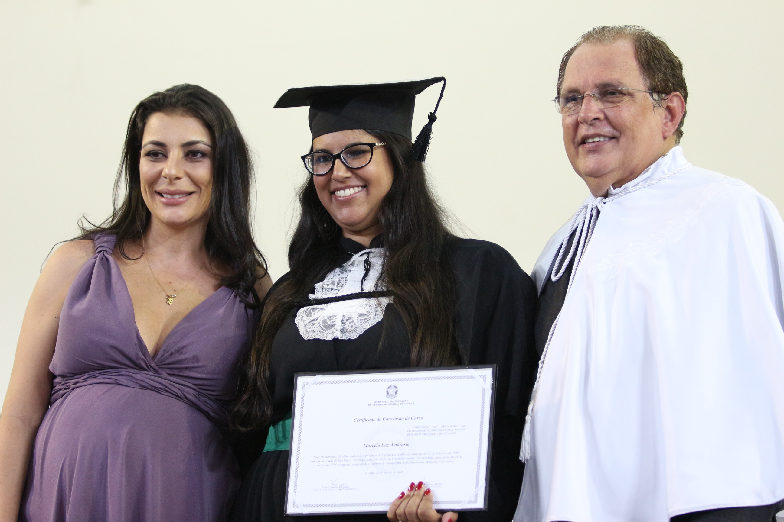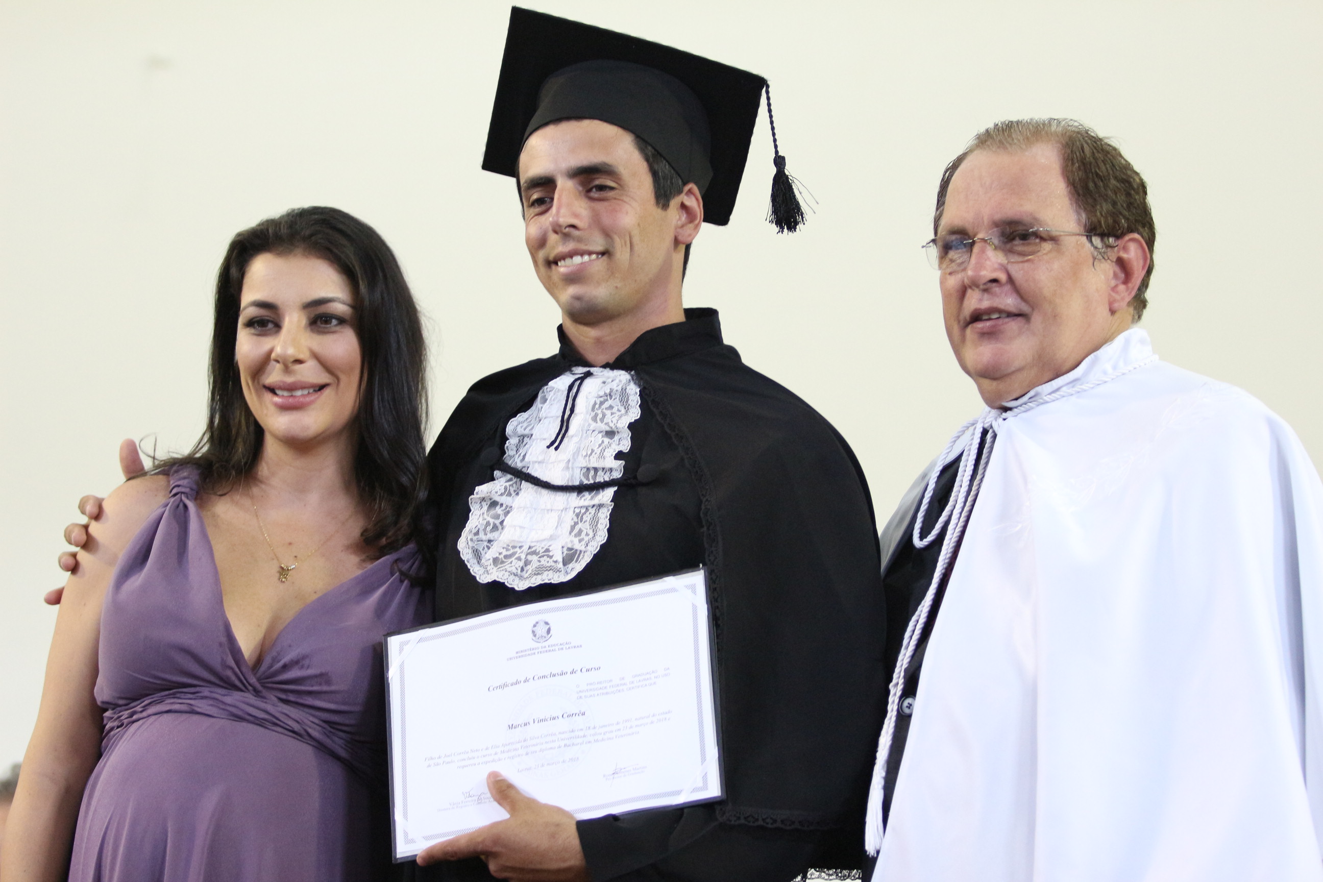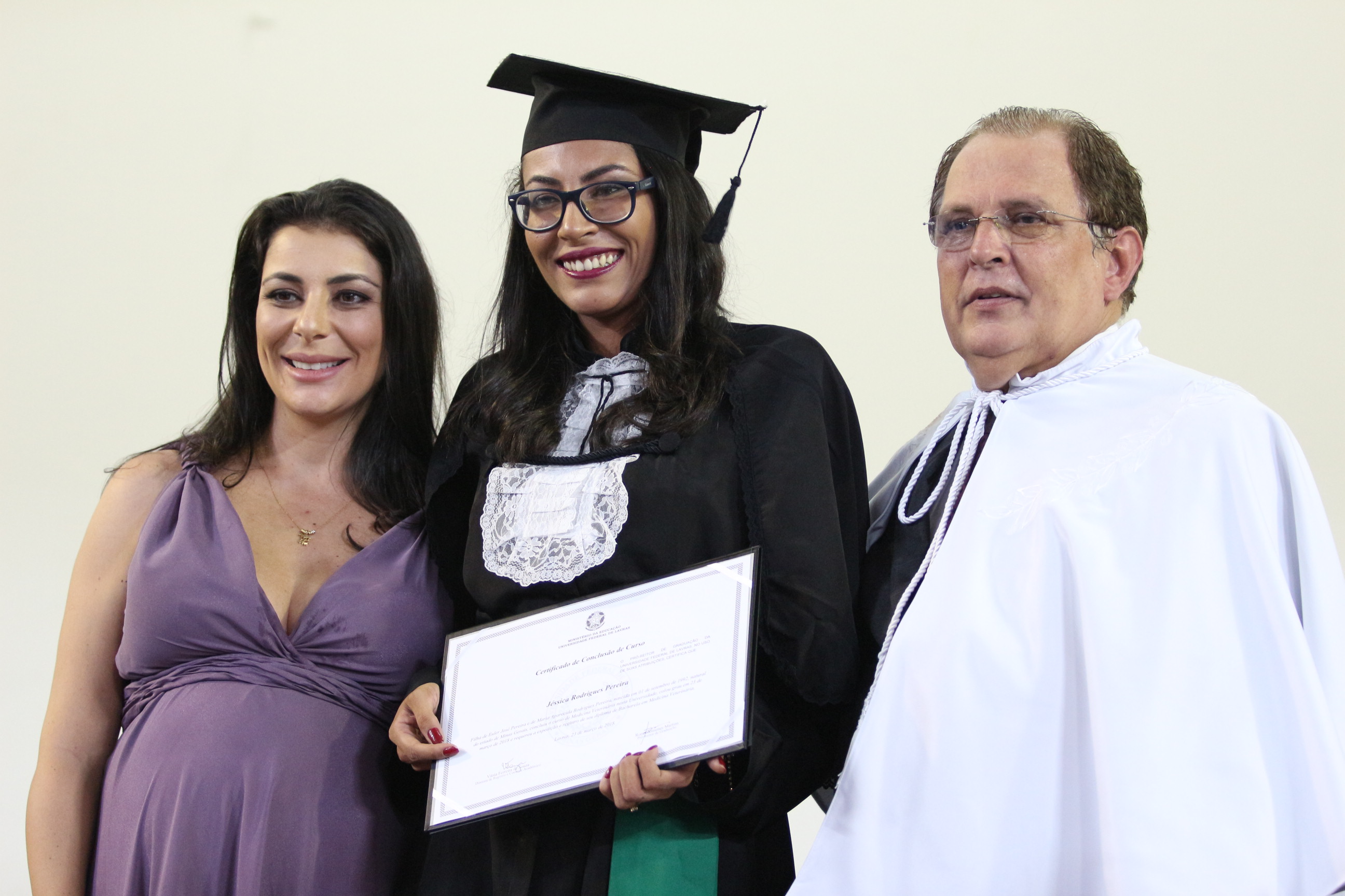 As solenidades foram presididas pelo reitor e presidente do CUNI, professor José Roberto Soares Scolforo. Após fazer referência à tradução das cerimônias na Língua Brasileira de Sinais (Libras), manifestou orgulho pelo fato de a UFLA trabalhar primando pela inclusão e pelo respeito às diversidades. Para os formandos, reforçou a importância do juramento que fizeram, especialmente pelo compromisso com a ética, a justiça e a defesa da liberdade e da paz. “Vocês tiveram a felicidade de se formar sob o investimento do povo brasileiro. Por isso devem se empenhar em cumprir esses compromissos carregados de valores que são hoje tão necessários à sociedade brasileira”. Scolforo também incentivou os novos profissionais a seguirem em frente: “vençam o medo deste momento posterior à conclusão do curso e lutem, busquem alcançar seus sonhos, sejam cidadãos de valor, pratiquem solidariedade e continuem a caminhada com garra e persistência, sempre respeitando as diferenças”.