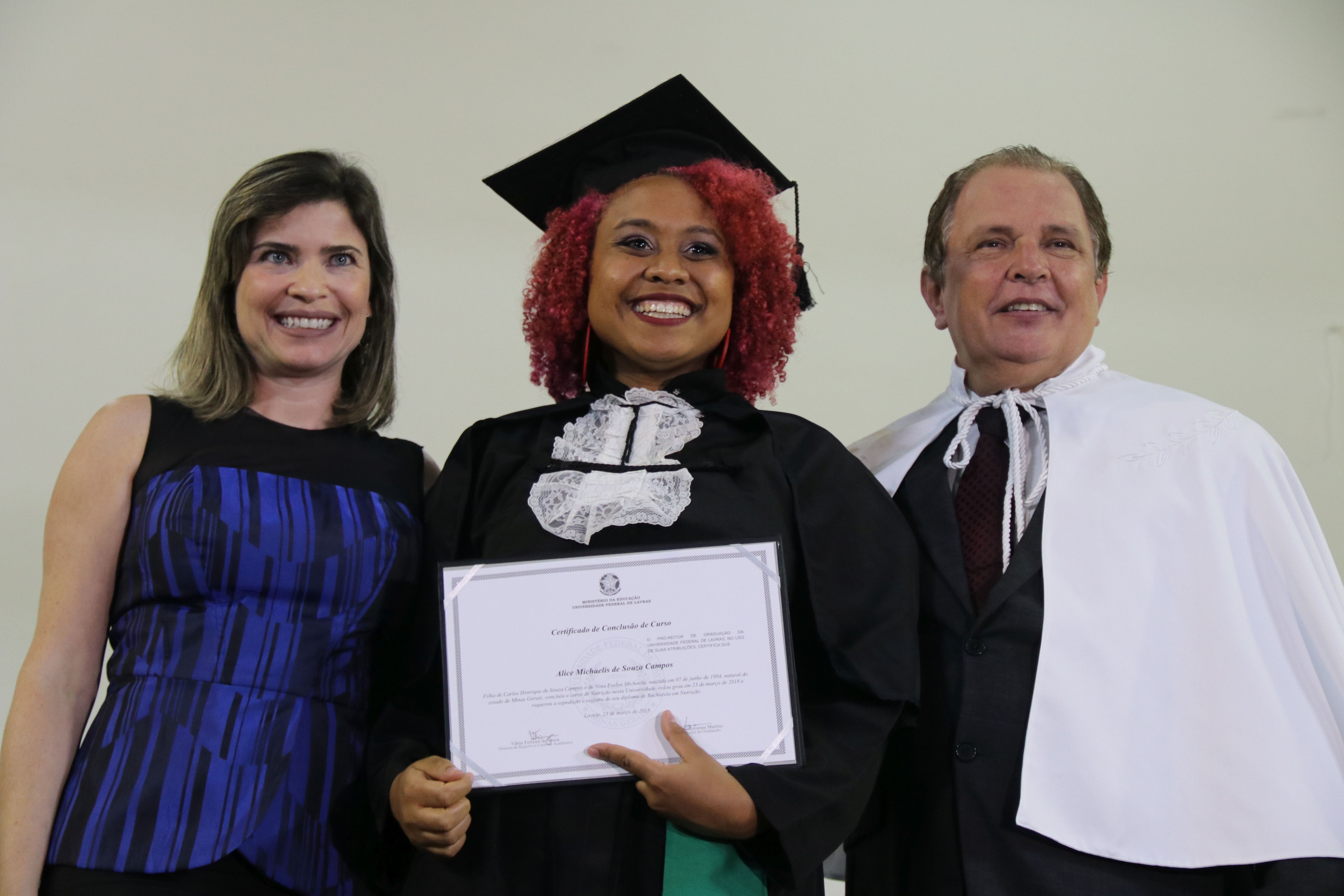 Se o momento é de tanta emoção para formados e familiares, foi ainda mais especial para quem precisou de uma dose a mais de esforço para concluir o curso. Exemplo de superação, a formanda em Educação Física Priscilla Maria da Silva Francelino, que possui Necessidades Educacionais Especiais (NEE), comemorou a conquista do diploma. “Muitas vezes, diante das dificuldades, eu me perguntei por que estava investindo nesse projeto, mas valeu a pena o sacrifício. Agora quero atuar em escolas, não importa se no ensino fundamental ou médio”. Priscilla Maria da Silva Francelino tem Transtorno de Déficit de Atenção (TDA), autismo leve e um pouco de perda de audição. A estrutura inicial do Núcleo de Acessibilidade da UFLA, e mais tarde a Coordenadoria de Acessibilidade, deram o apoio que Priscila precisava para avançar nos estudos. “Esse apoio – com monitores, tempo diferenciado para realização das atividades e outros planejamentos – fez toda a diferença”, disse.