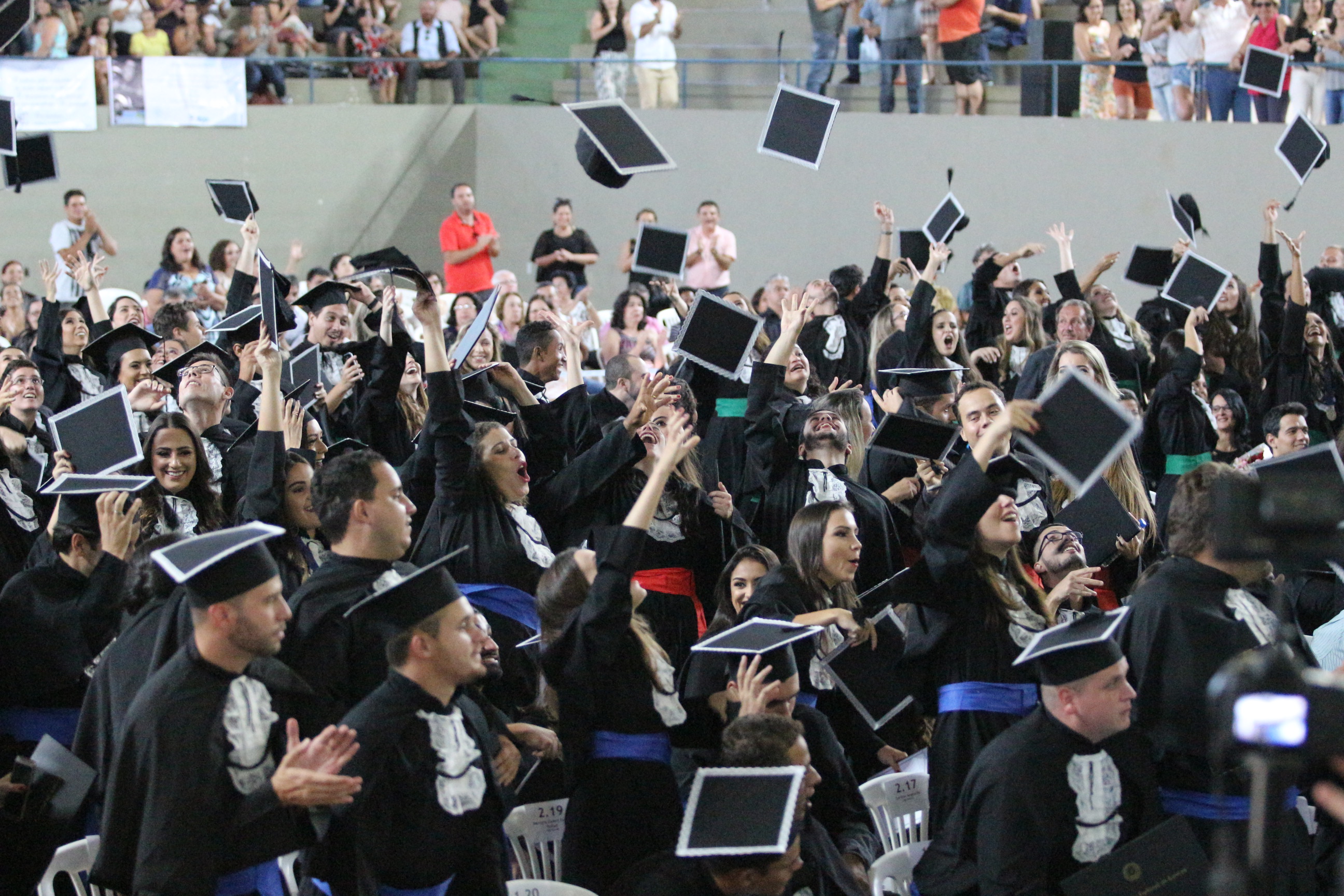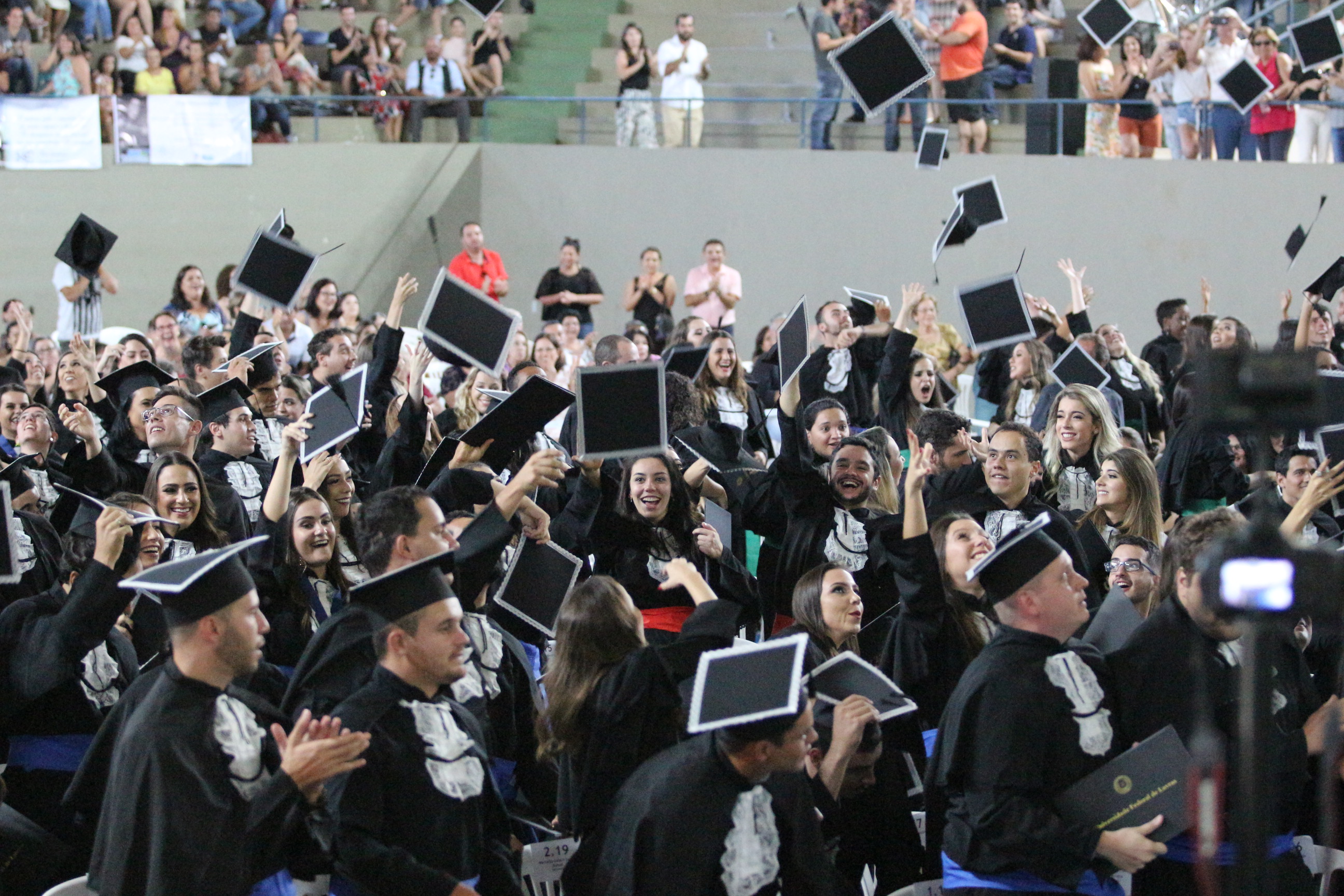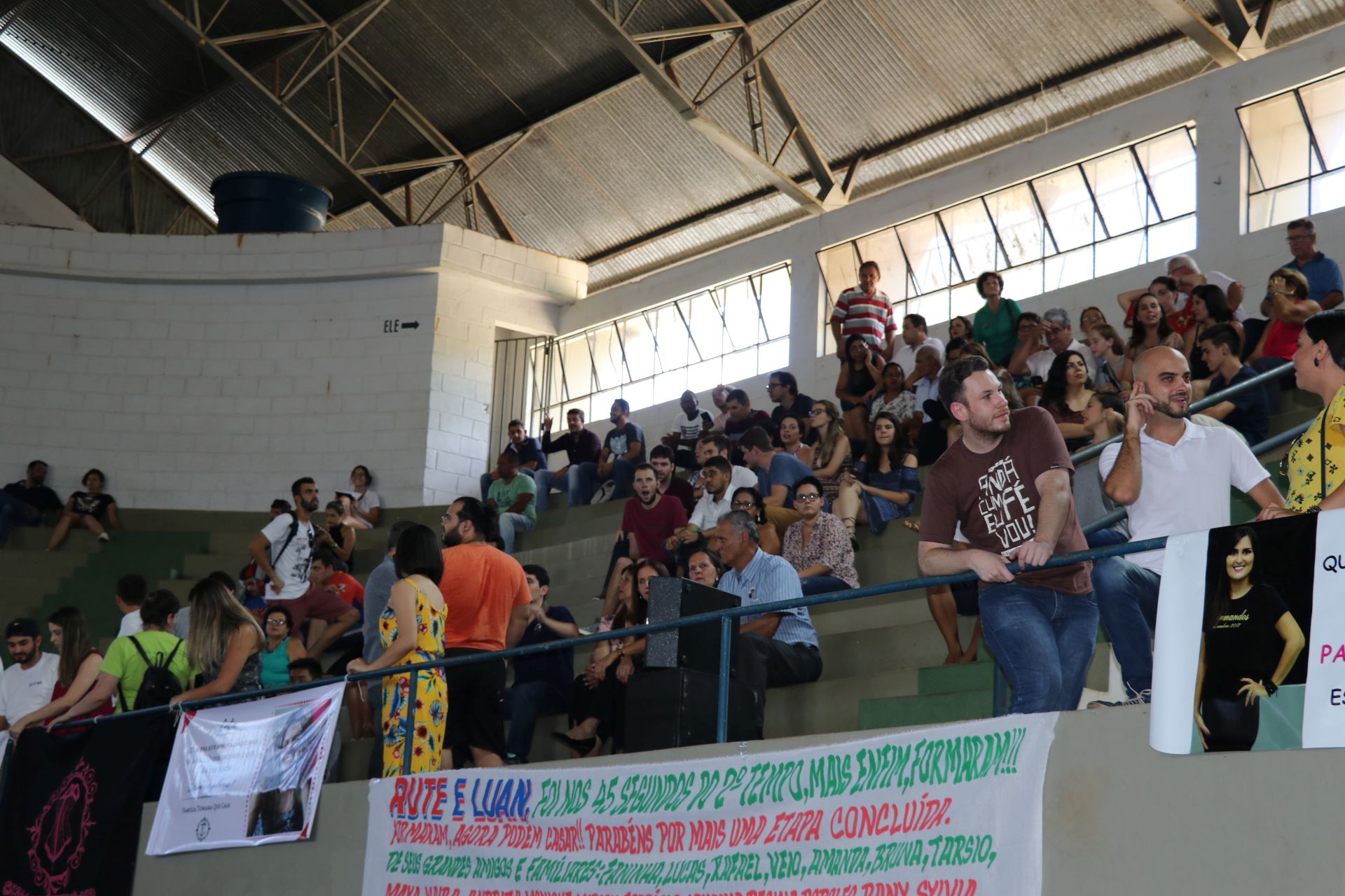 A sexta-feira (23/3) foi de celebração para a Universidade Federal de Lavras (UFLA) e para os 464 formandos que colaram grau durante sessão solene do Conselho Universitário (CUNI). A cerimônia foi realizada no ginásio poliesportivo da instituição, em dois horários – às 14h e às 18h. A outorga de grau garantiu o ingresso no mercado de trabalho de profissionais que concluíram sua formação em 24 cursos.