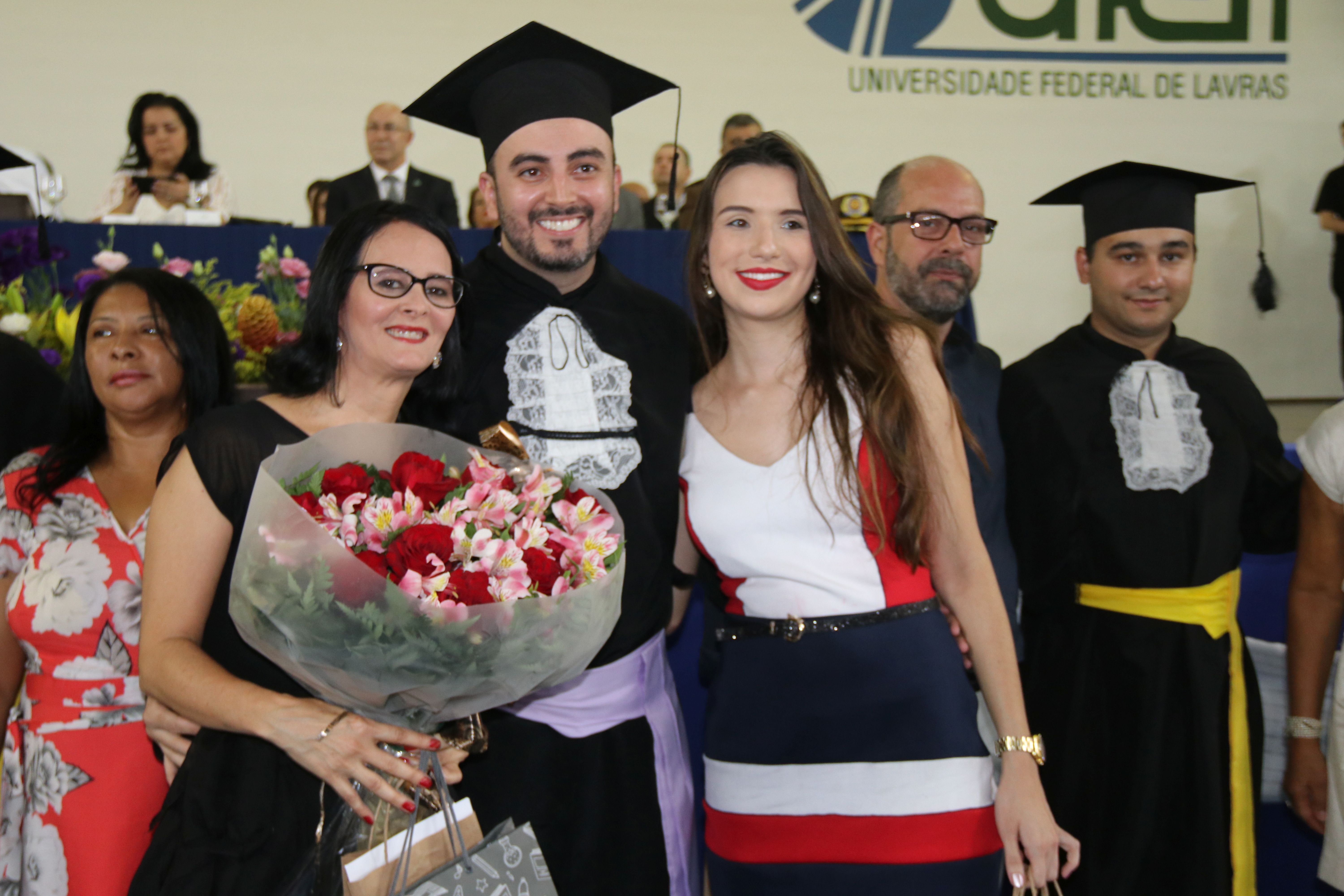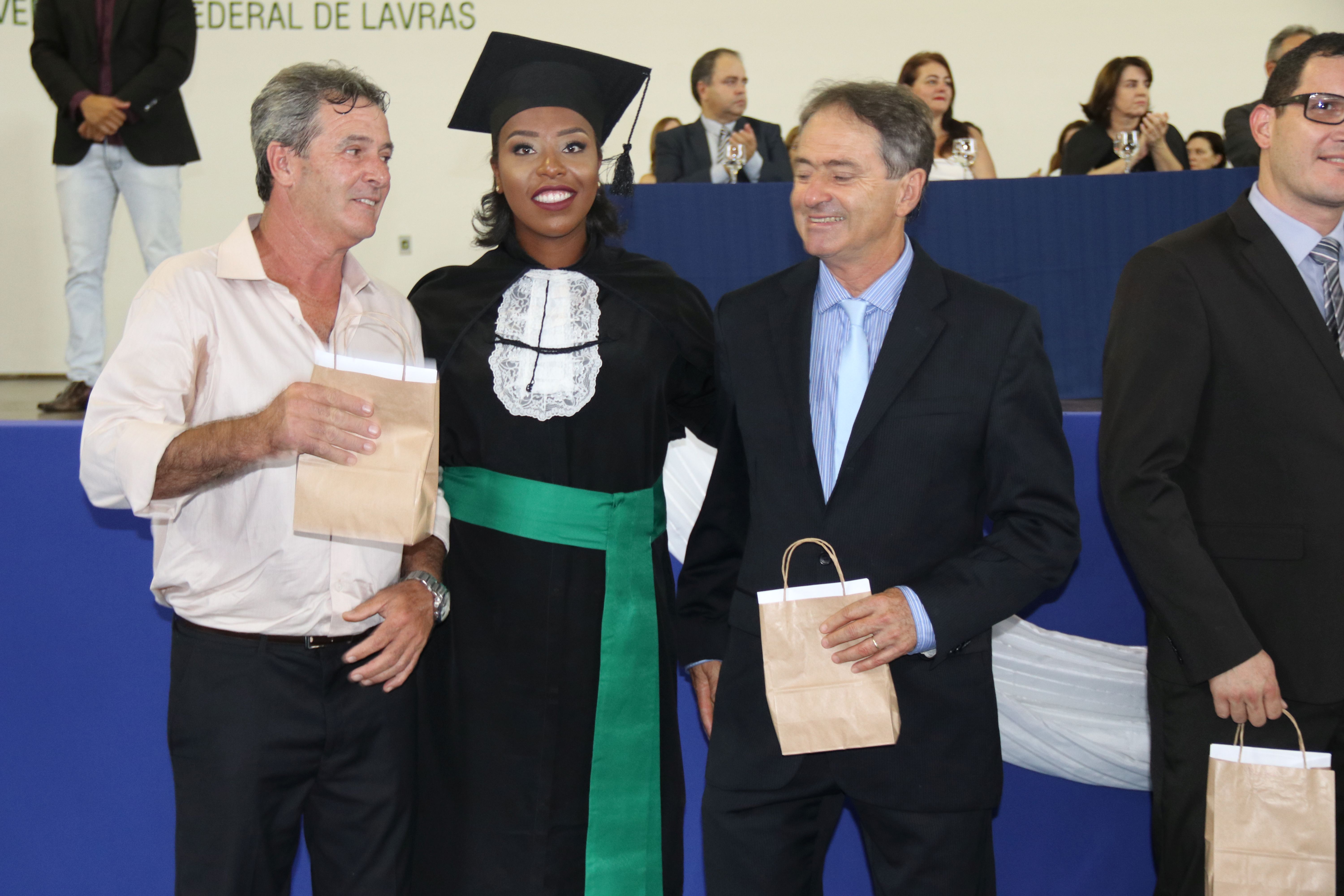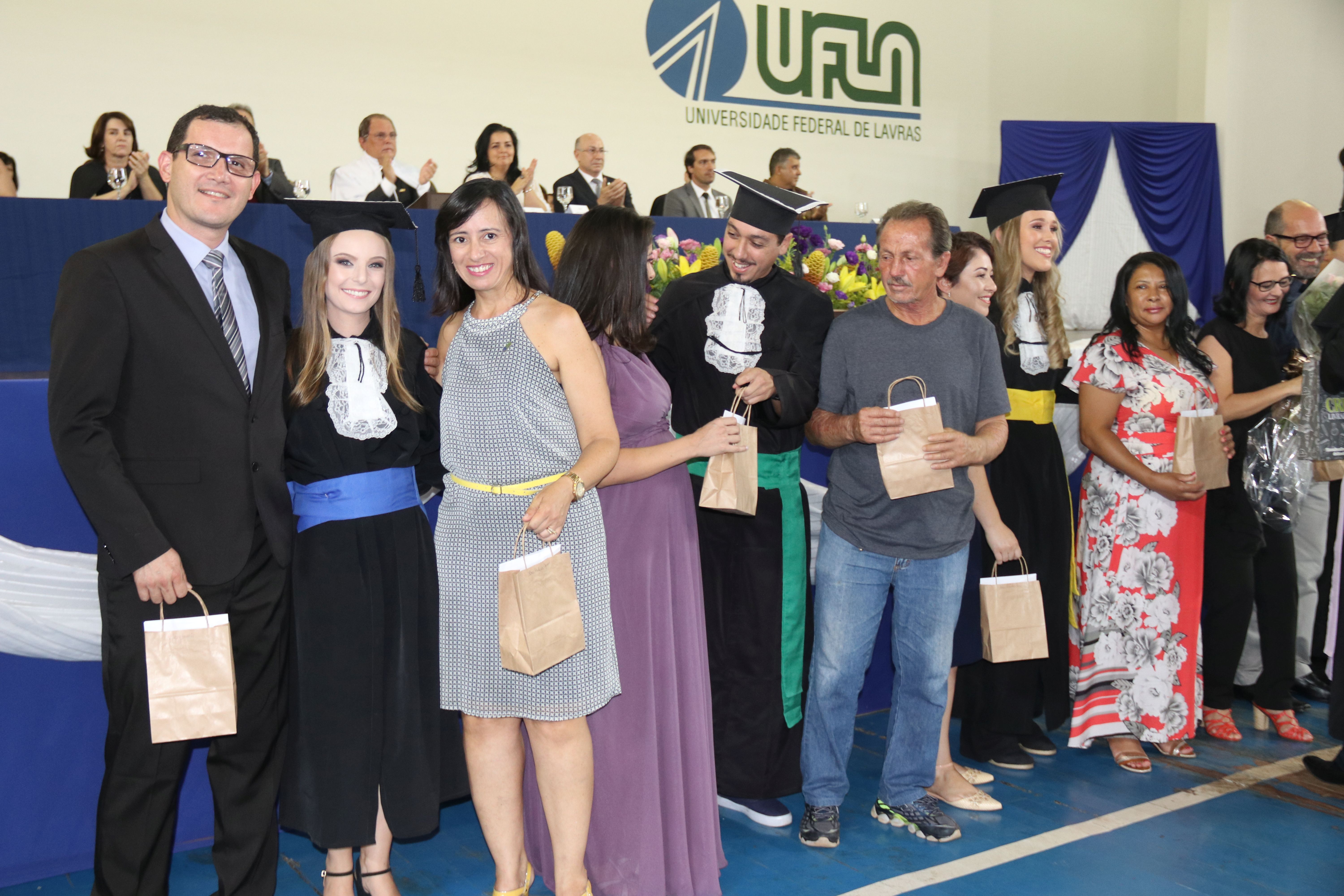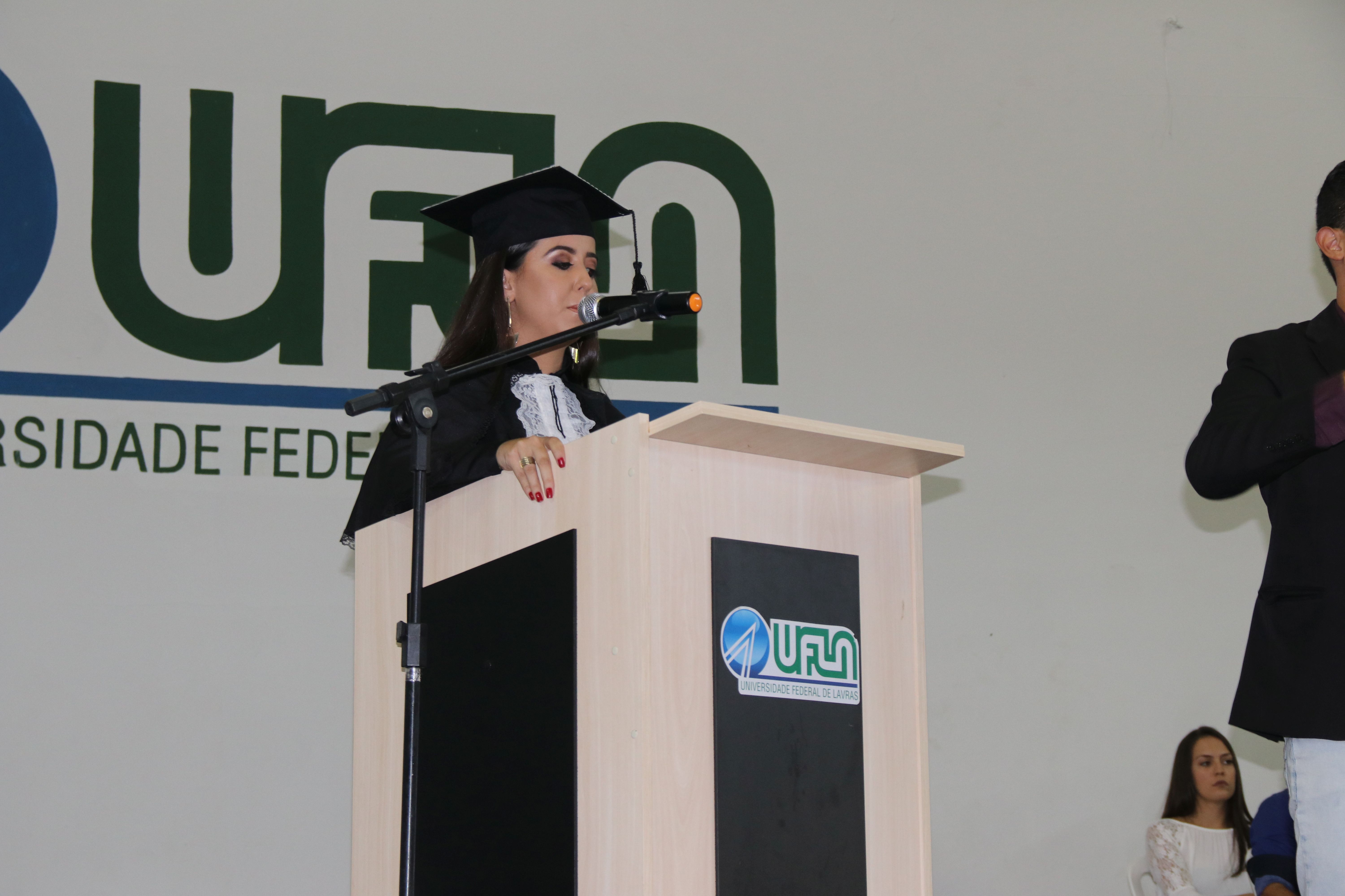 As solenidades foram presididas pelo reitor e presidente do CUNI, professor José Roberto Soares Scolforo. Após fazer referência à tradução das cerimônias na Língua Brasileira de Sinais (Libras), manifestou orgulho pelo fato de a UFLA trabalhar primando pela inclusão e pelo respeito às diversidades. Para os formandos, reforçou a importância do juramento que fizeram, especialmente pelo compromisso com a ética, a justiça e a defesa da liberdade e da paz. “Vocês tiveram a felicidade de se formar sob o investimento do povo brasileiro. Por isso devem se empenhar em cumprir esses compromissos carregados de valores que são hoje tão necessários à sociedade brasileira”. Scolforo também incentivou os novos profissionais a seguirem em frente: “vençam o medo deste momento posterior à conclusão do curso e lutem, busquem alcançar seus sonhos, sejam cidadãos de valor, pratiquem solidariedade e continuem a caminhada com garra e persistência, sempre respeitando as diferenças”.